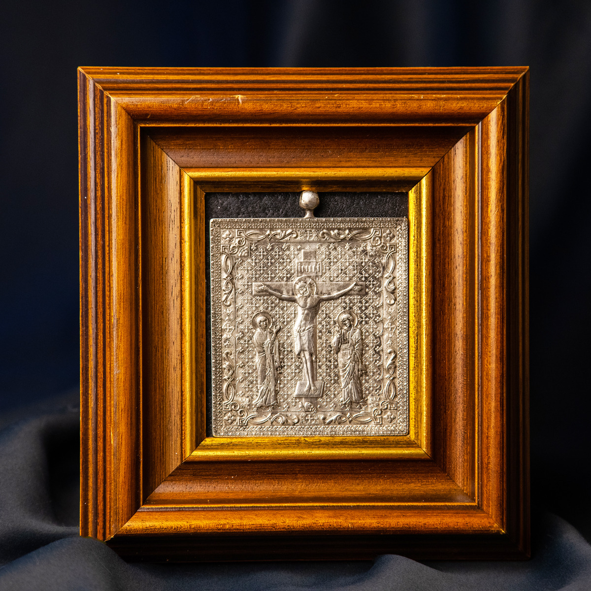 5. Распятие Христово. Иконы, в центре сюжетов которых то, ради чего Иисус Христос приходил на нашу Землю. Хороший пример таких икон — это серебряный святой Образ с предстоящими Иоанном Богословом и Богоматерью, который вы можете приобрести в нашем онлайн-магазине. Они изображены по правую и левую стороны от Иисуса в соответствии с каноном. Когда Спаситель умирал на кресте, чувствуя близкую кончину, он поручил свою Мать-вдову заботам своего любимого ученика. Также этот сюжет символизирует заступническую молитву за нас перед Богом.