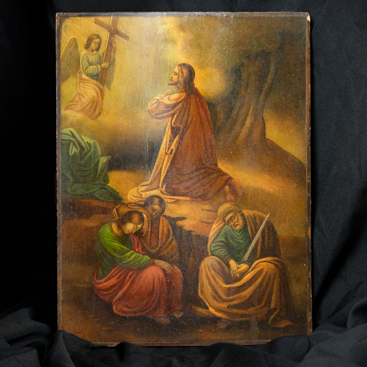 3. Моление о чаше. Следующие типы икон представляют собой некоторые из сюжетов, которые входят в цикл Страстей Христовых – событиях последней и особенно наполненной страданиями недели Его жизни. Первый из таких эпизодов – моление о чаше, когда Иисус просил Своего Небесного Отца избавить Его от мученической смерти. Как вы можете увидеть на этой иконе, Спаситель молится об этом Богу, Ангел укрепляет Его, но ближайшие ученики Иисуса спят. Это одно из страданий, через которые проходят обычные люди и которое испытывает в тот момент Христос: одни друзья подводят Его, когда Он больше всего нуждался в них, а другие выдают врагам.