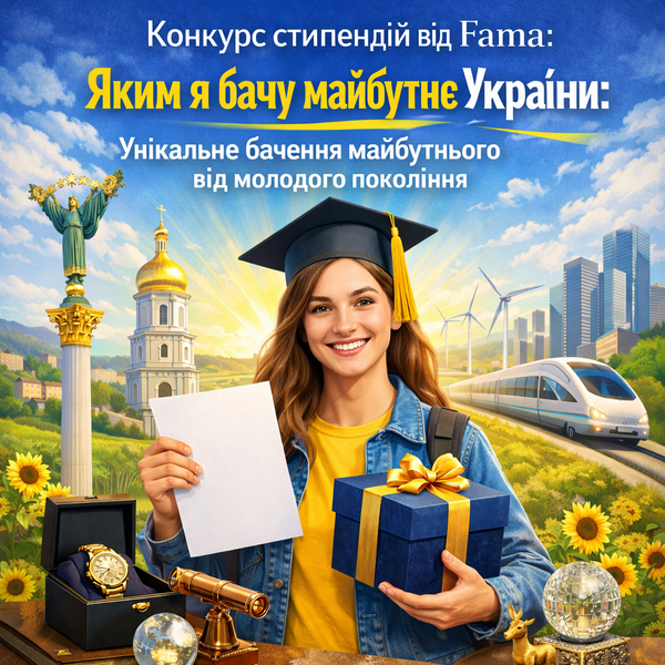 Присоединяйтесь к конкурсу и подарите Украине свое видение! Вместе мы строим будущее. За деталями — https://fama.ua/uk/news/scholarship.html.