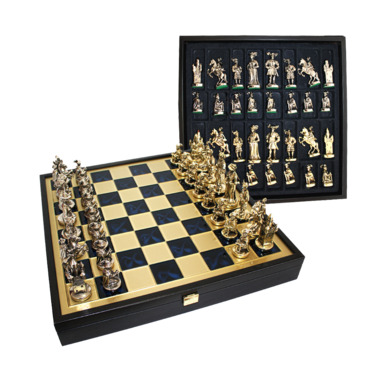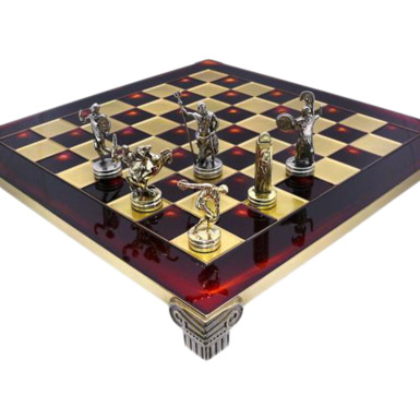 Шахматы «Олимпийские игры» – это олицетворение духа Древней Греции. Игральная доска изготовлена из натуральной бронзы, а фигурки – из цинкового сплава.