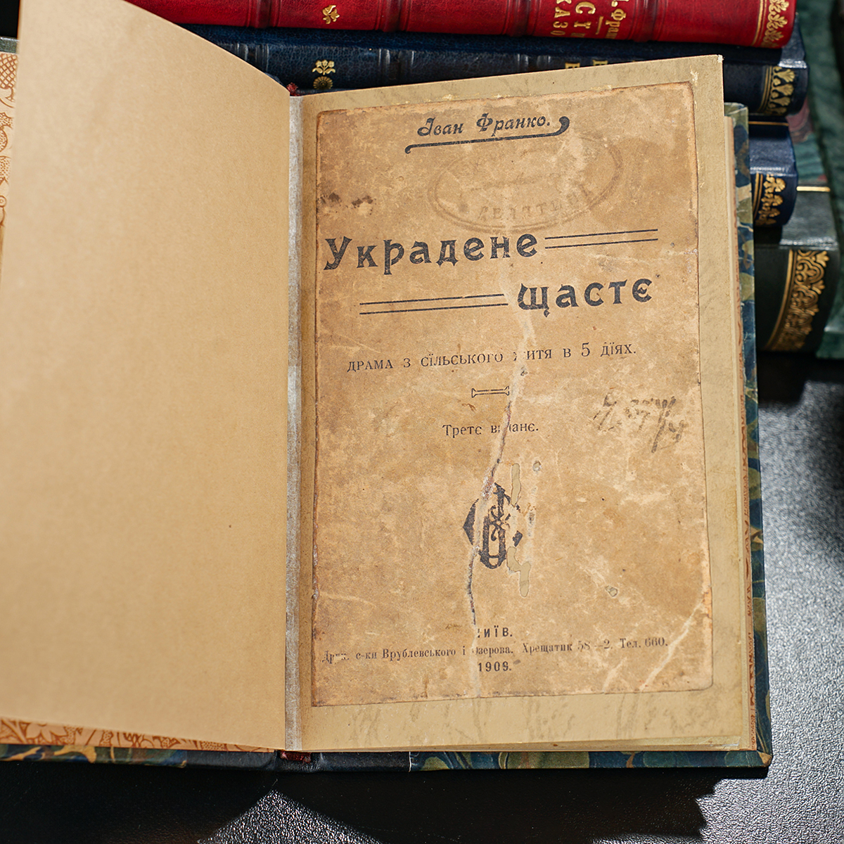 Antique book by I. Franko "Stolen Happiness", a drama in 5 acts, third edition, printing house of S. Vrublevsky and Ozerov, Kyiv, 1909, lifetime edition