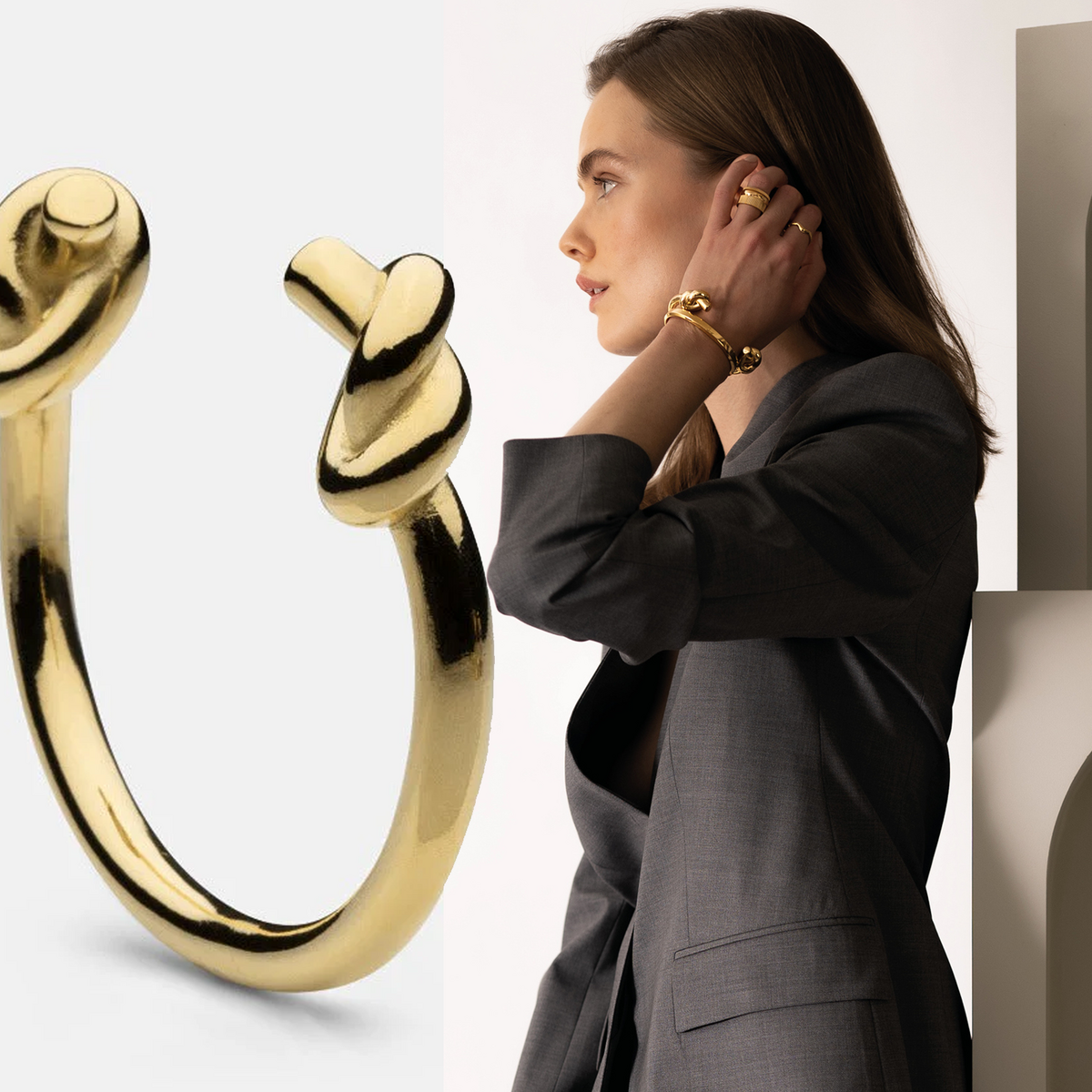 Gold plated steel bracelet "Cuff" (size M) by Skultuna (unisex)