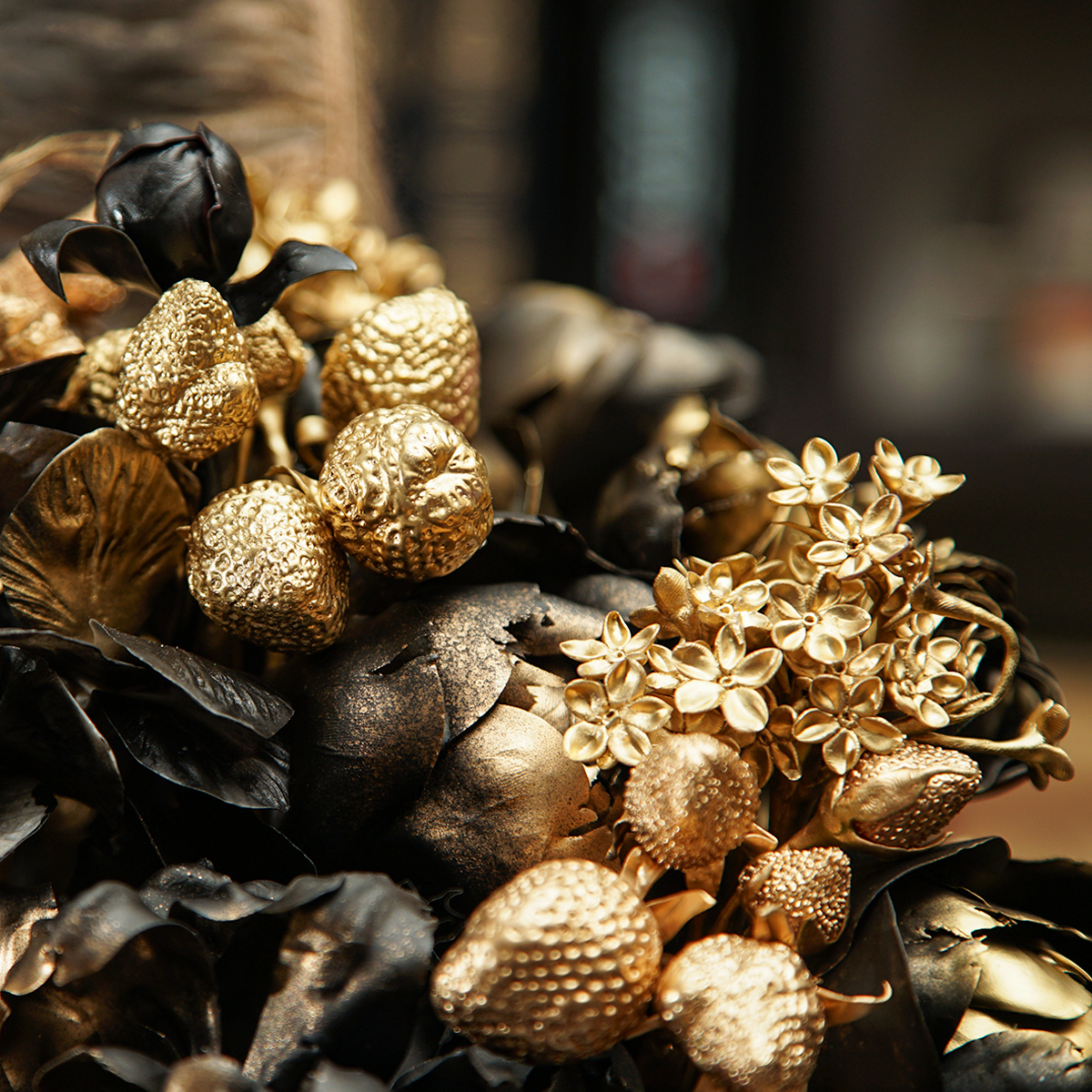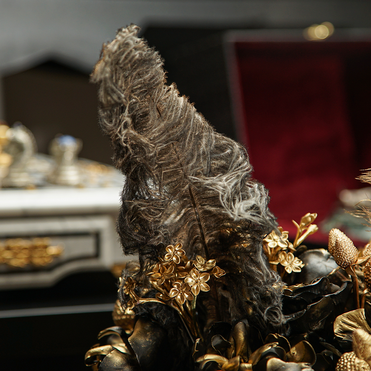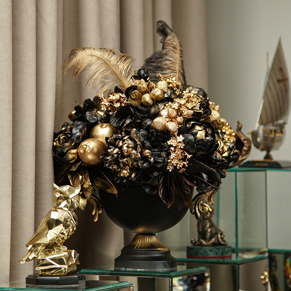 Bouquet of cold porcelain flowers in an antique vase, author Marina Malinovskaya