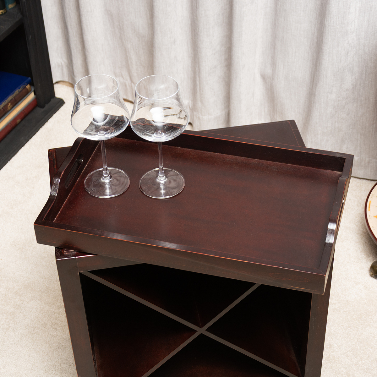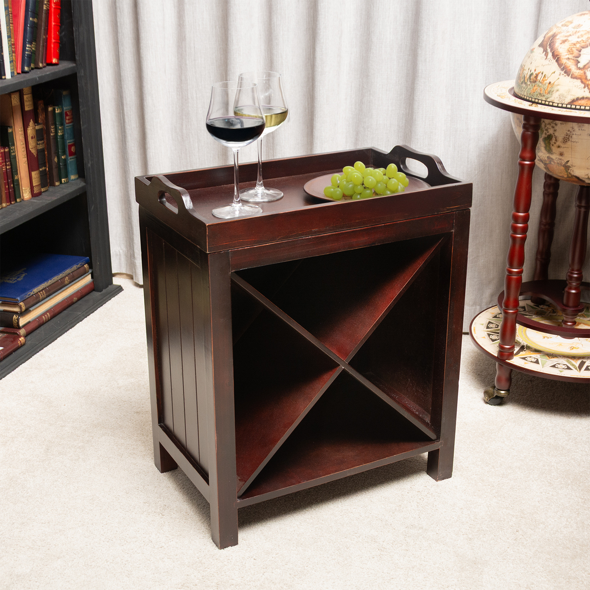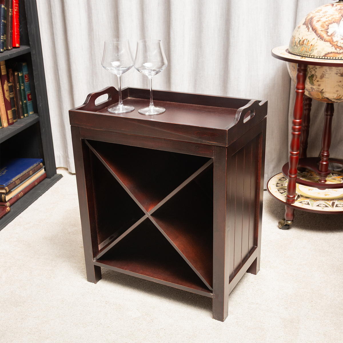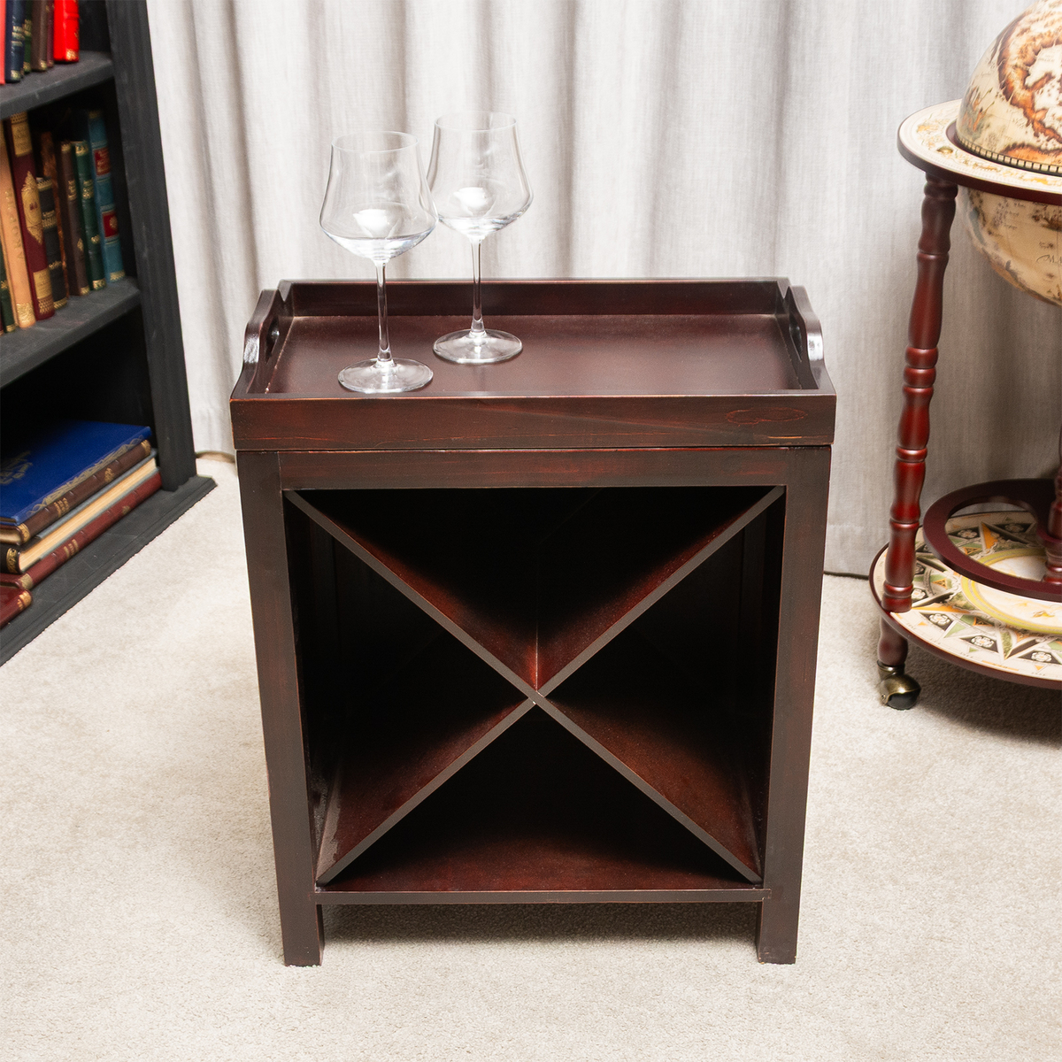 Wooden wine cabinet-rack for storing wine bottles with a tray from Nitsche