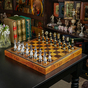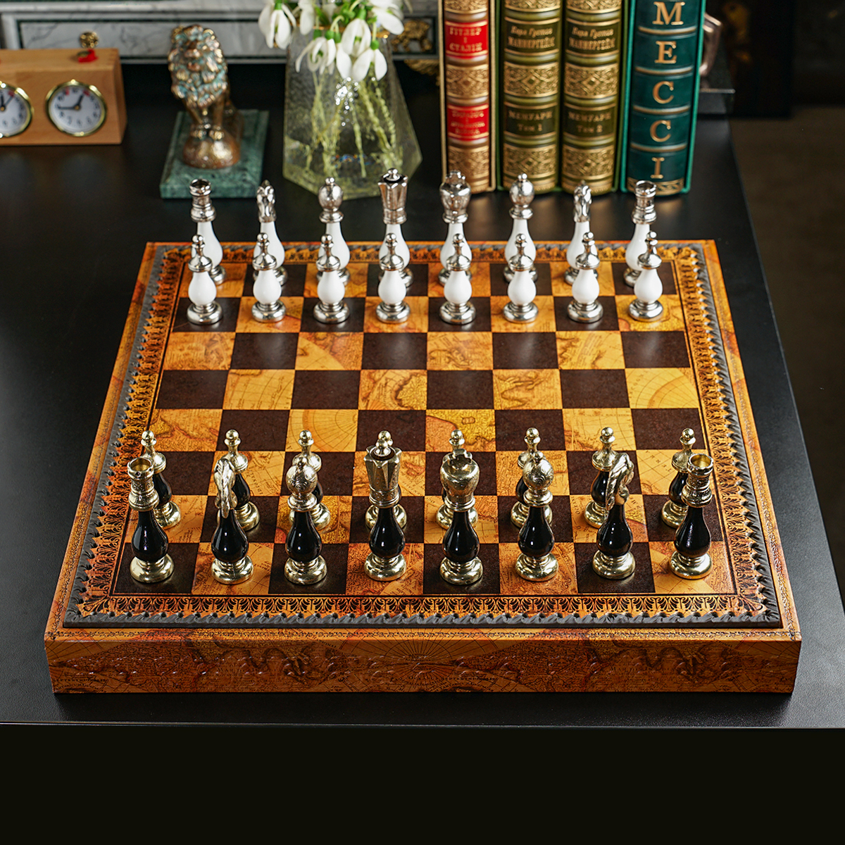 3-in-1 game set (chess, checkers, backgammon) "Avenel" with handmade leather board and metal figures from ITALFAMA