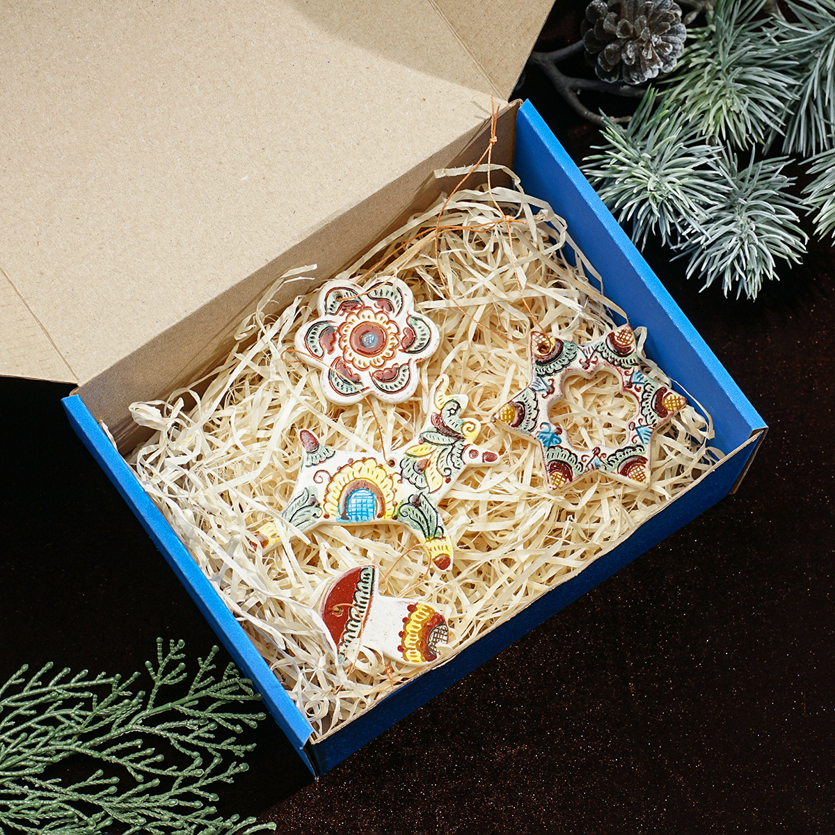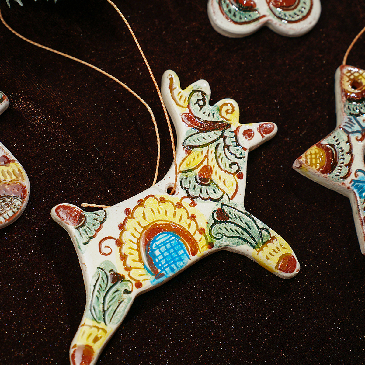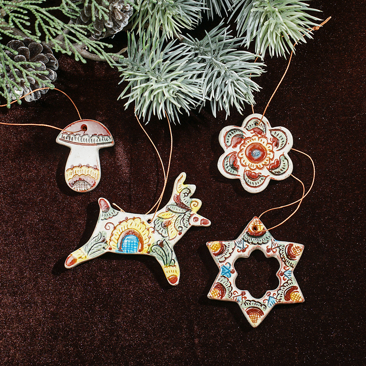 Set of Christmas tree decorations "Carols" (4 pcs.), Hutsul ceramics, author Ivanna Kozak