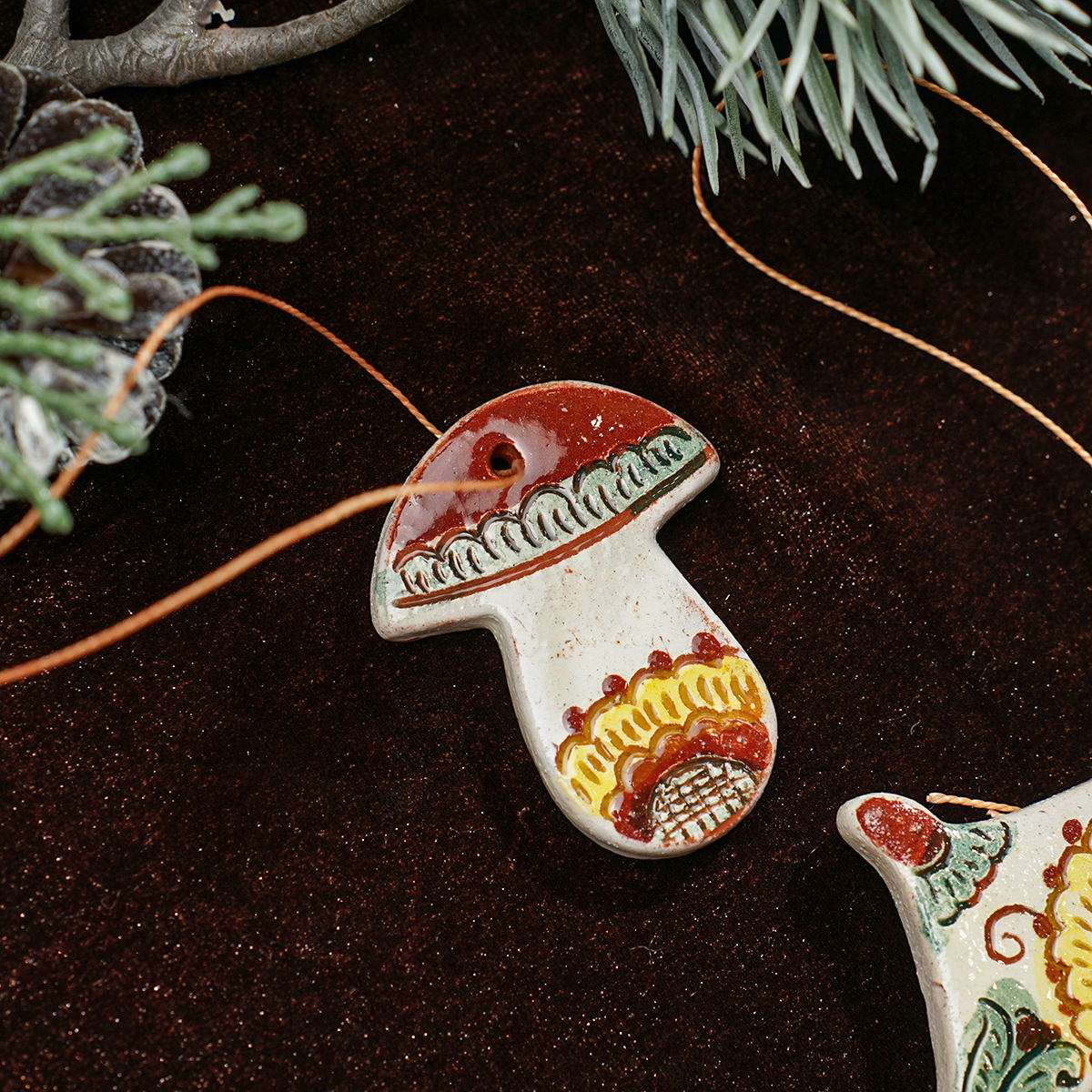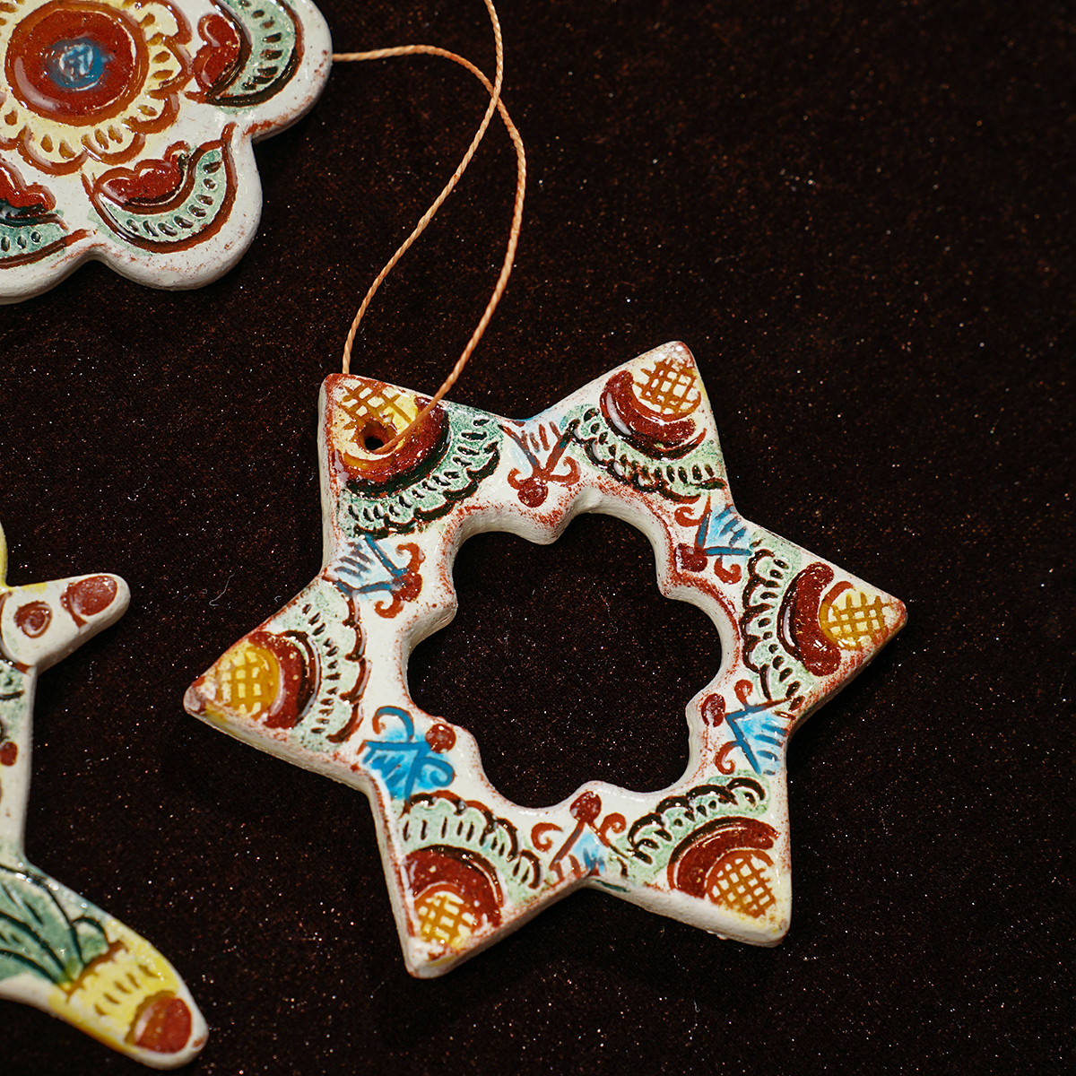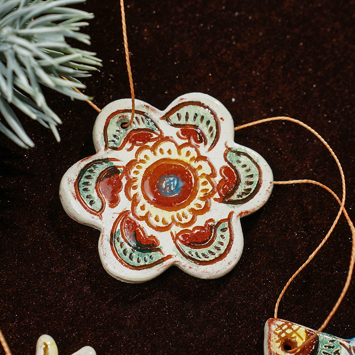 Set of Christmas tree decorations "Carols" (4 pcs.), Hutsul ceramics, author Ivanna Kozak