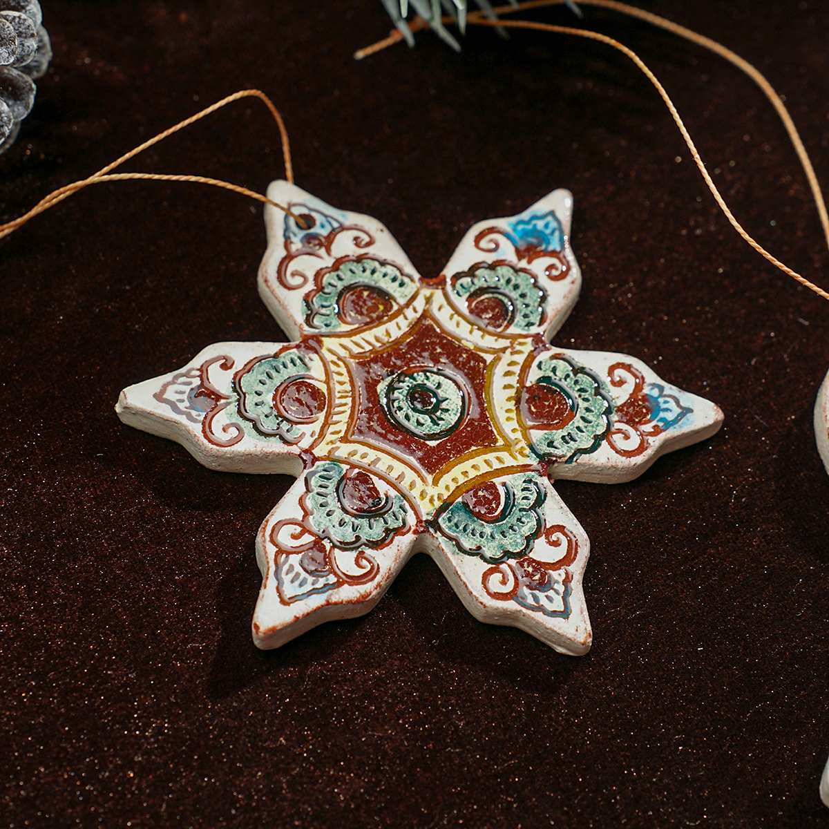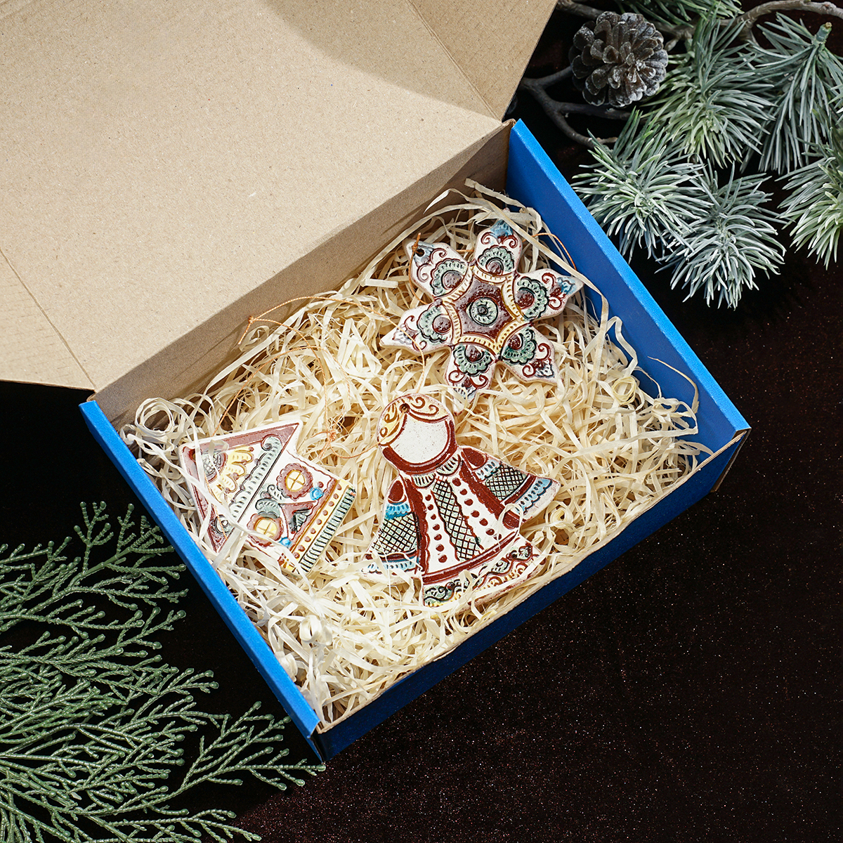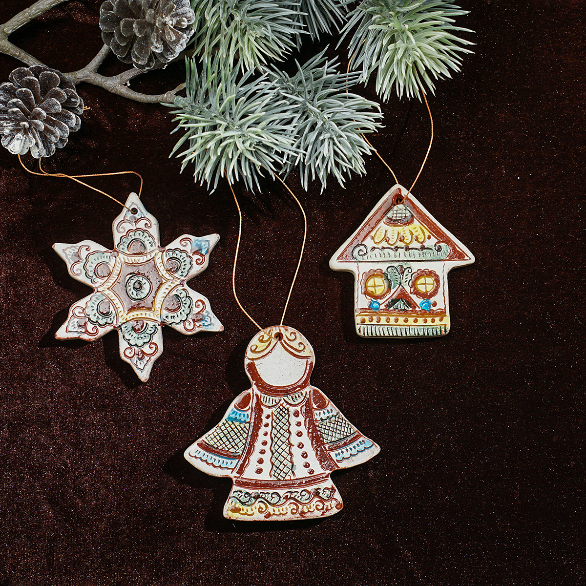 Set of Christmas tree decorations "New Year's traditions" (3 pieces), Hutsul ceramics, author Ivanna Kozak