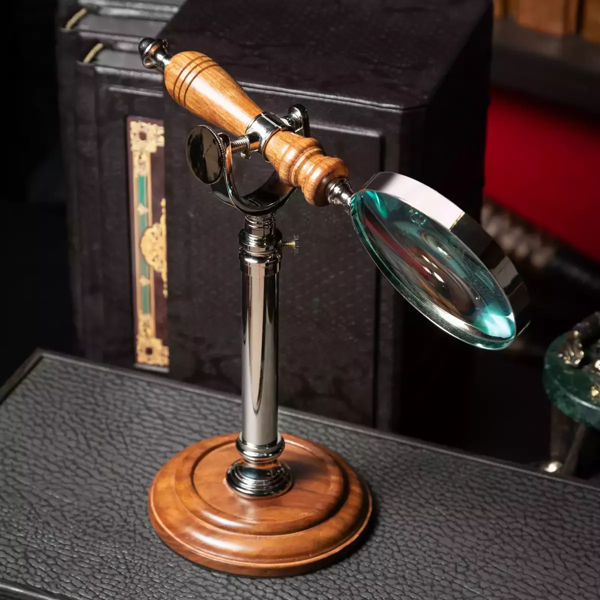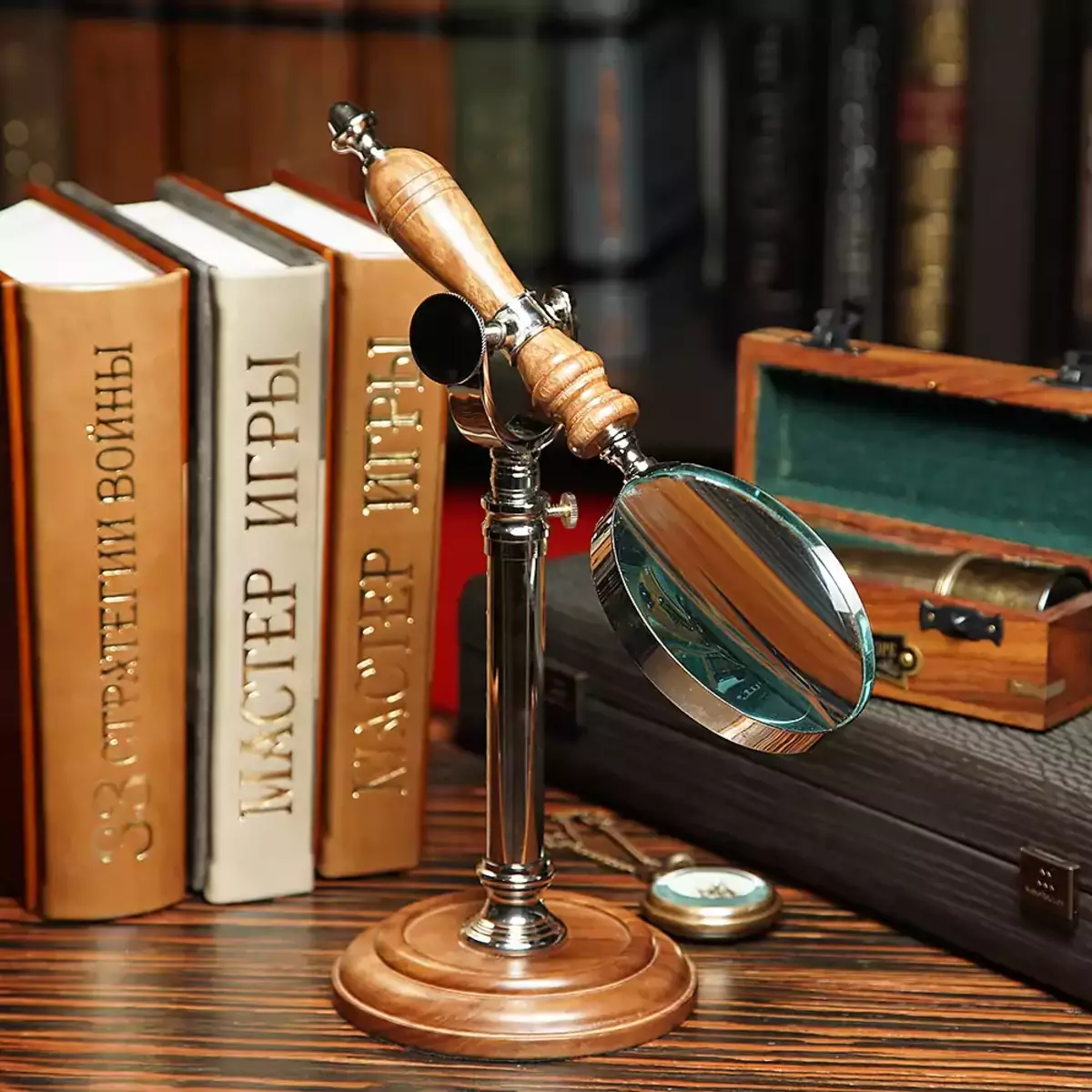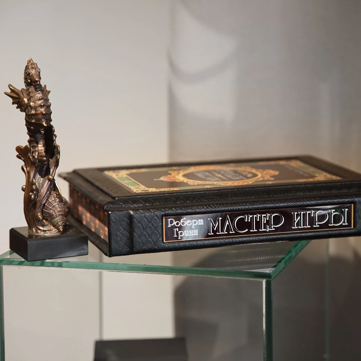 Gift set: tabletop reading magnifier on a stand and the book "The Game Master", Robert Green