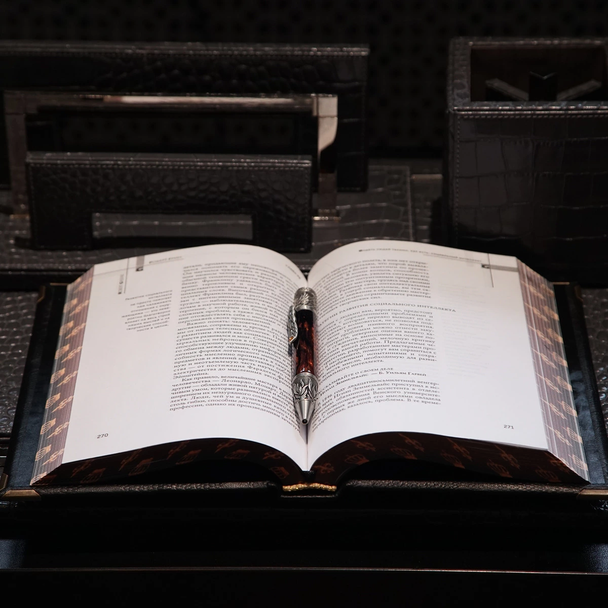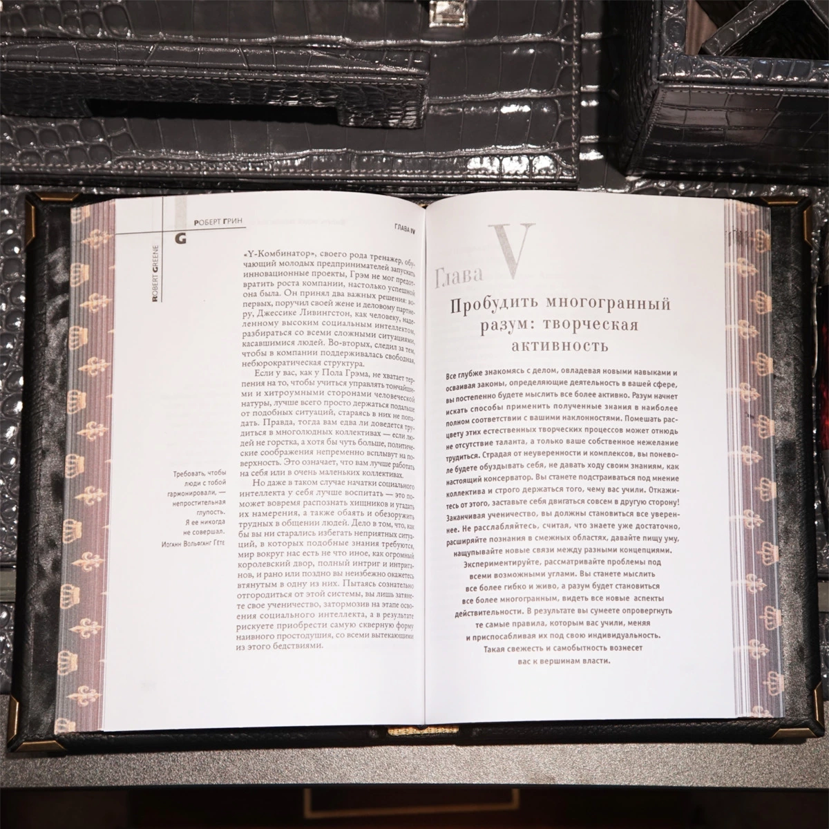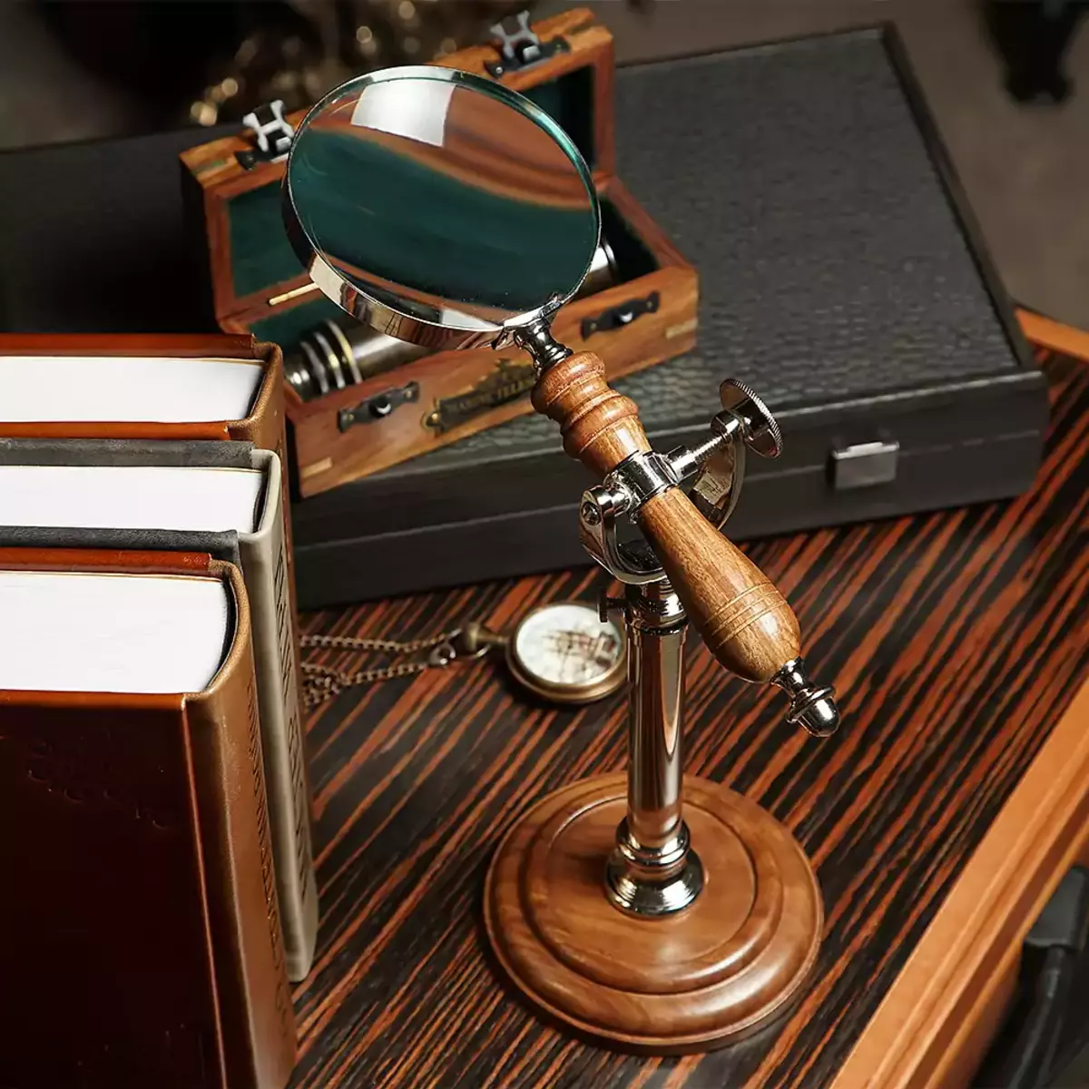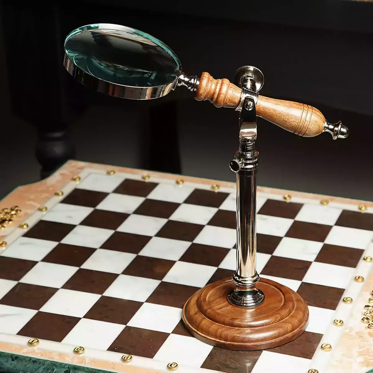 Gift set: tabletop reading magnifier on a stand and the book "The Game Master", Robert Green
