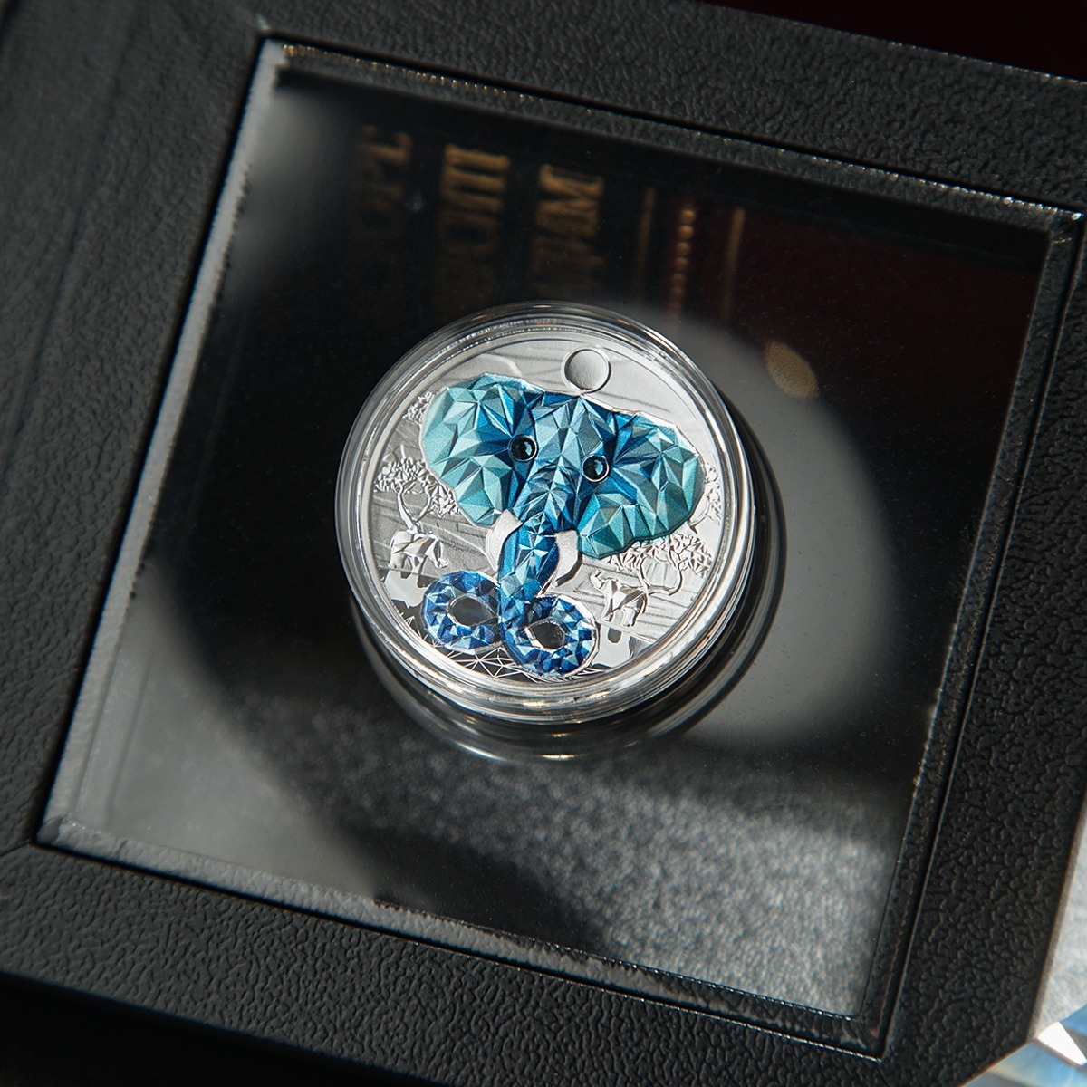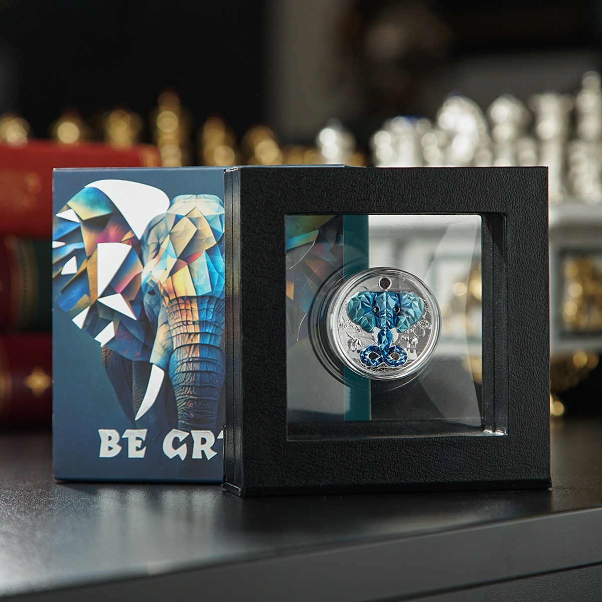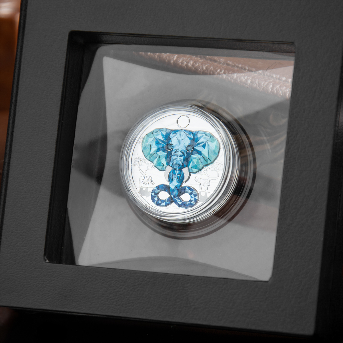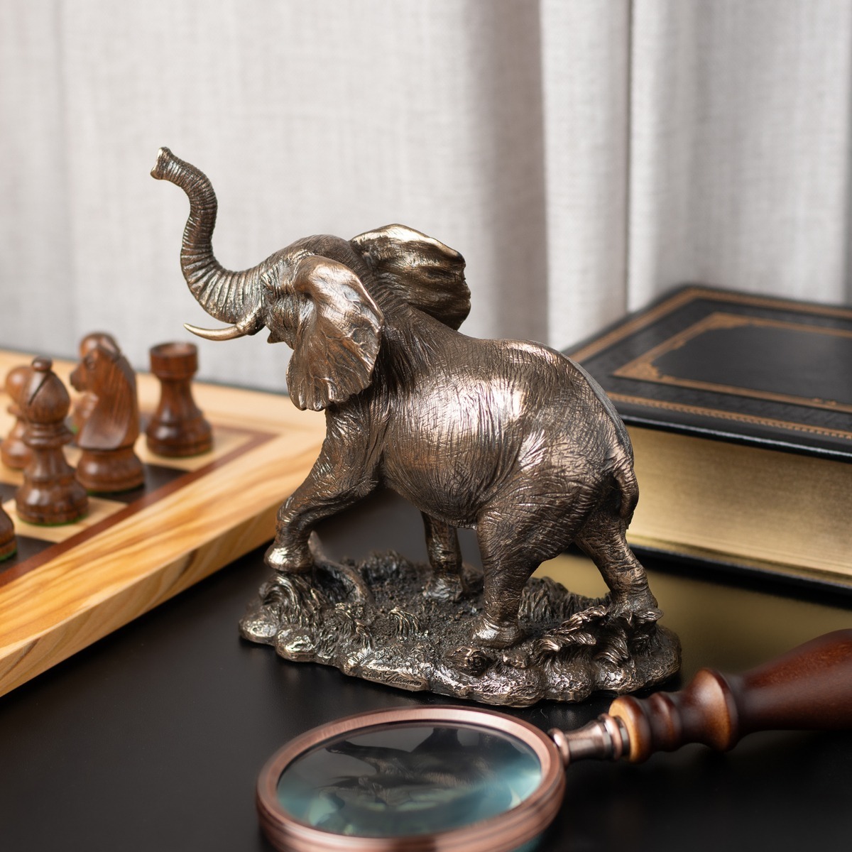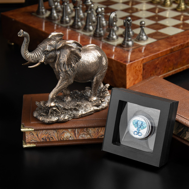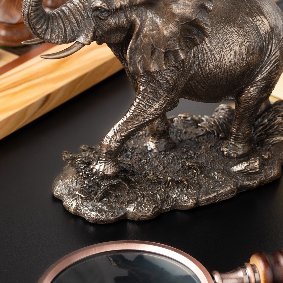 Gift set - handmade bronze statuette "Good luck" by Italfama and silver coin with crystal "The Great Elephant", 1000 francs