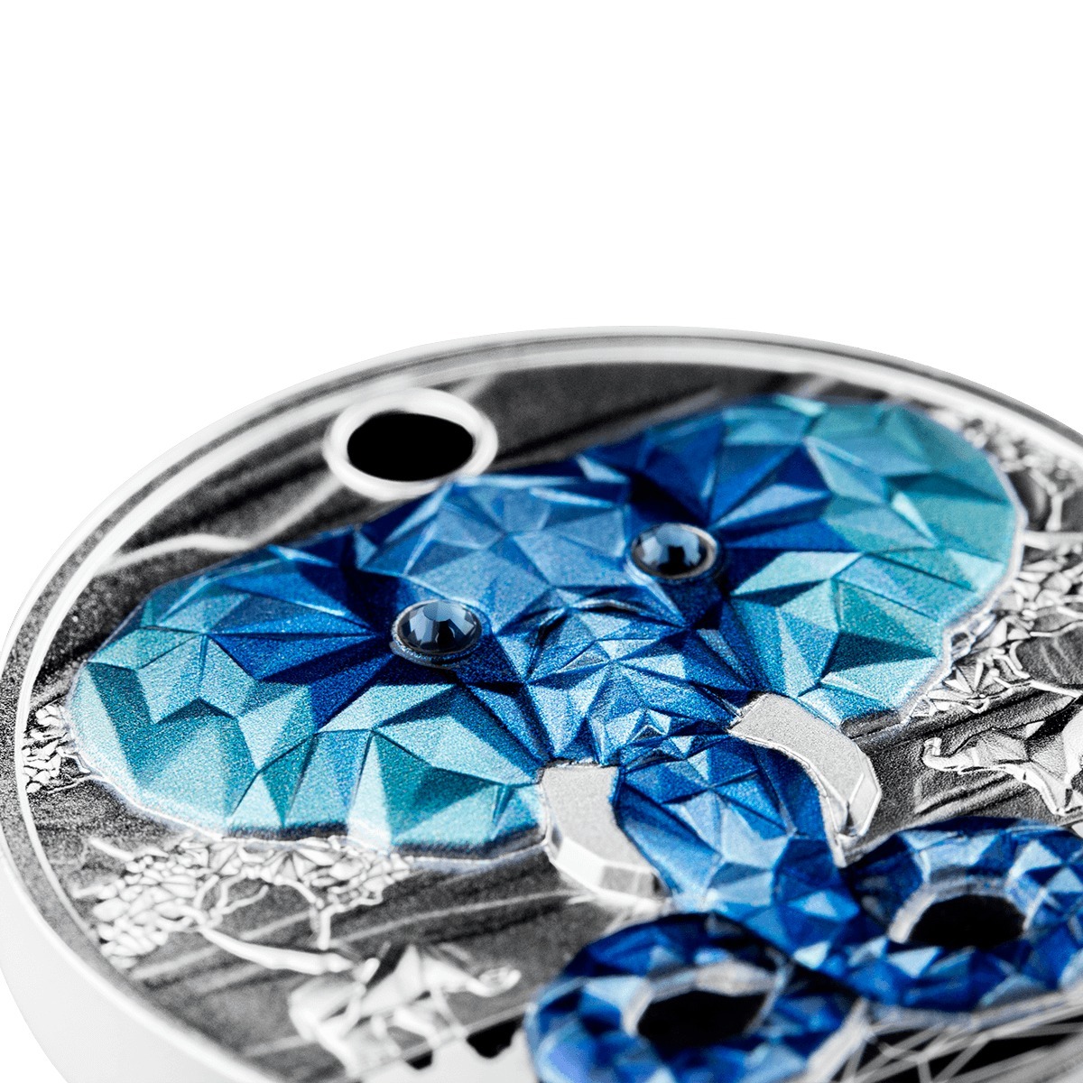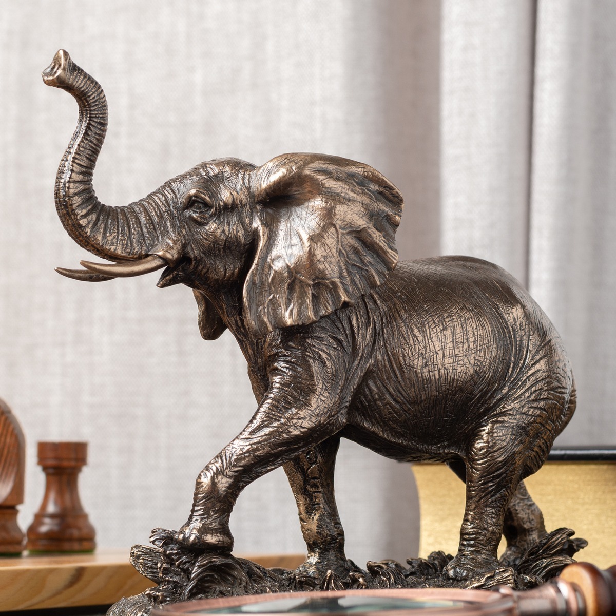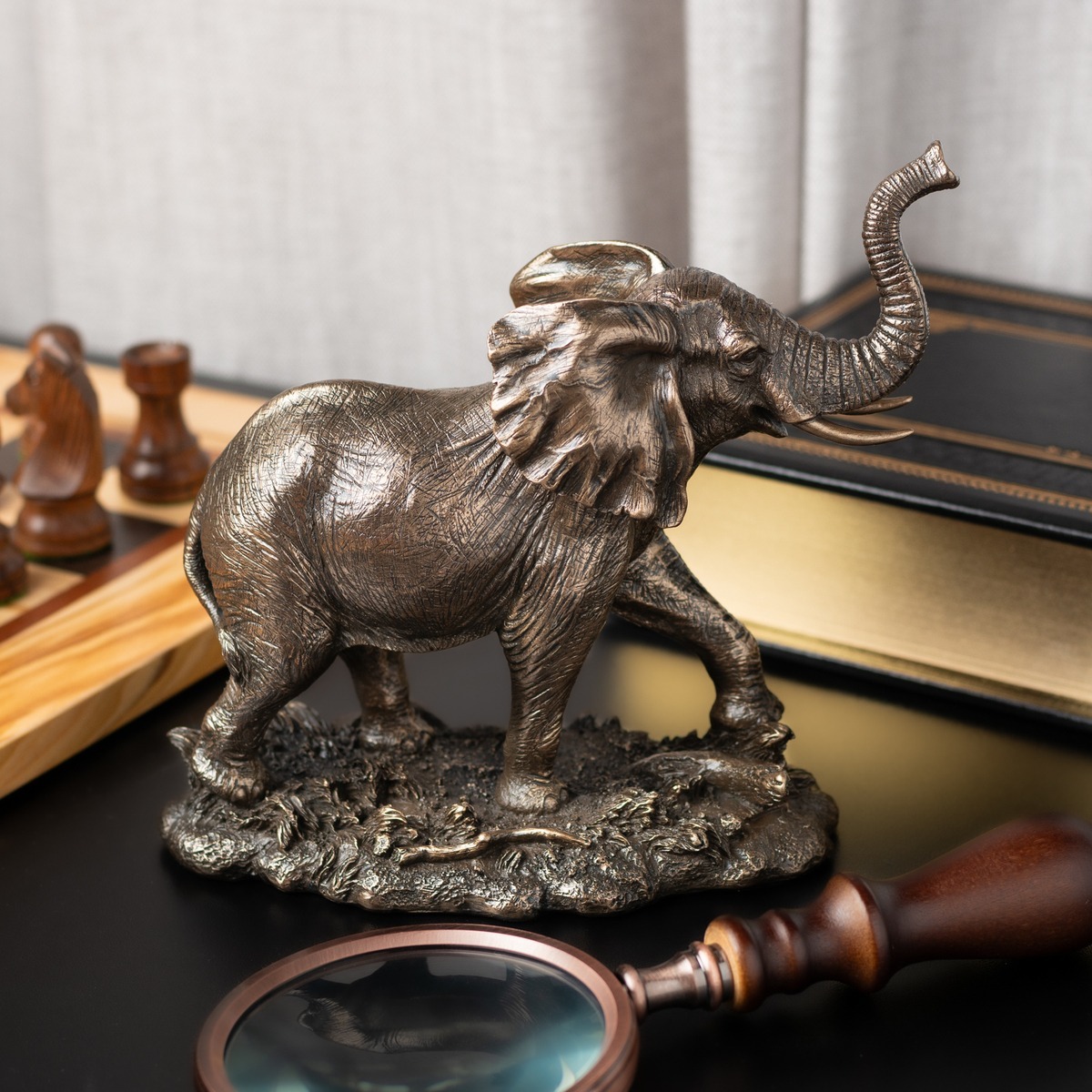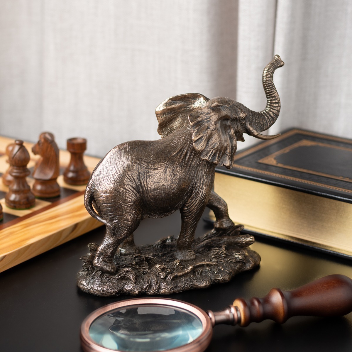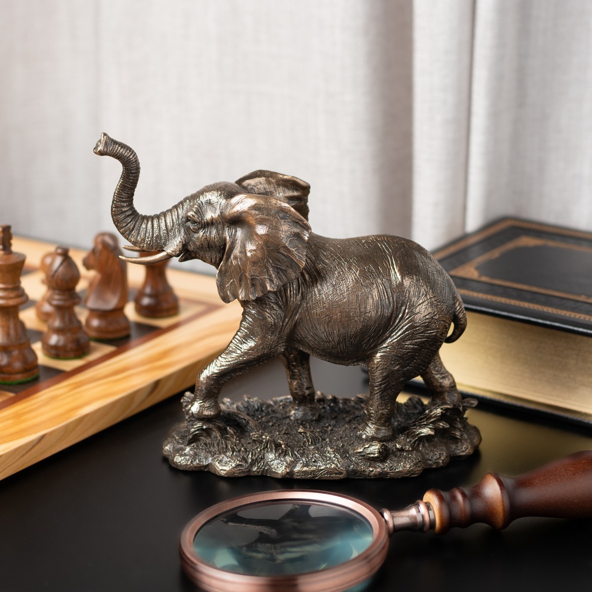 Gift set - handmade bronze statuette "Good luck" by Italfama and silver coin with crystal "The Great Elephant", 1000 francs