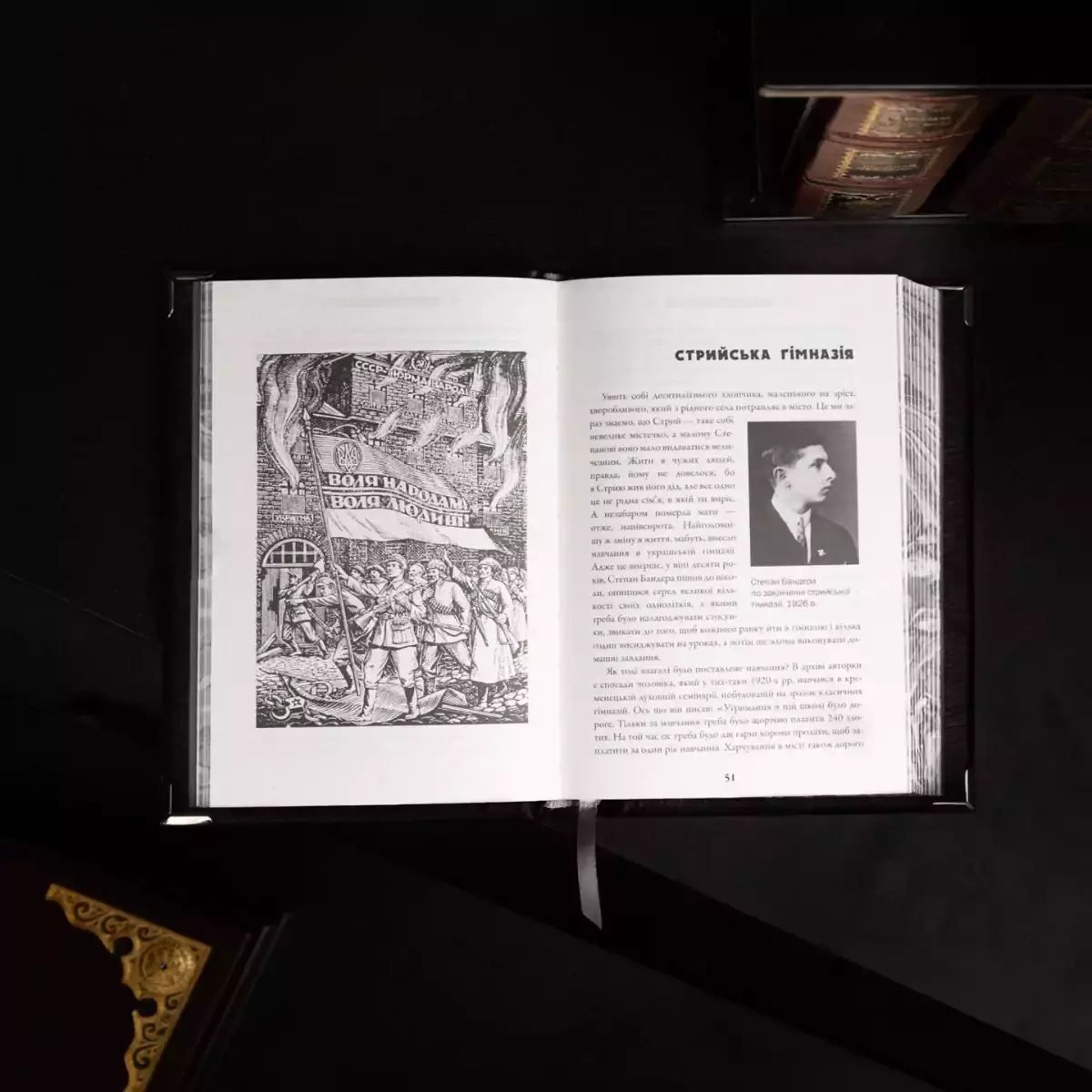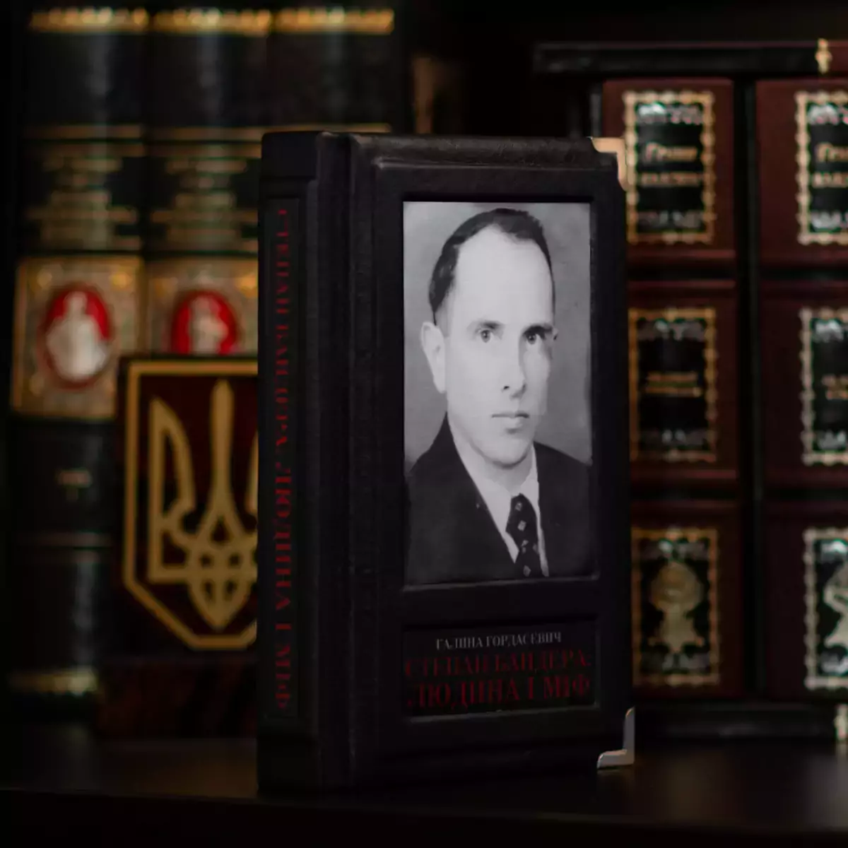 Gift set of crystal glasses with gilding and silver "Trident" and the book "Stepan Bandera. Man and Myth", Halyna Gordasevych (in Ukrainian)