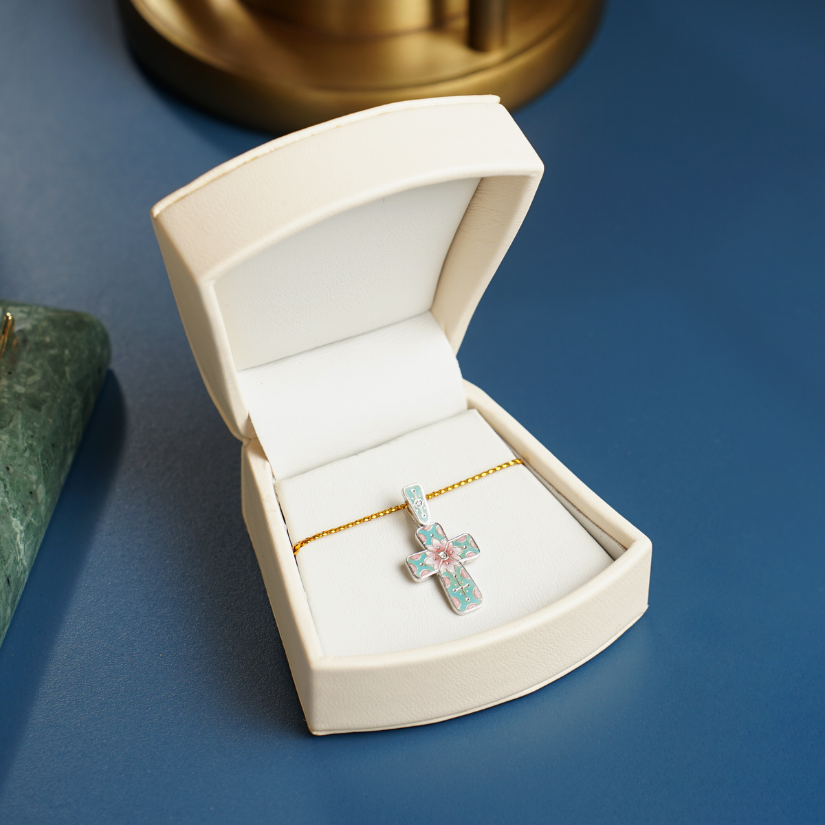 Silver pectoral cross with diamonds "Spring" by Lobortas