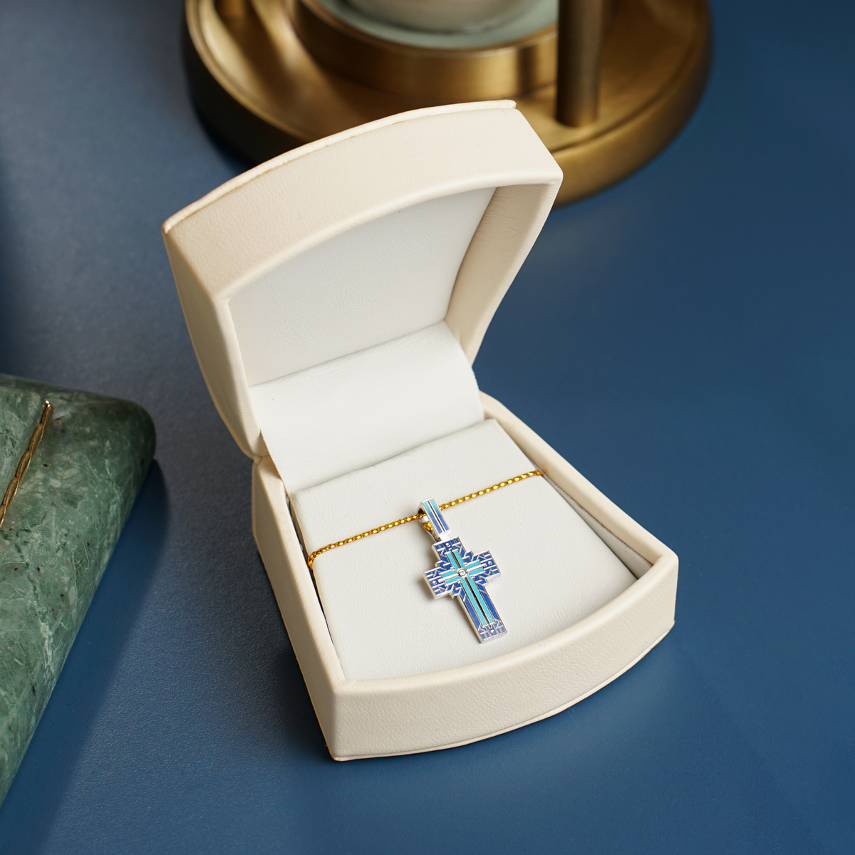 Silver pectoral cross with diamond "Twig of Faith" by Lobortas