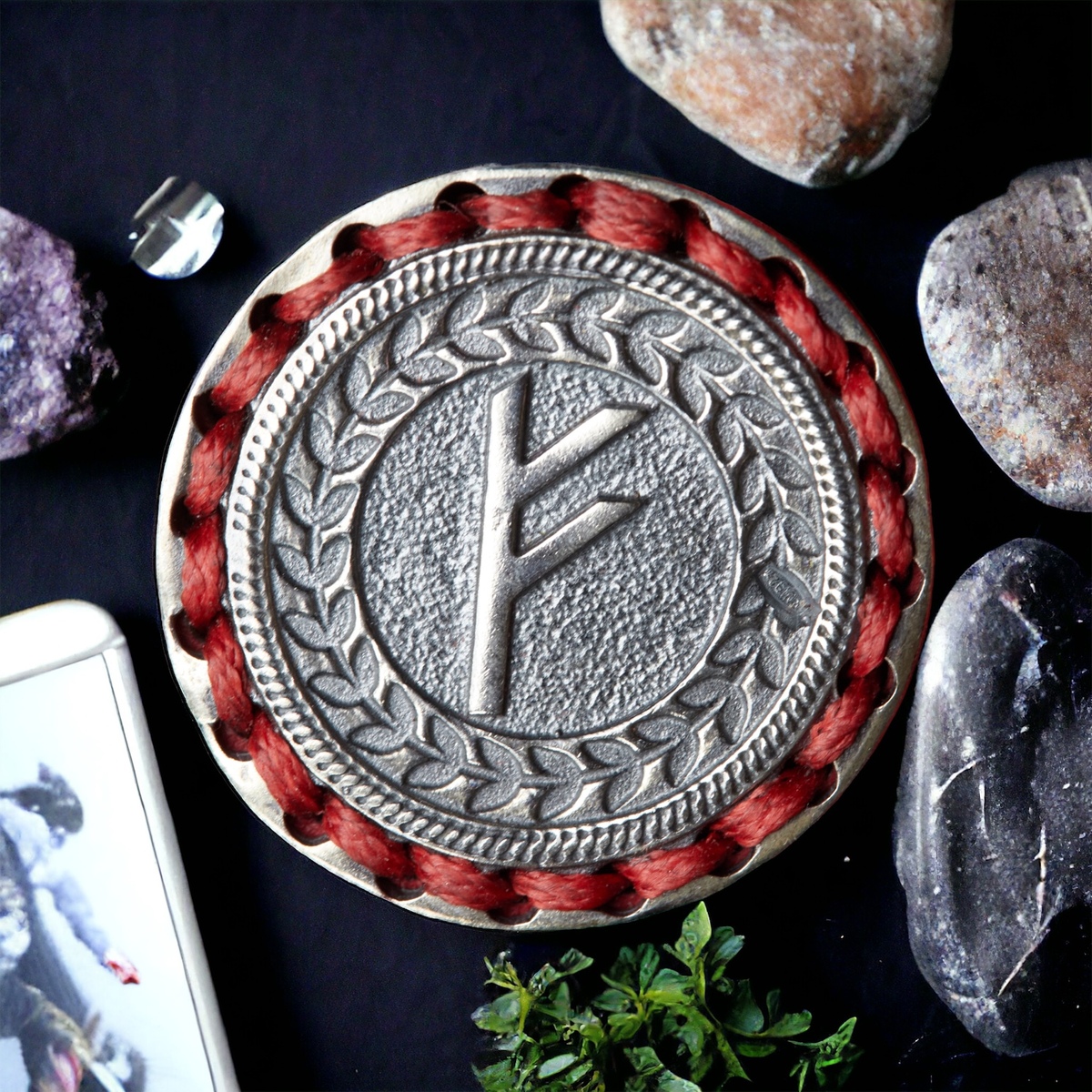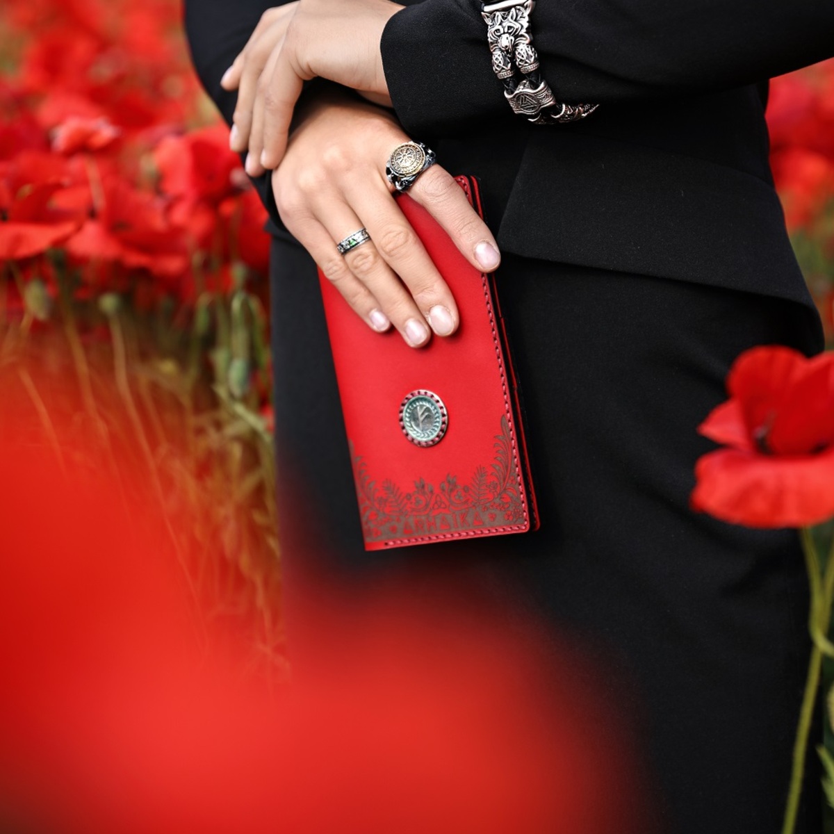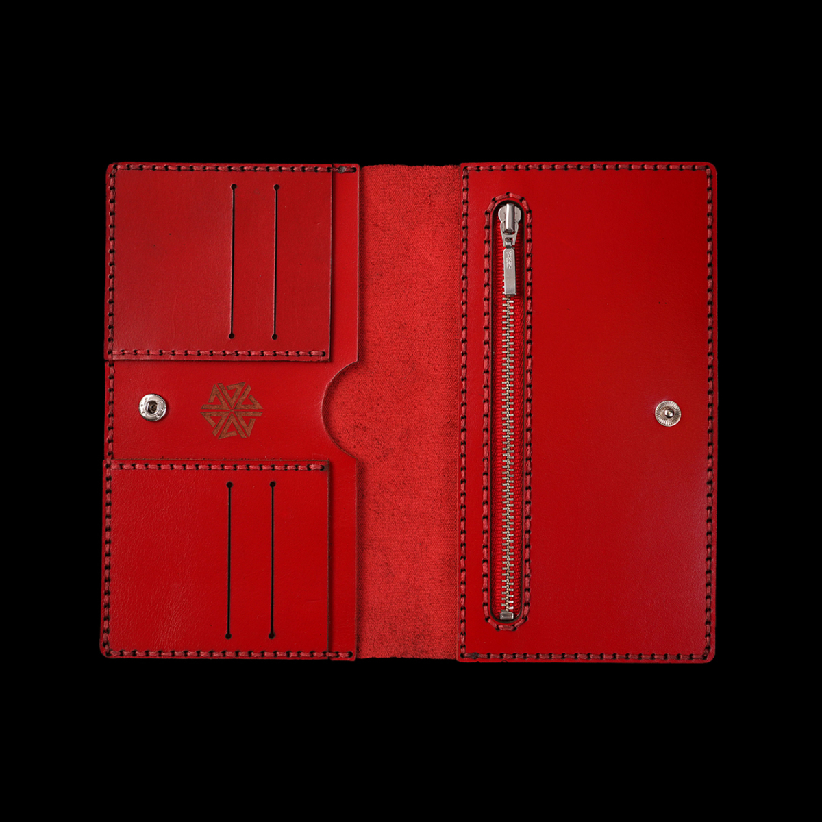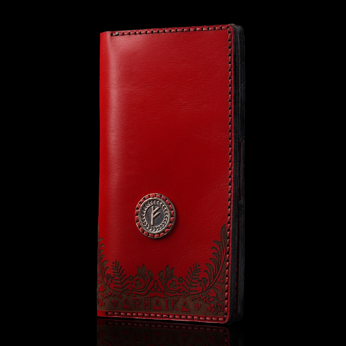 Leather wallet "Fialli" with silver Feh rune (red) by Arhaika