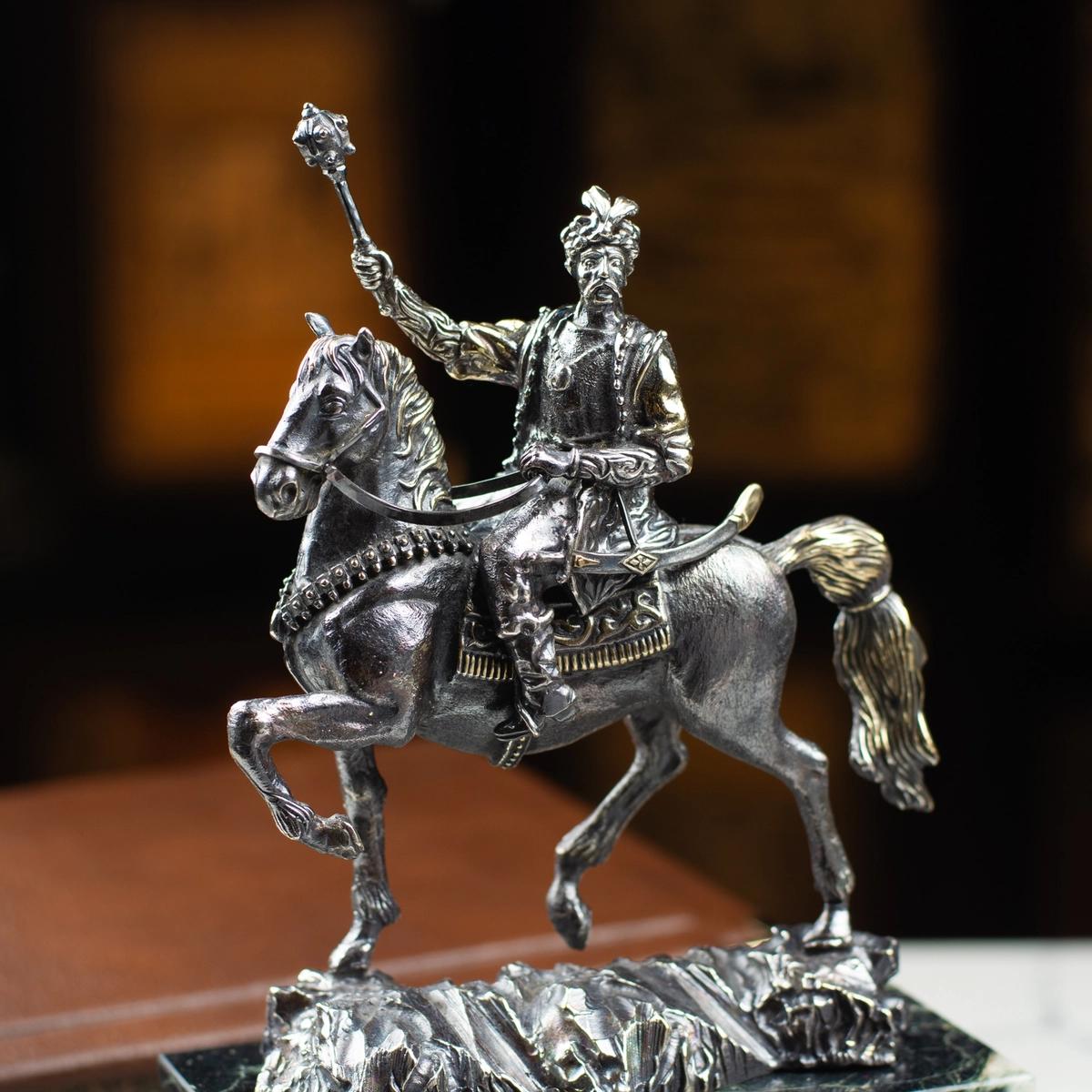 Sculpture "Koshovy Ataman" made of Pandora brass, silver plating with black, gilding, marble