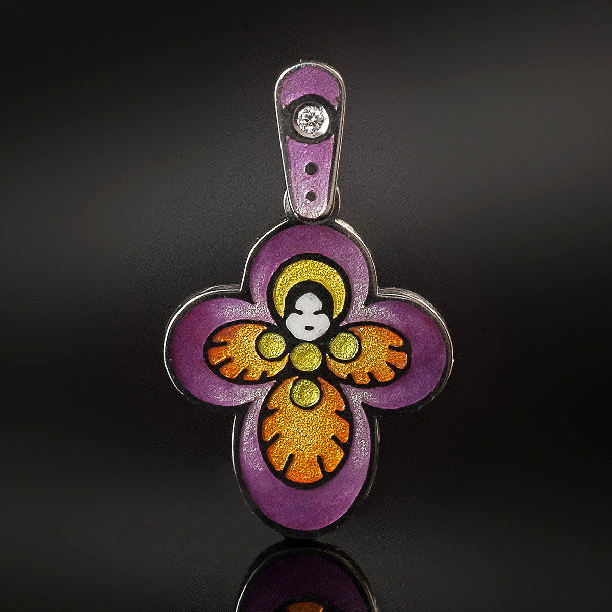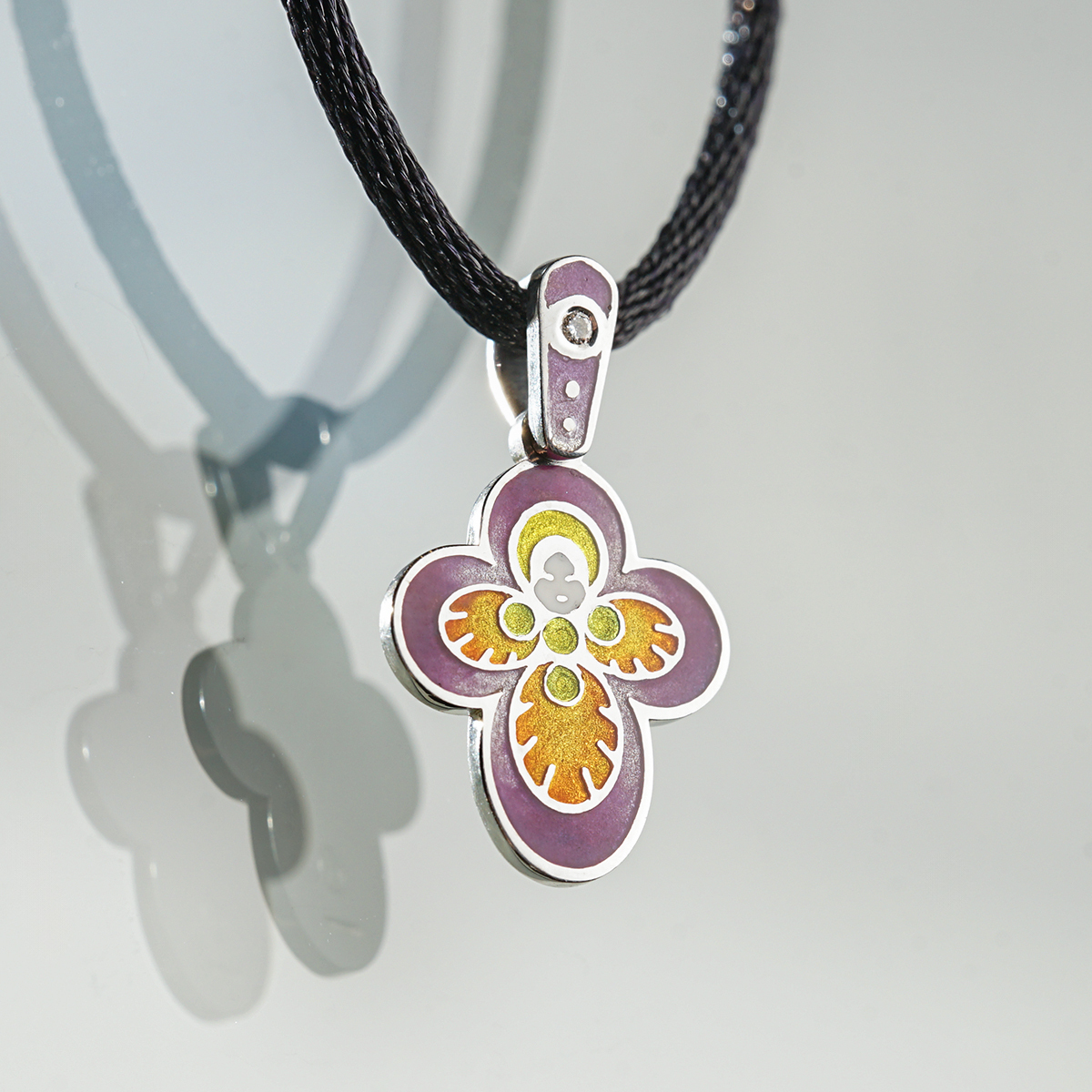 Silver cross "Colorful Amulet" with diamonds and jewelry enamel by Lobortas