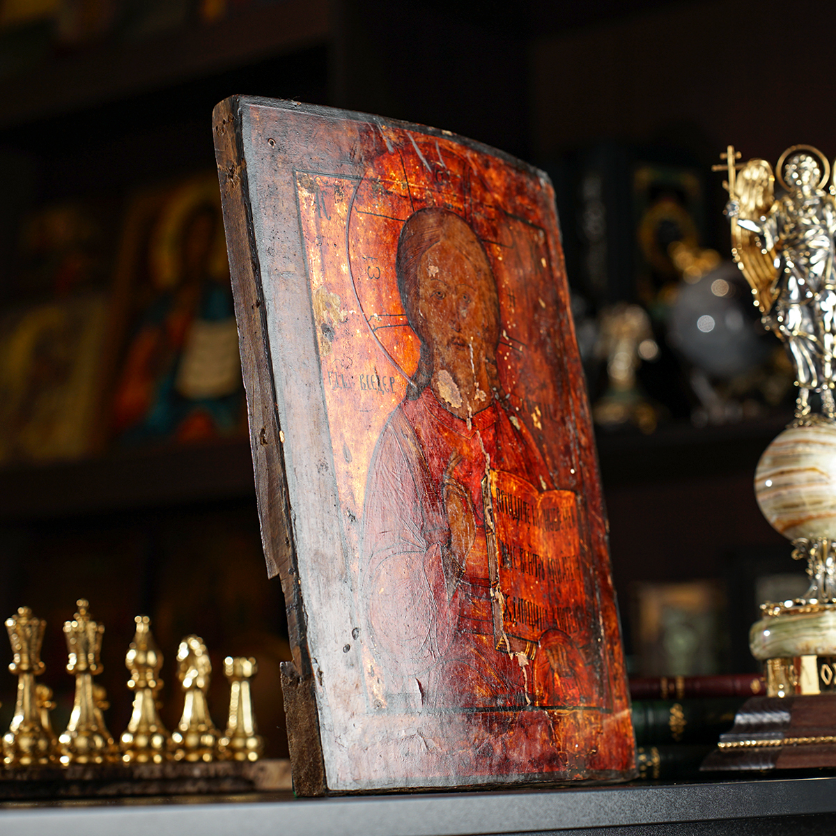 Antique icon of the Savior, late 18th century (1789–1799), northern regions of Orthodoxy (without restoration)