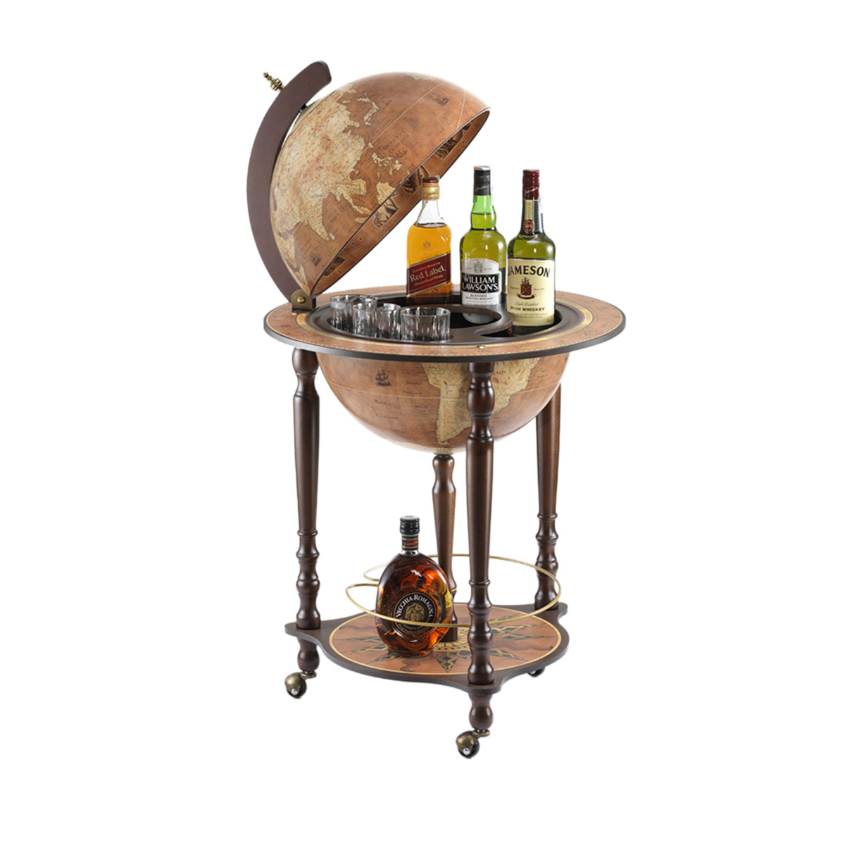 Напольный глобус-бар «Джазон» имеет две платформы для хранения алкогольных напитков и других принадлежностей.