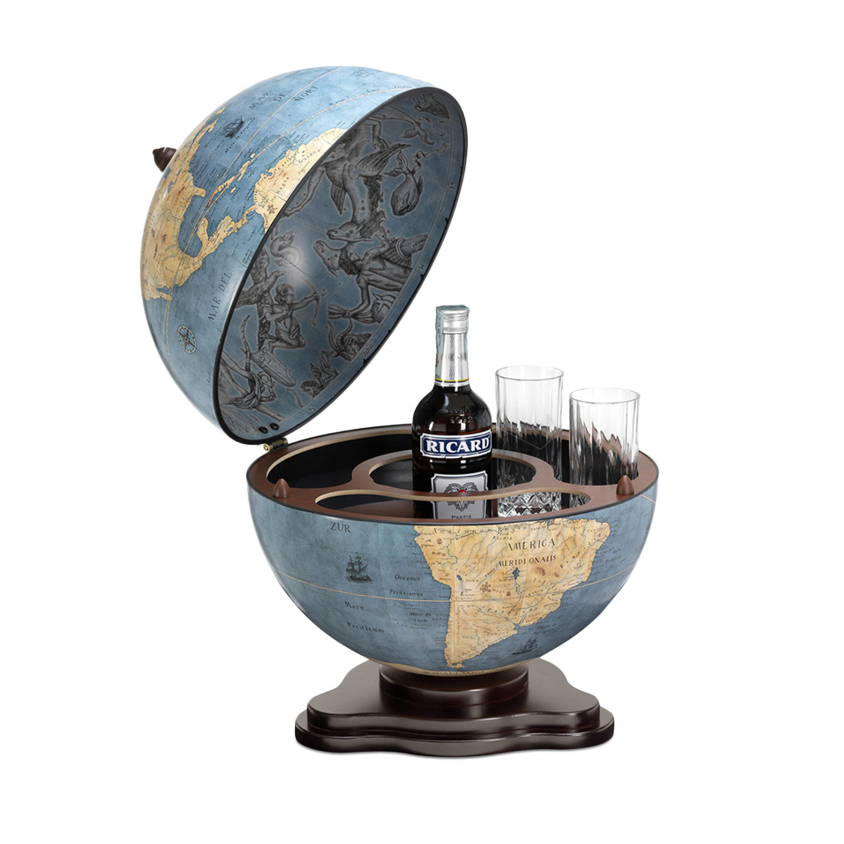 На Fama появились оригинальные аксессуары – глобус-бары, придуманные в XX веке мебельным мастером из Италии Дино Зоффоли. Глобусы демонстрируют точные копии оригинальных карт XVI и XVII веков, а внутри глобуса находится бар, способный вмещать до 10 бутылок и 8 бокалов. Идея и прекрасное исполнение такого изделия принесли Зоффоли всемирную известность.