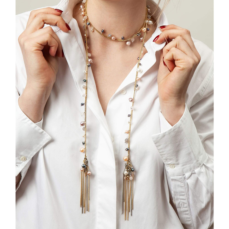 Колье "ANGEL GOLD" с жемчугом, агатами и кварцем от SAMOKISH