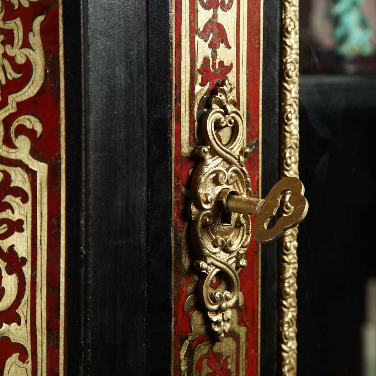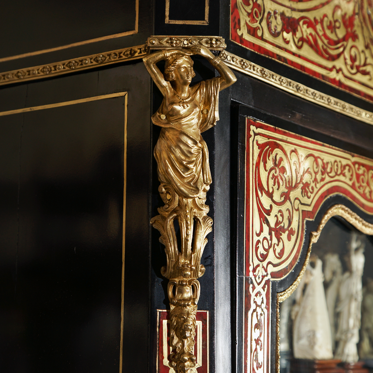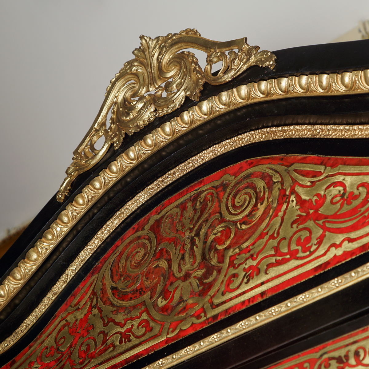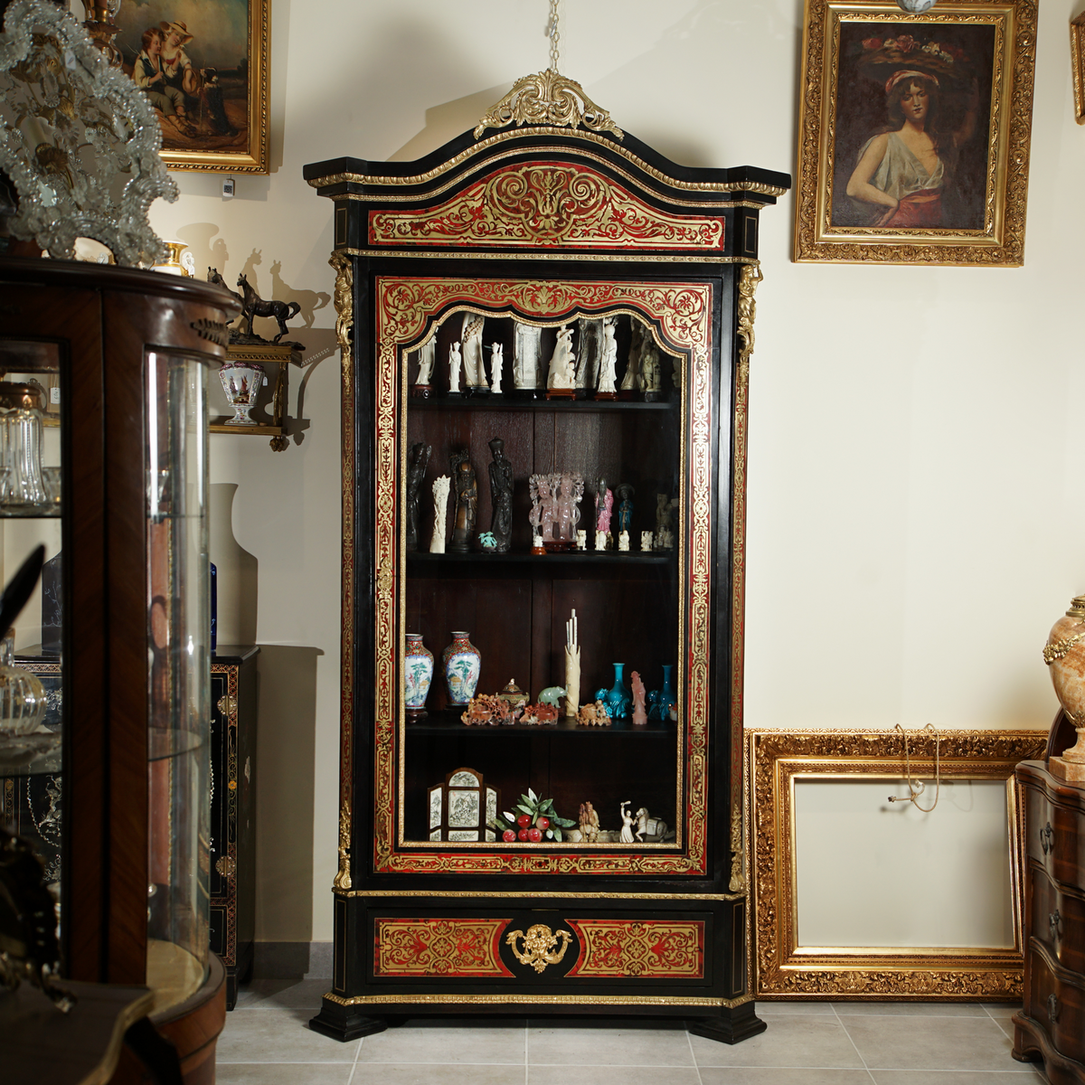 Антикварный книжный шкаф из дерева груши в технике Буль, середина 19-го века, Франция