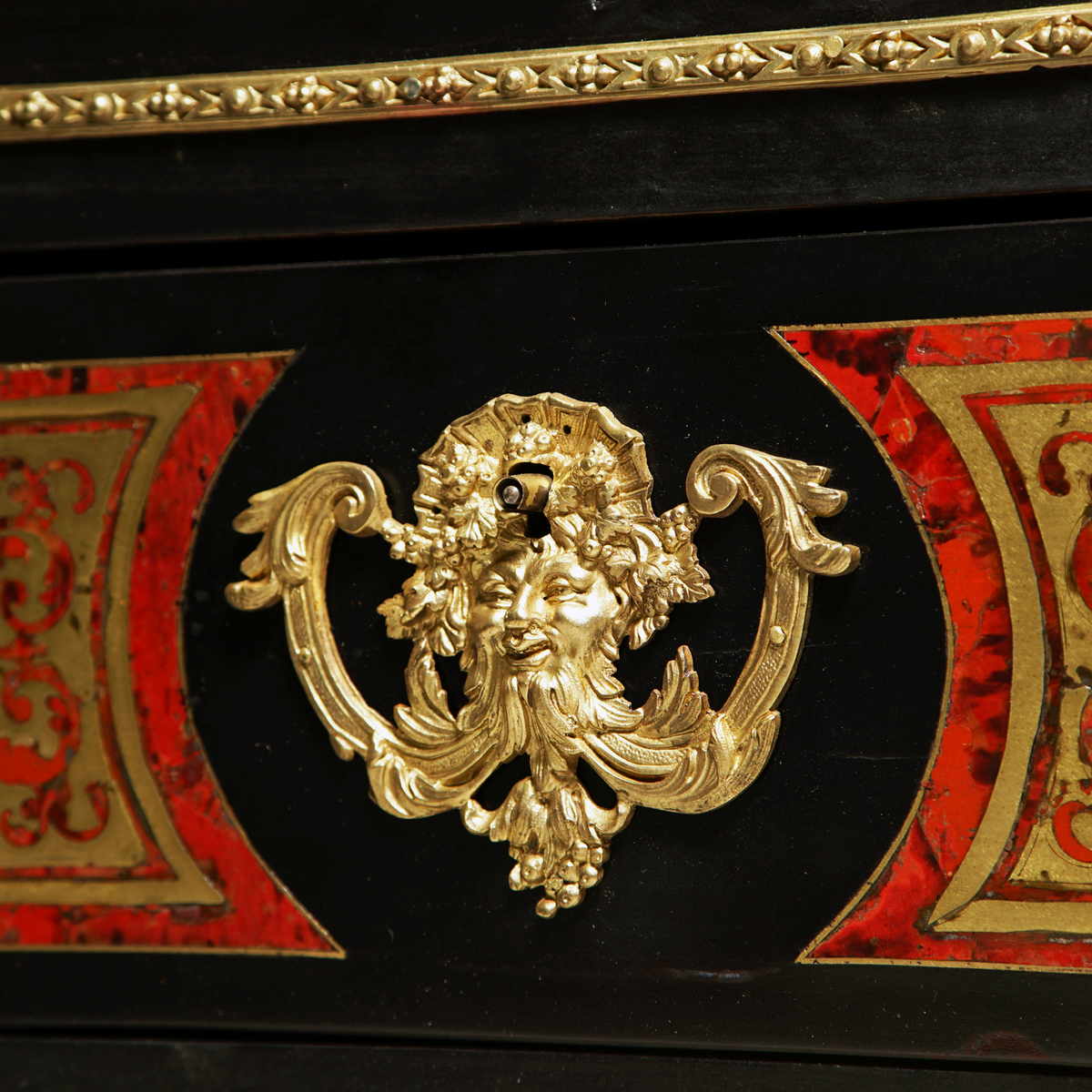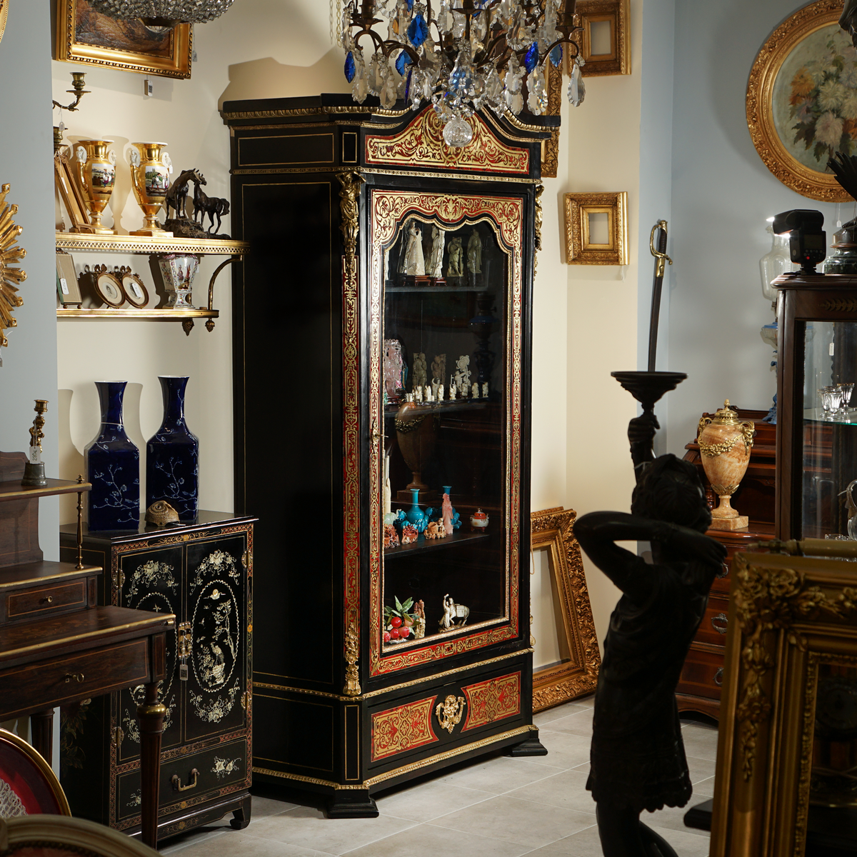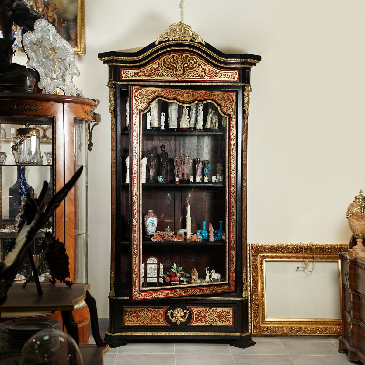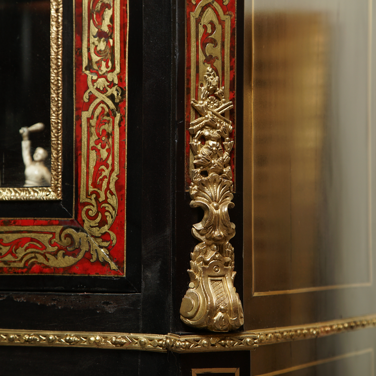 Антикварный книжный шкаф из дерева груши в технике Буль, середина 19-го века, Франция
