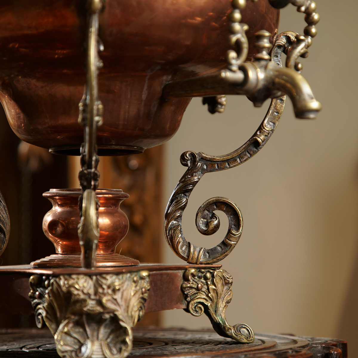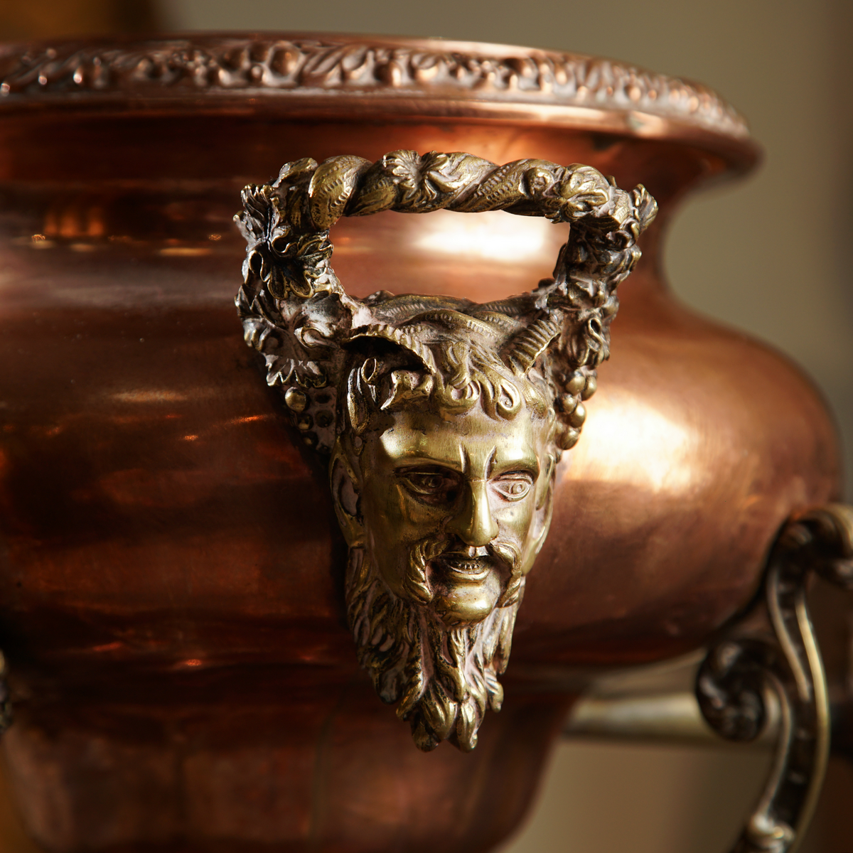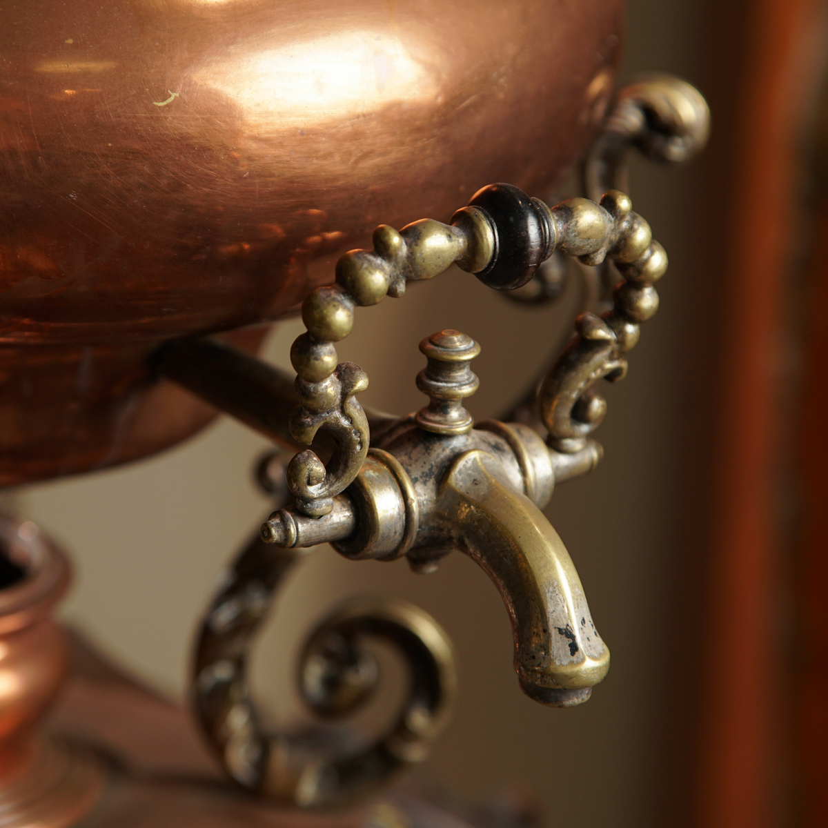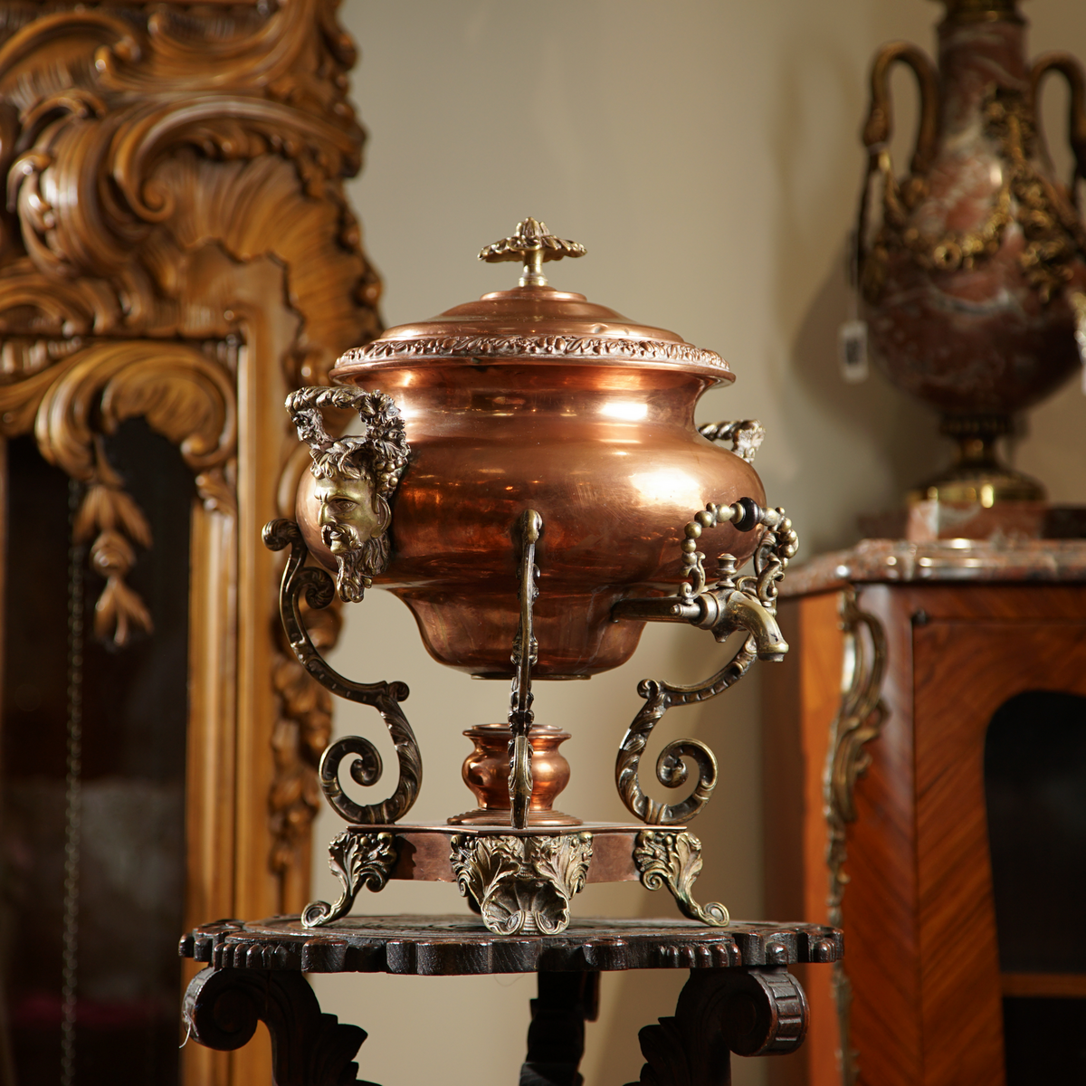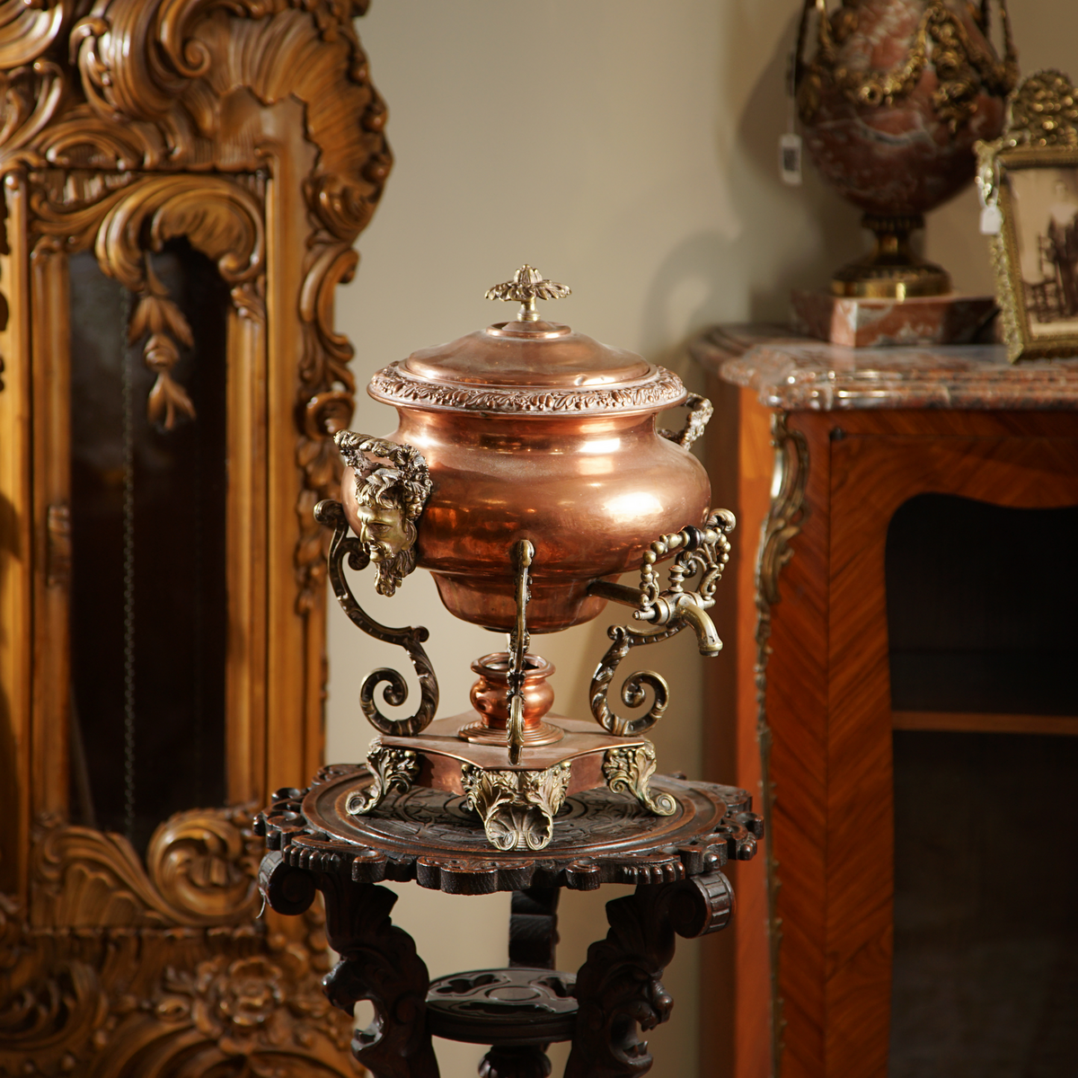 Антикварный медный самовар в стиле неоренессанс, 19-20 век