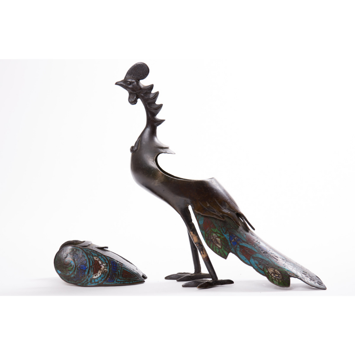 Антикварная бронзовая скульптура "Phoenix" с внутренним тайником, Япония, 2 половина 19-го века