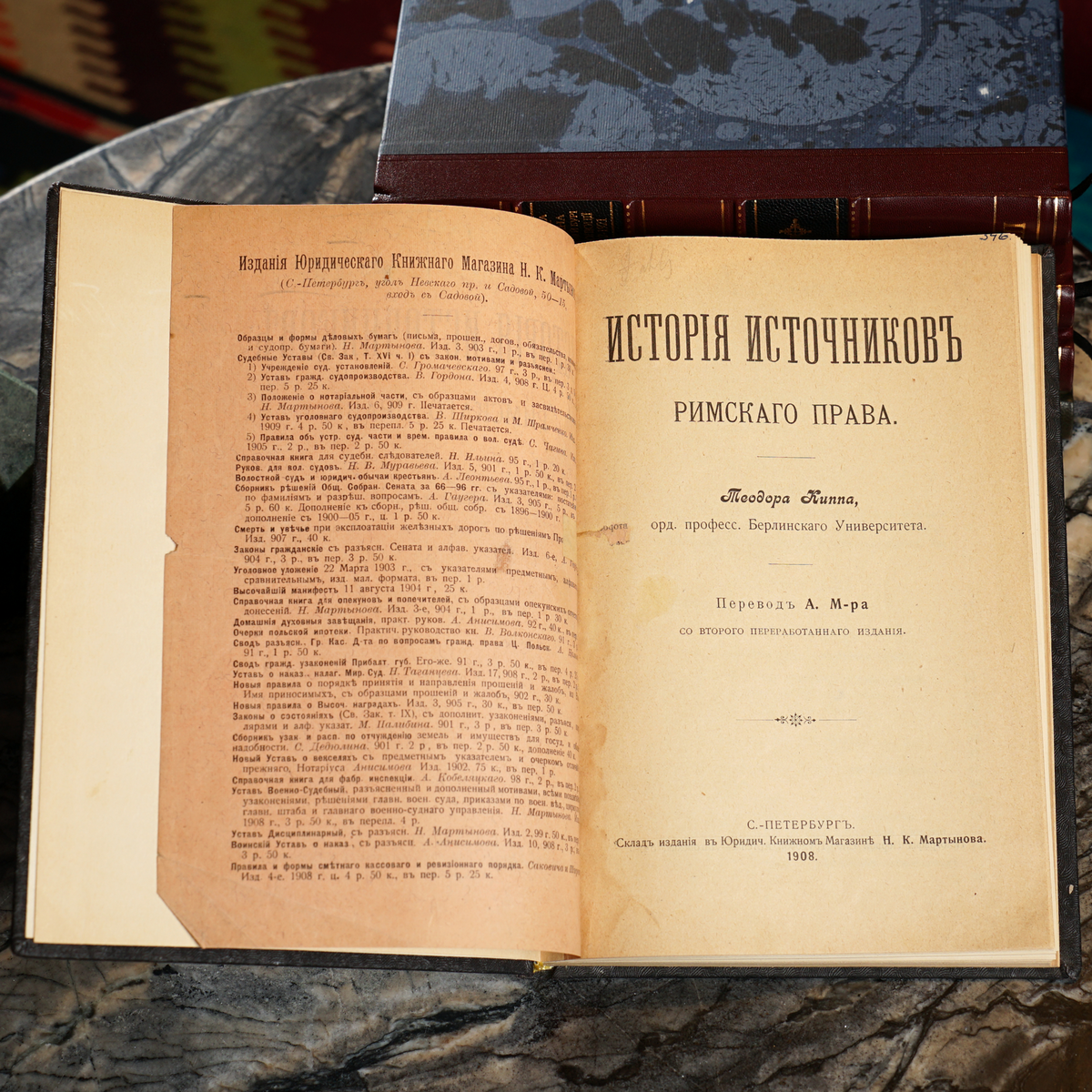 Антикварная книга "Исторія источниковъ римскаго права", Луис Теодор Кипп, Юридич. Книжный Магазин Н.К. Мартынова, Санкт-Петербург, 1908 год