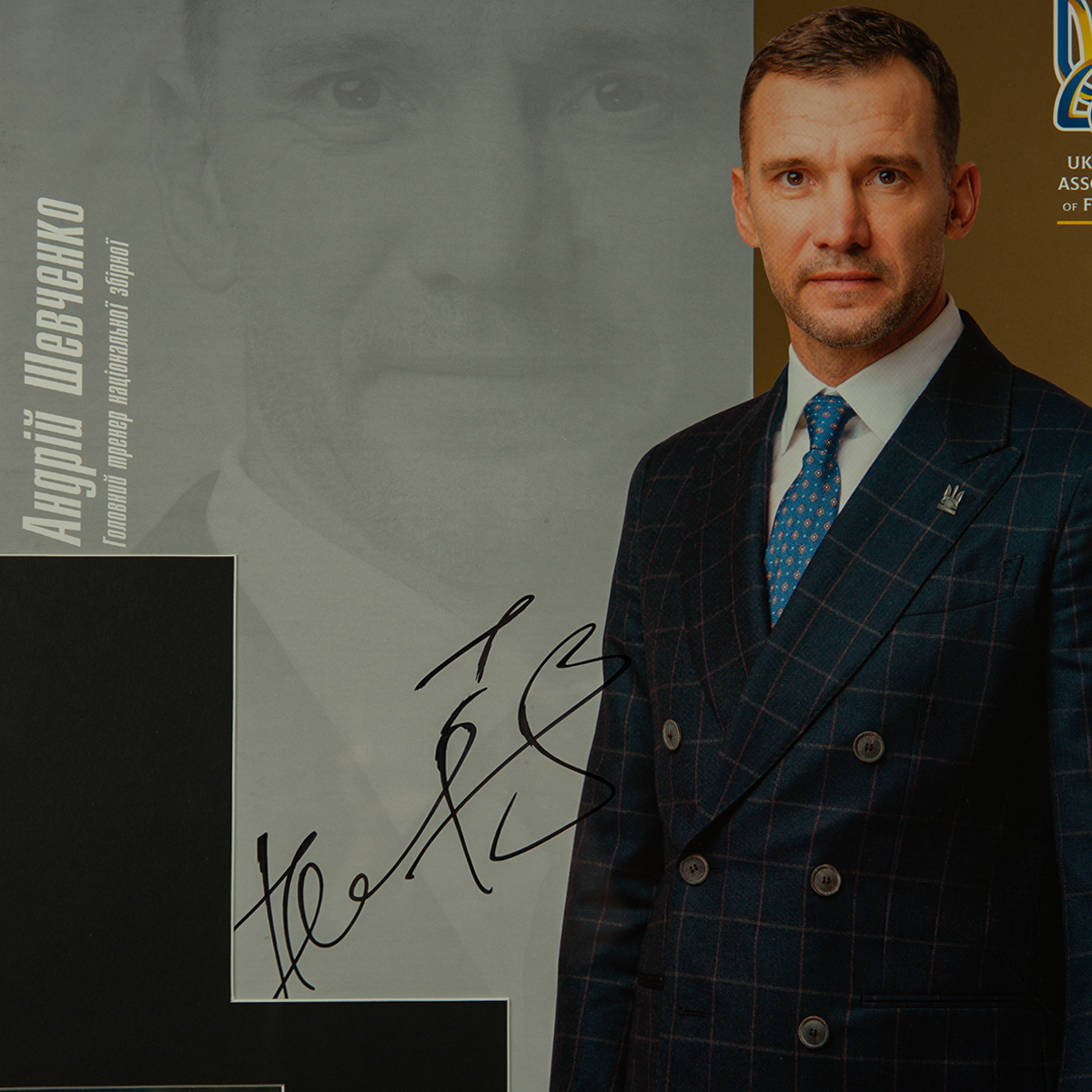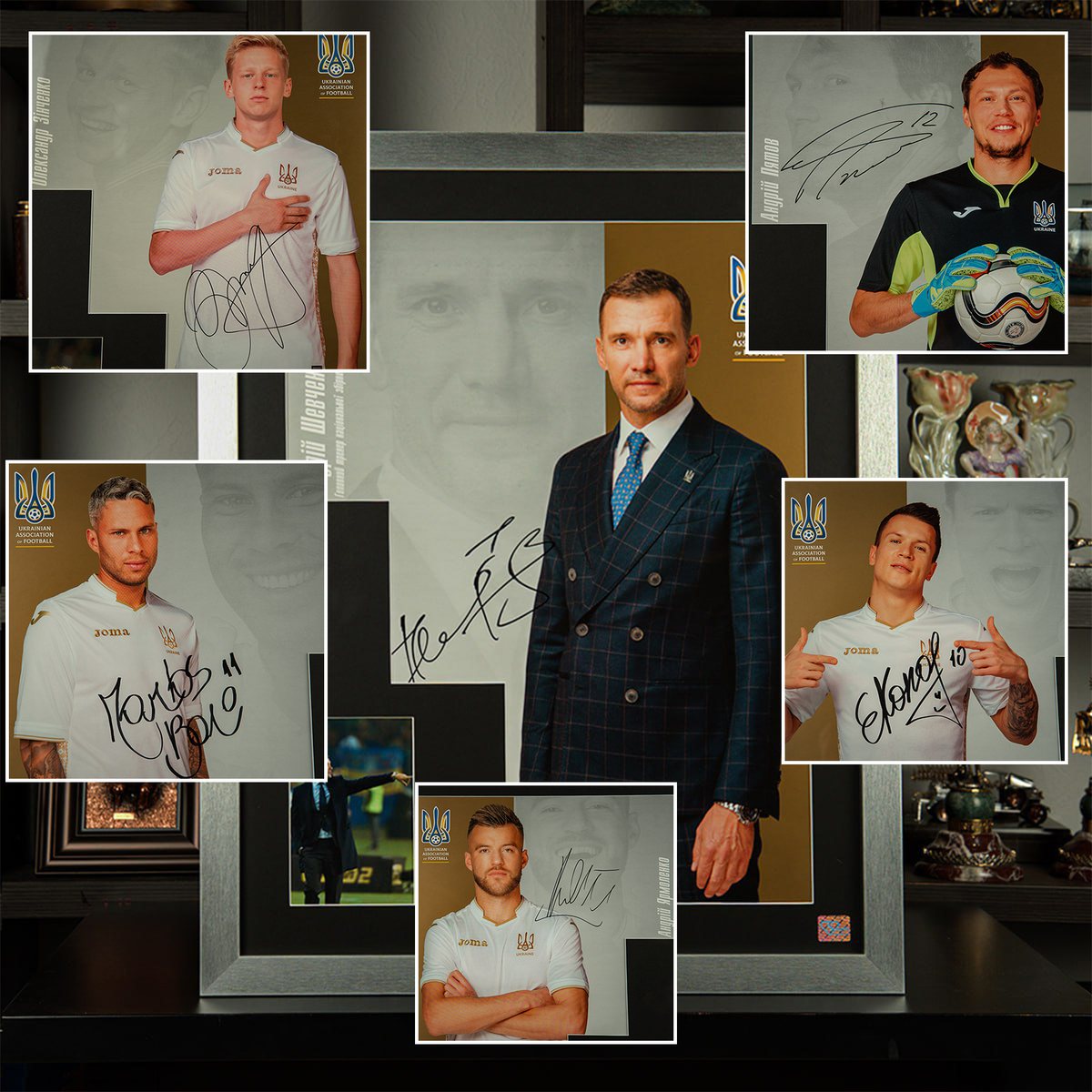 Автографы игроков сборной Украины по футболу с тренером Андреем Шевченко из собственной коллекции коллекционера Николая Оскомы