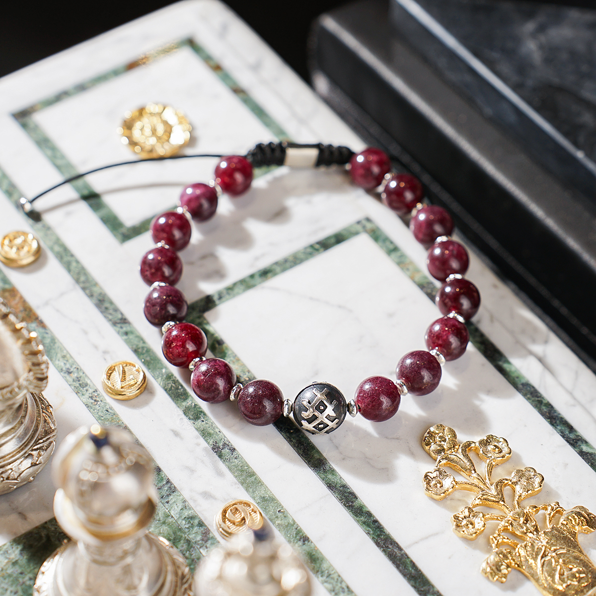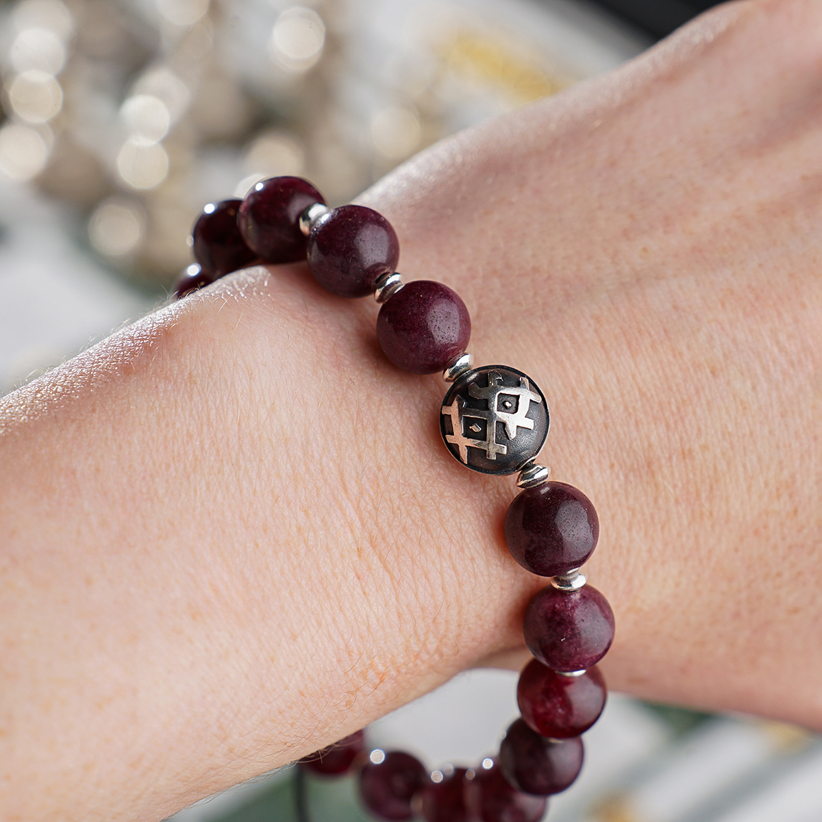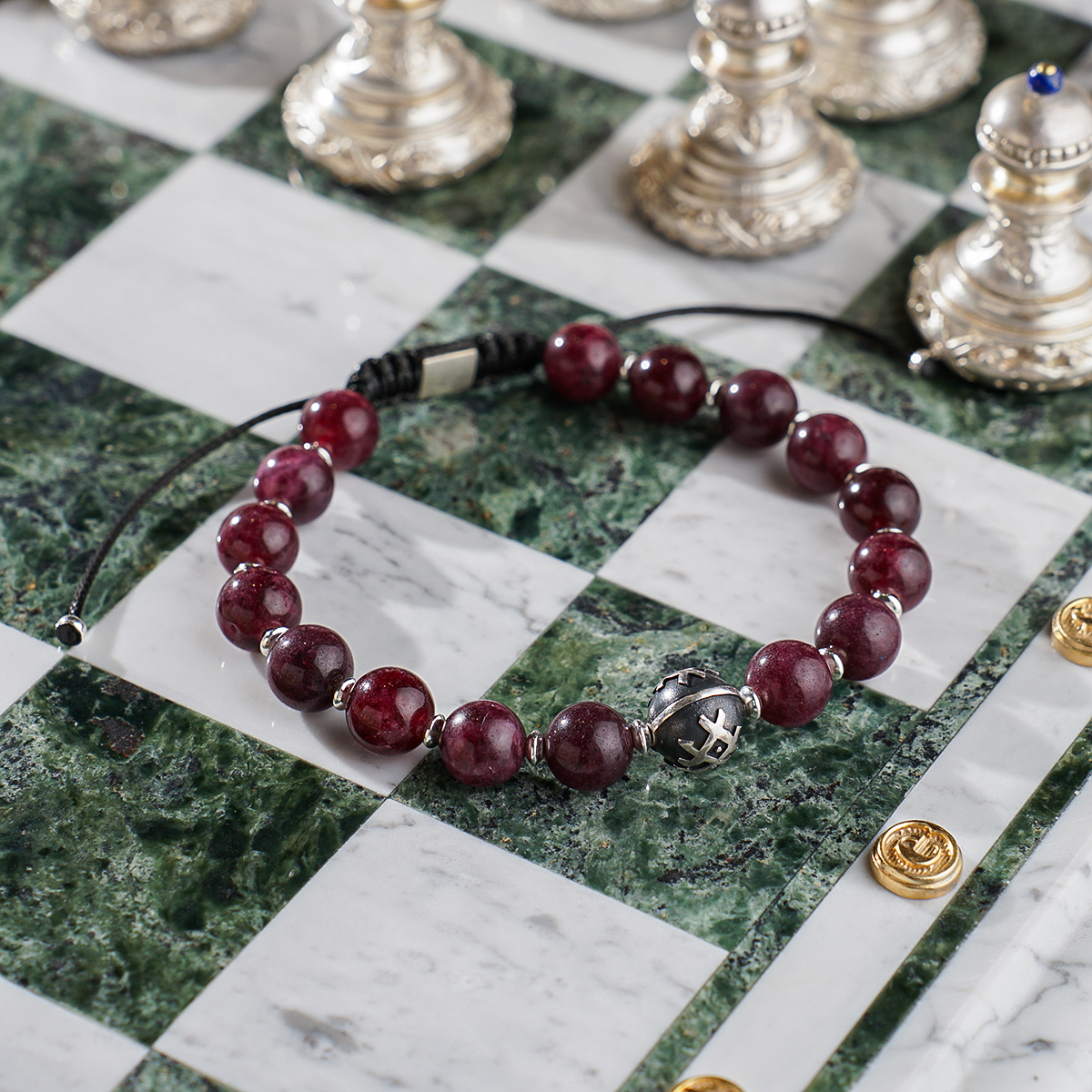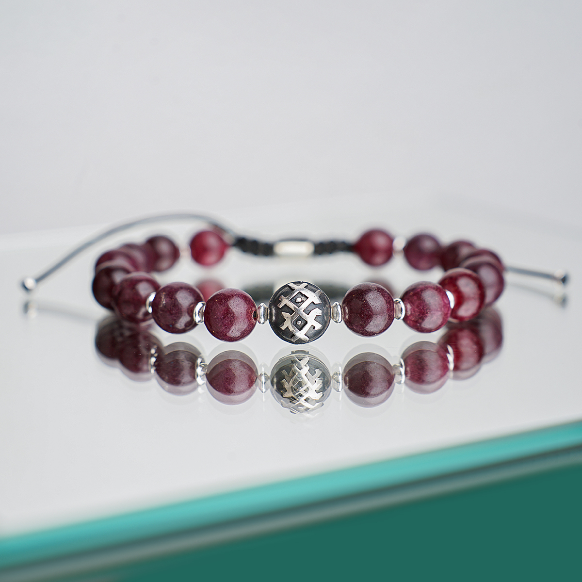 Браслет "Garnet" из граната и серебряной бусиной 925 пробы