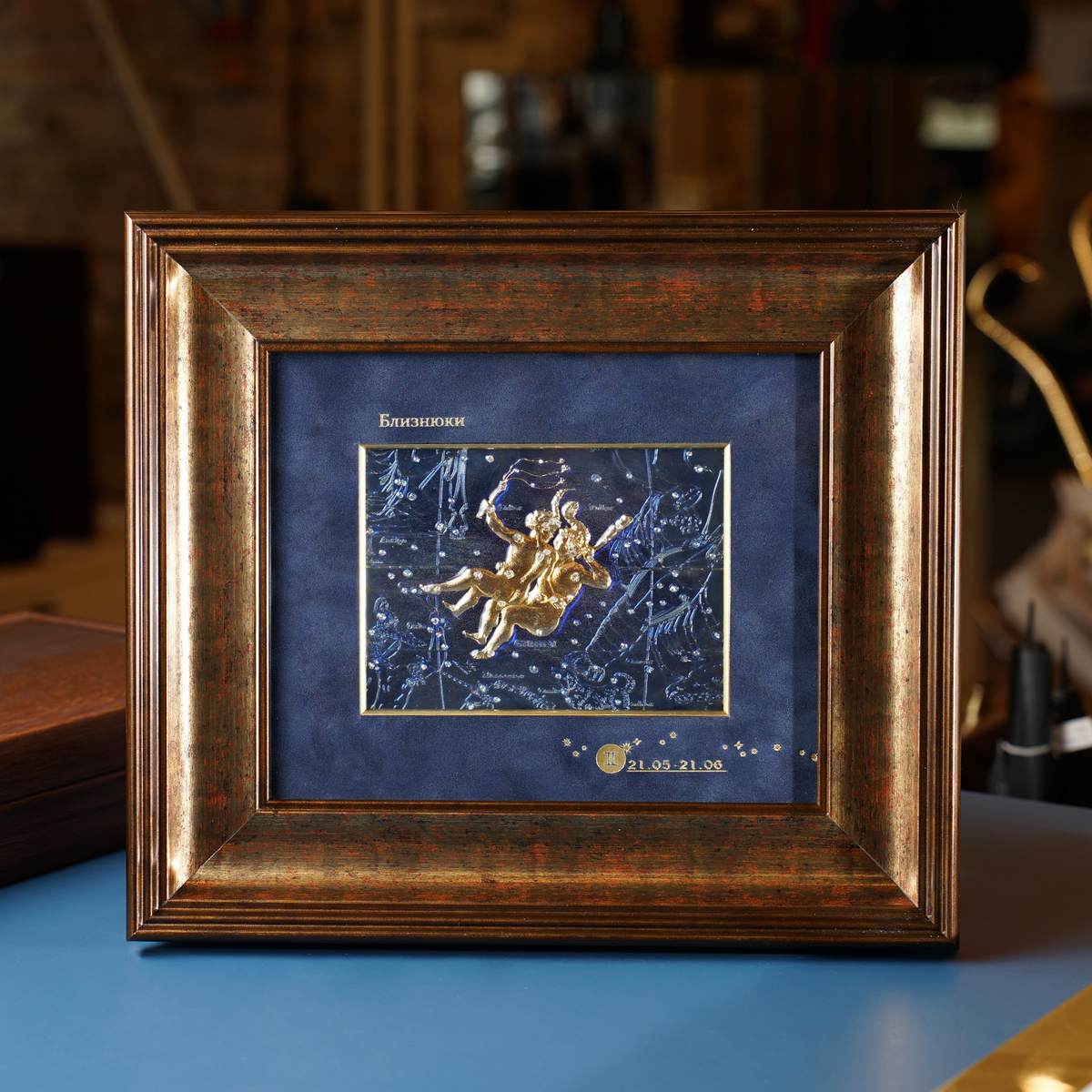 Декоративная картина "Знак зодиака Близнецы" (медь, позолота, эмали)