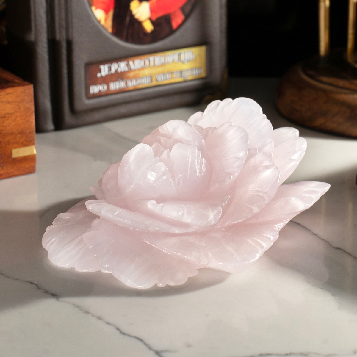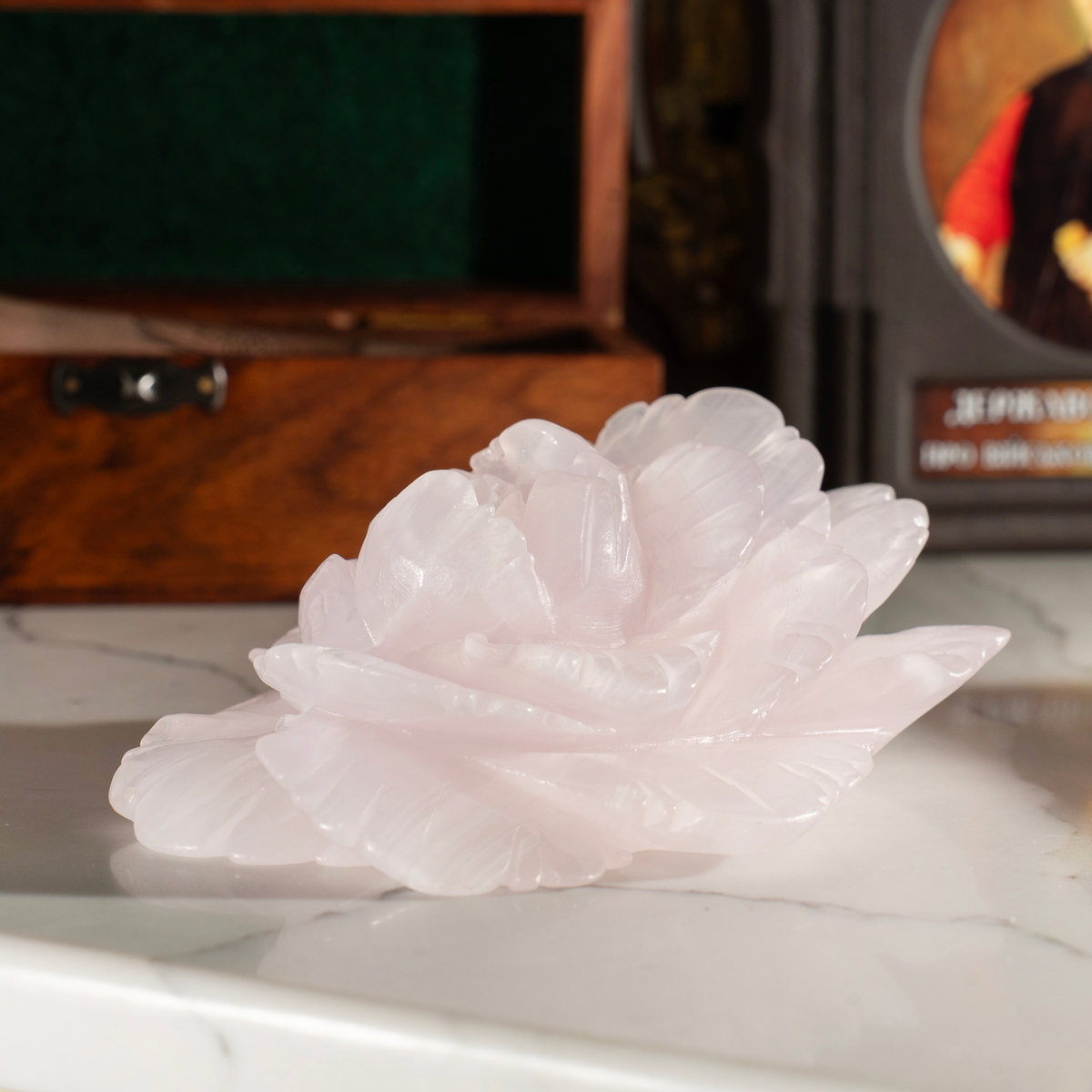 Декоративный кристалл розового кварца "Пион" от Stone Art Design (730 г)