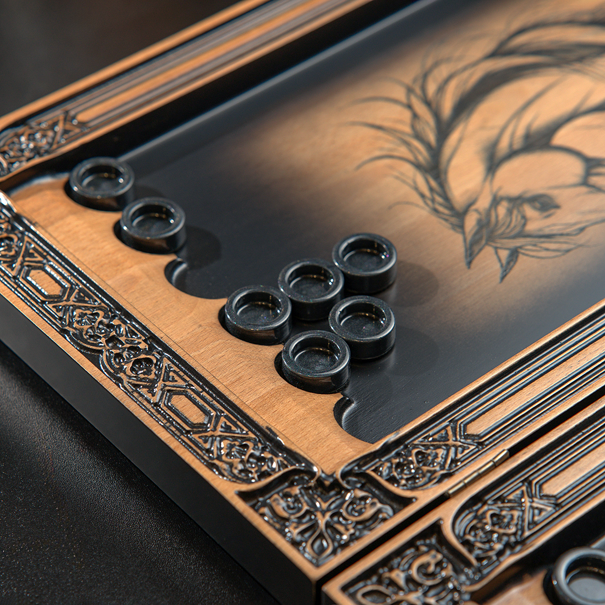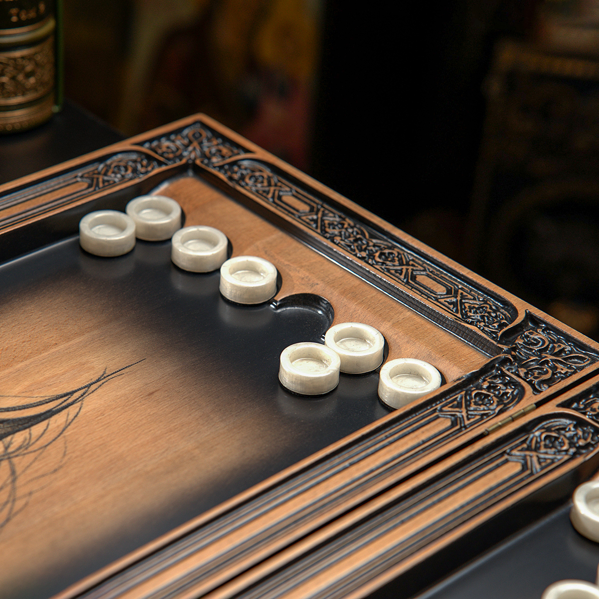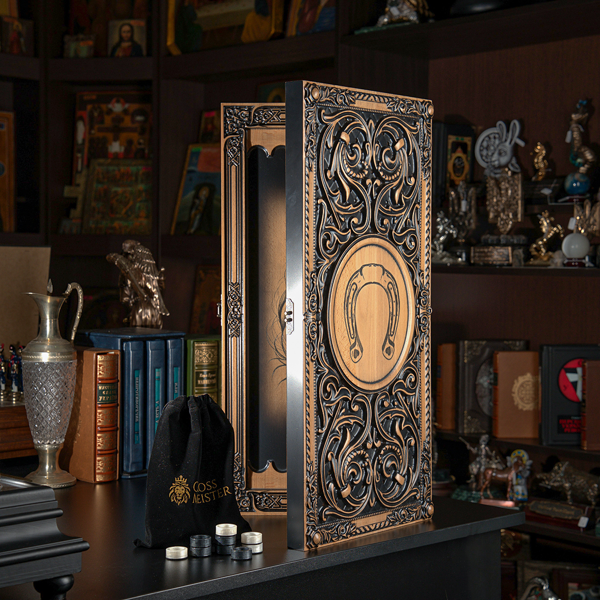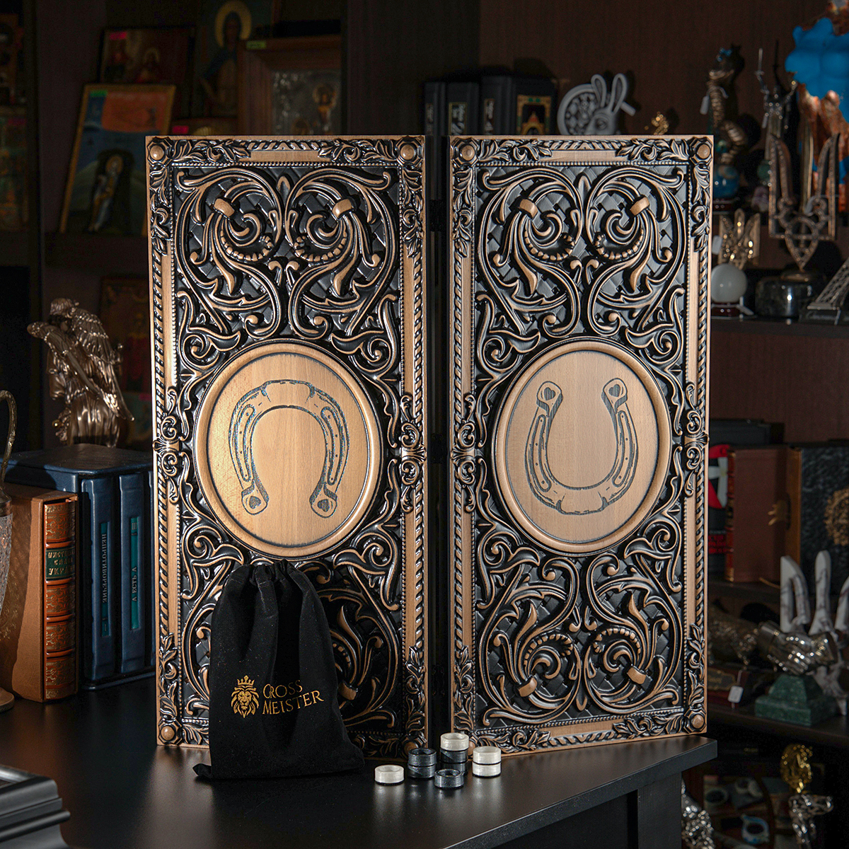 Деревянные нарды "Лошадь и Подковка на Удачу" ручной работы (60х28 см)