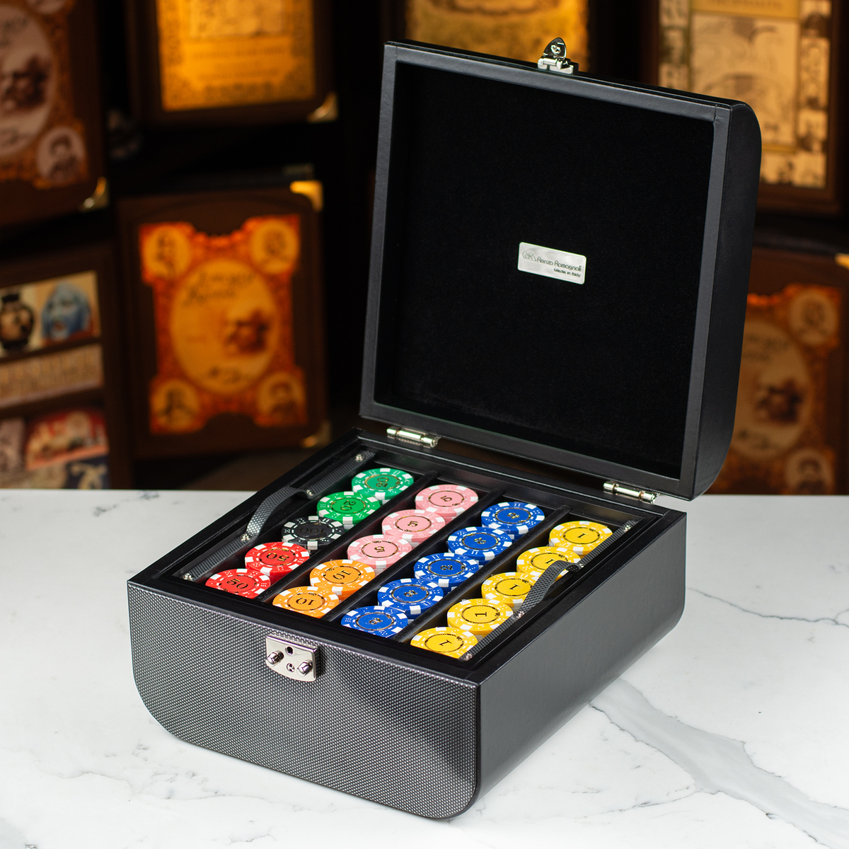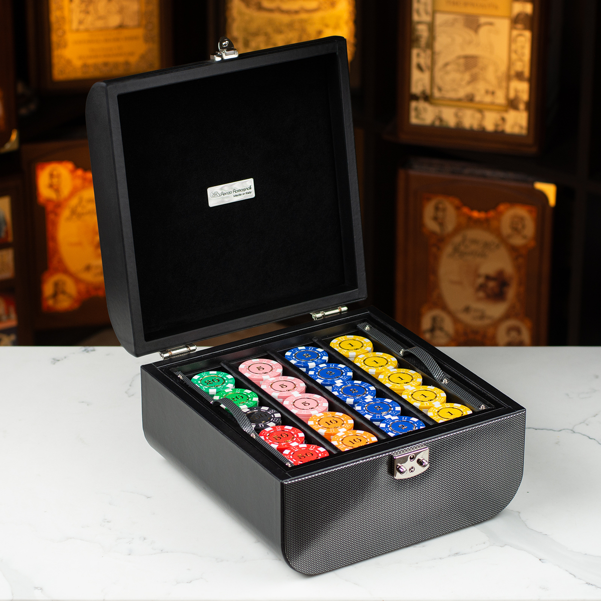 Дизайнерский набор для покера с натуральной кожи в футляре от Renzo Romagnoli