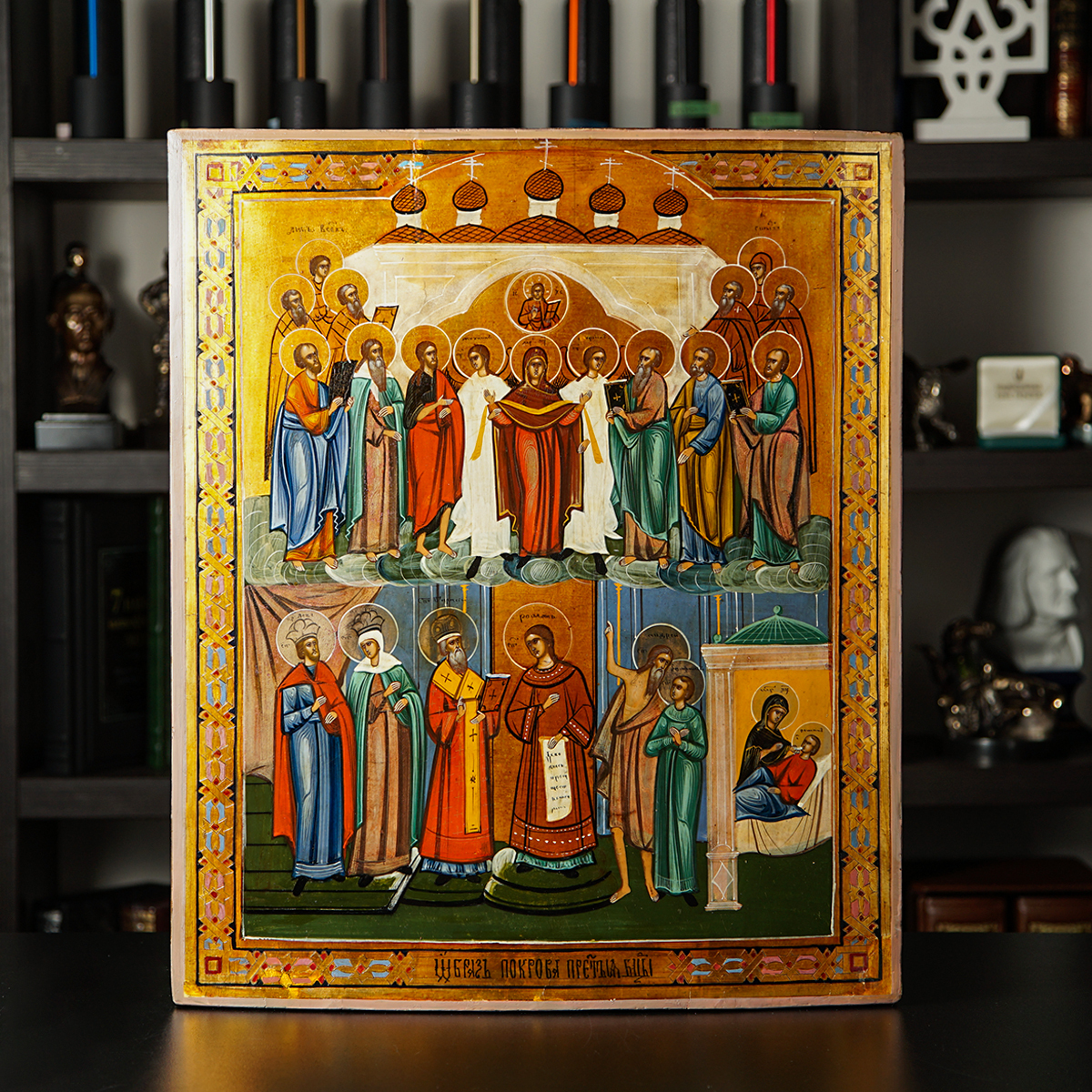 Старинная икона Покрова Пресвятой Богородицы последней четверти 19 века, Центральная Украина