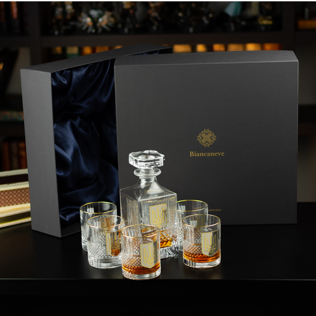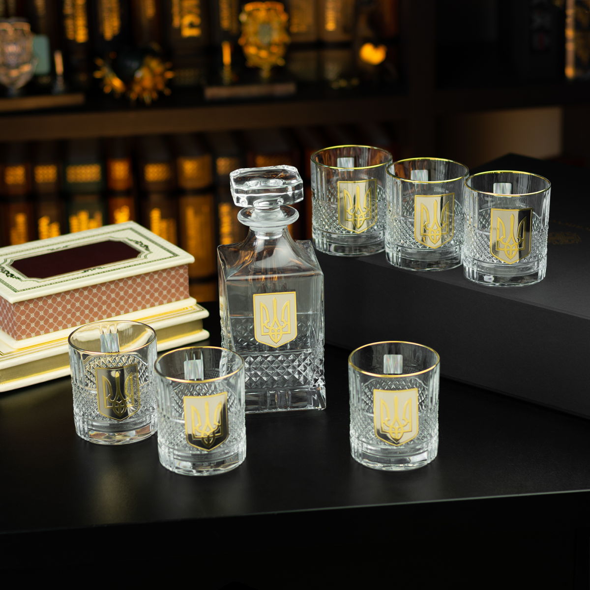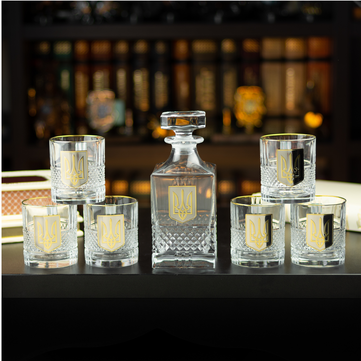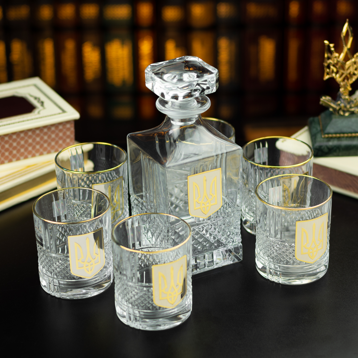 Хрустальный графин и 6 стаканов для виски и воды из серии "Символы Украины" от BIANCANEVE