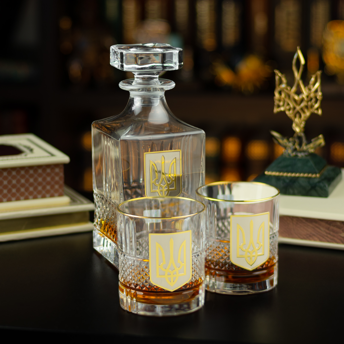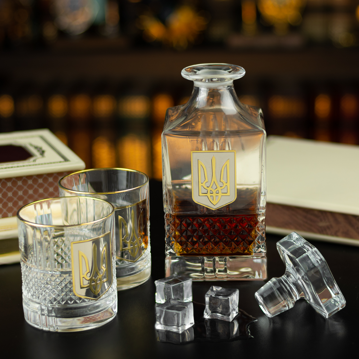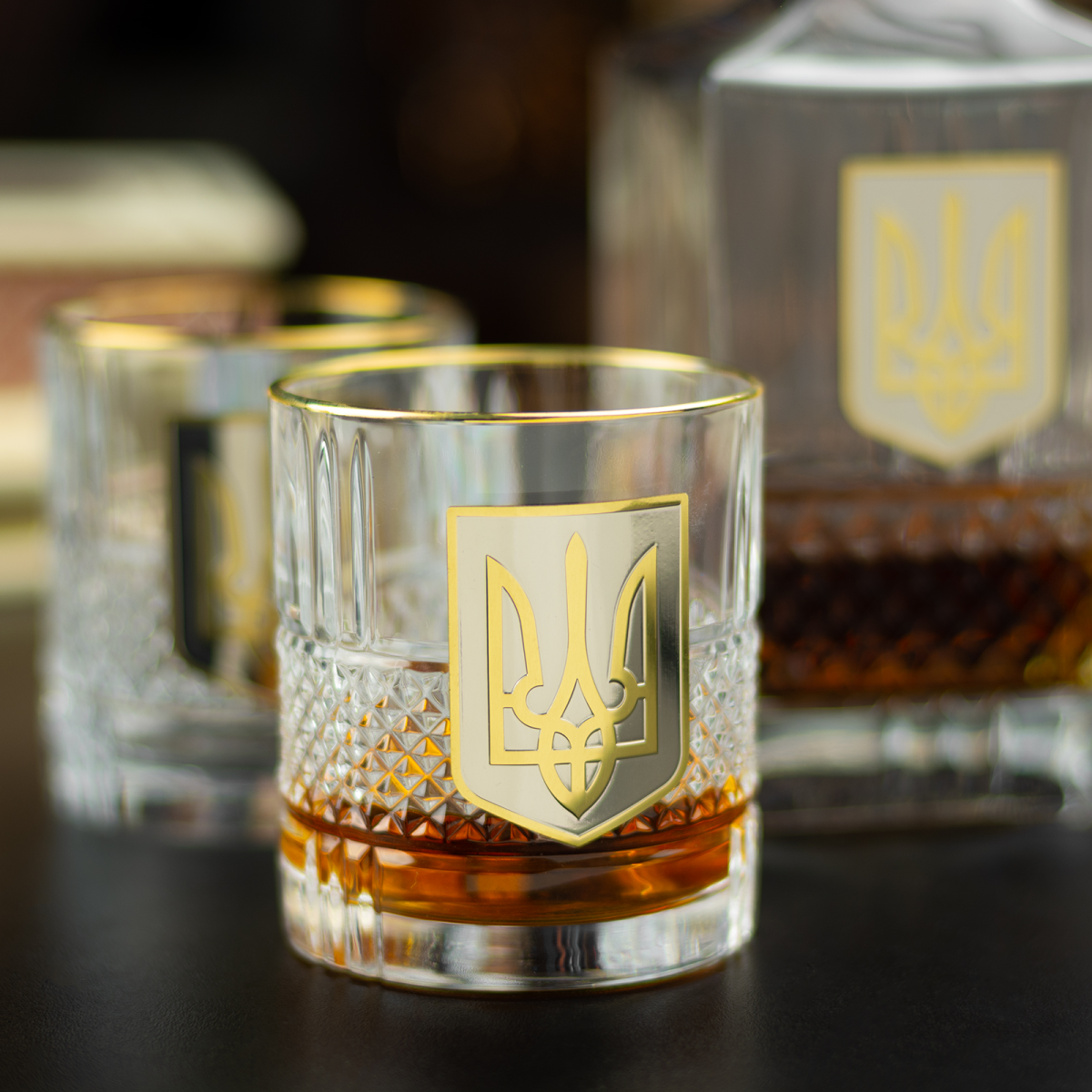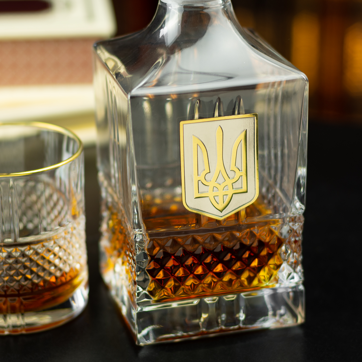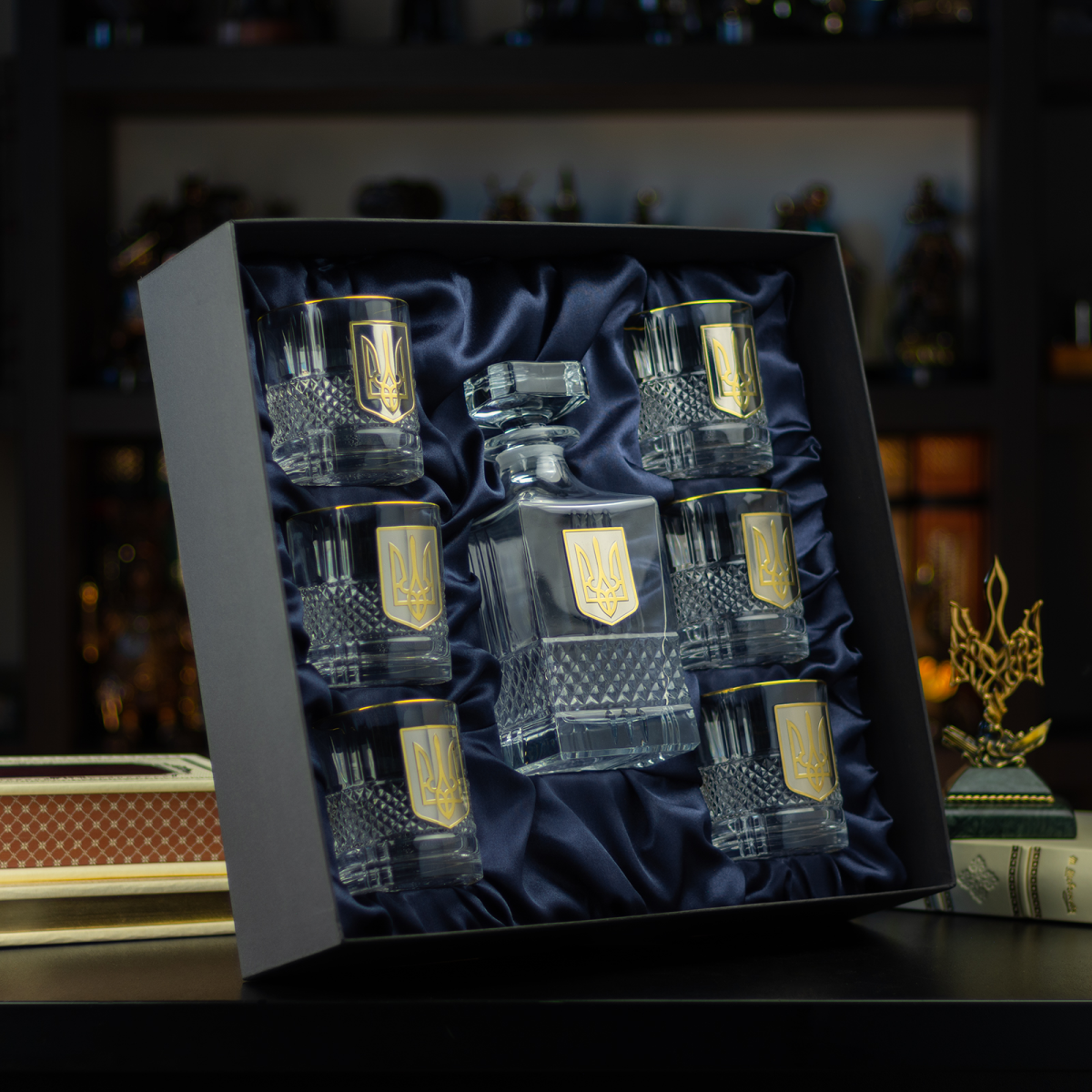 Хрустальный графин и 6 стаканов для виски и воды из серии "Символы Украины" от BIANCANEVE