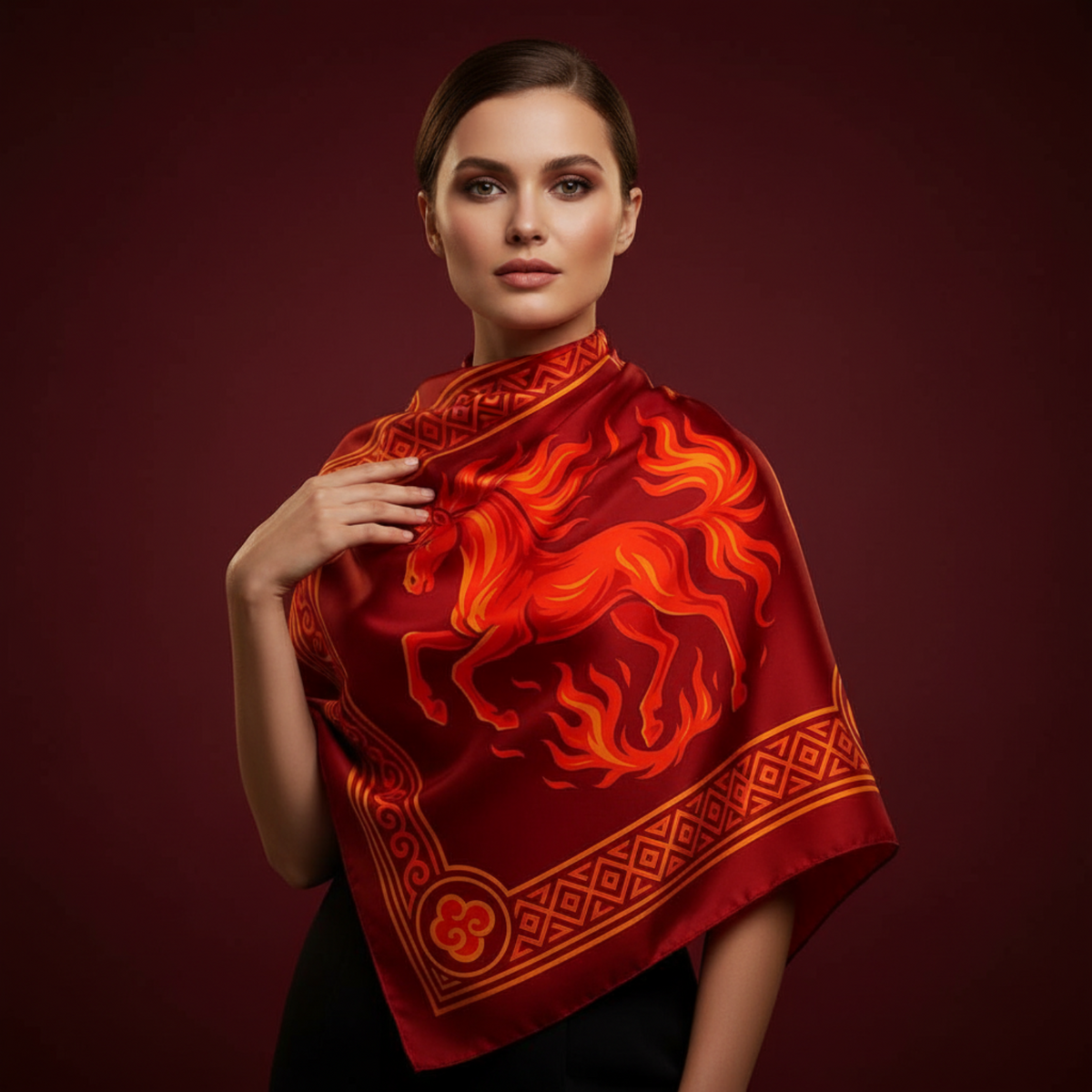 Платок из натурального шелка "Год коня" от Fama (лимитированная коллекция, 65х65 см)