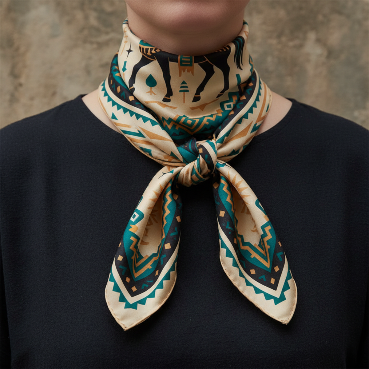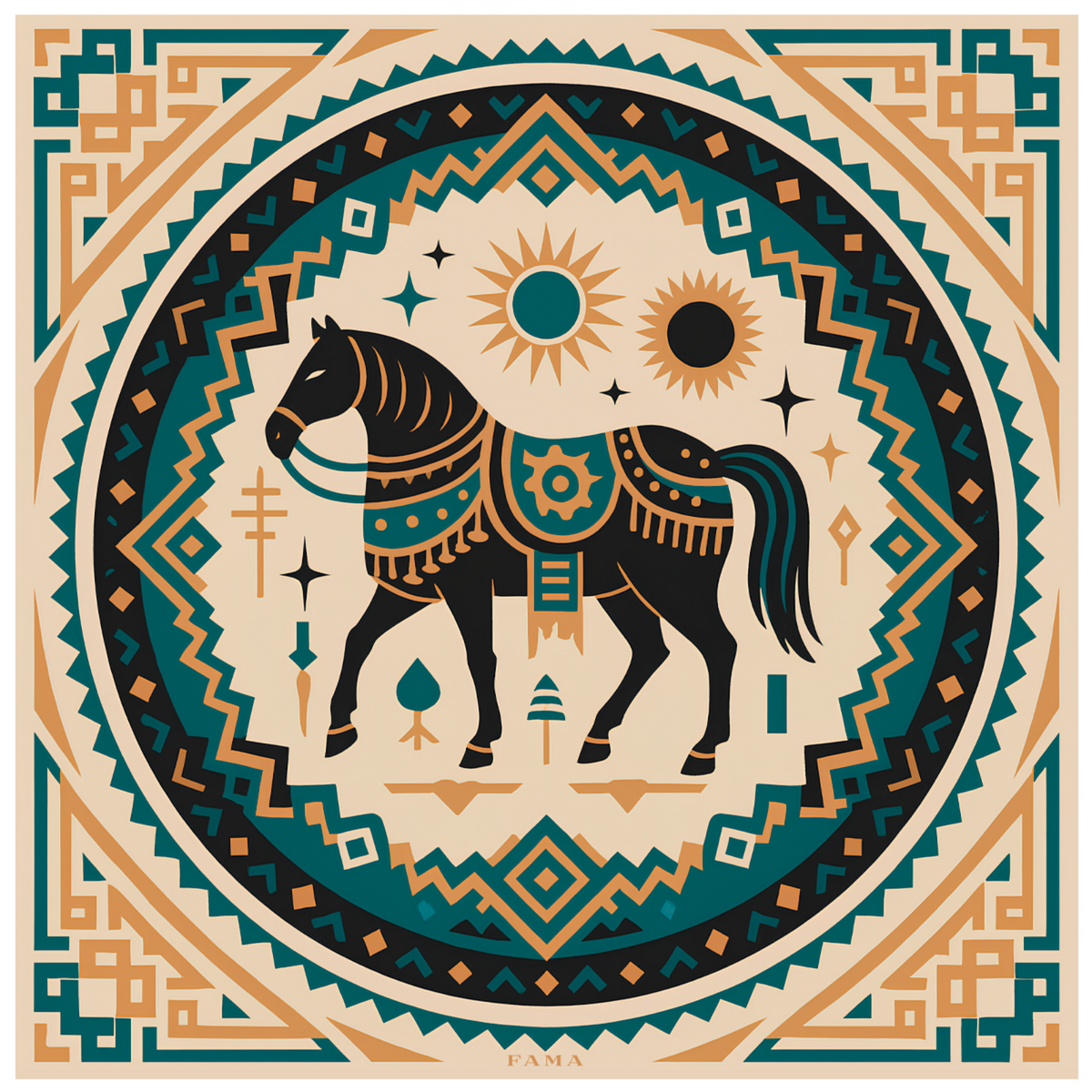 Шелковый платок "Степной конь" от Fama (лимитированная коллекция, 65х65 см)