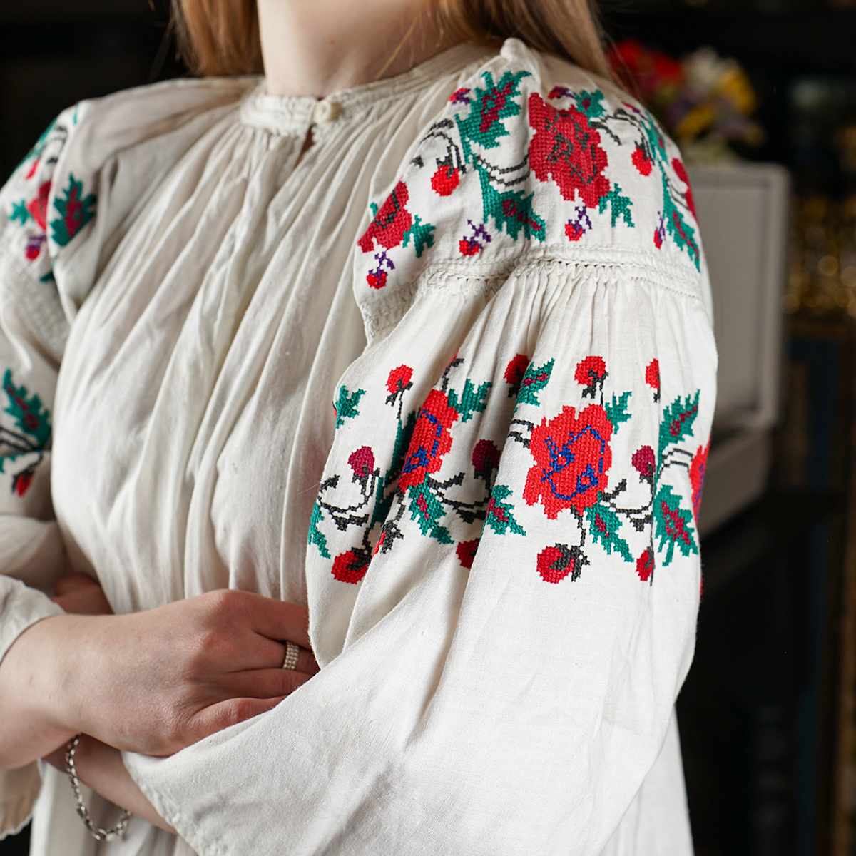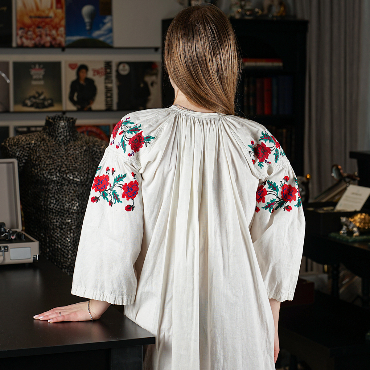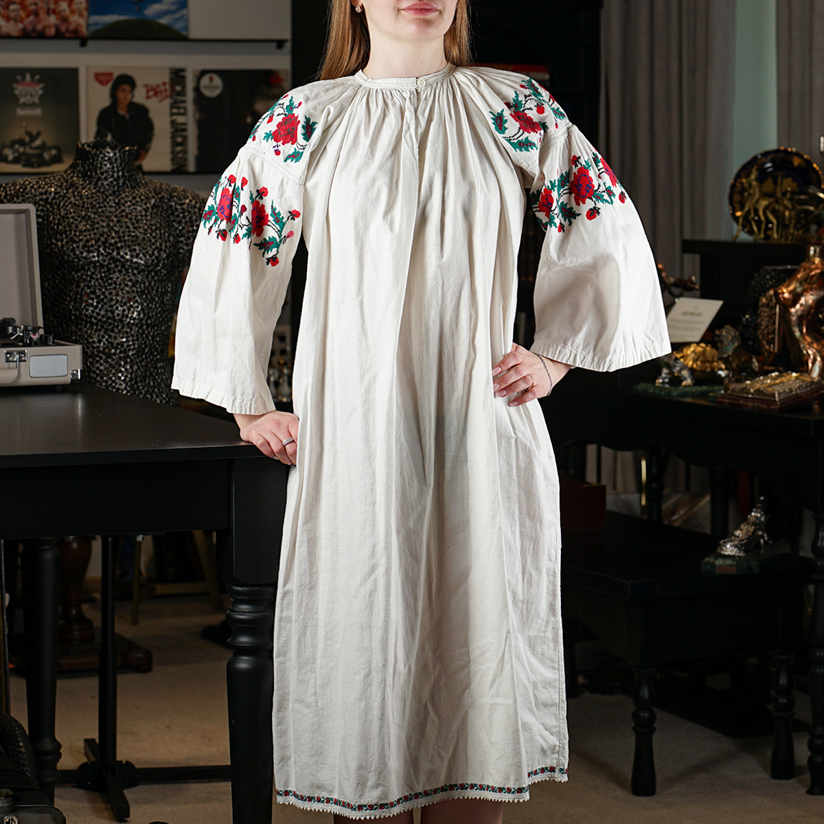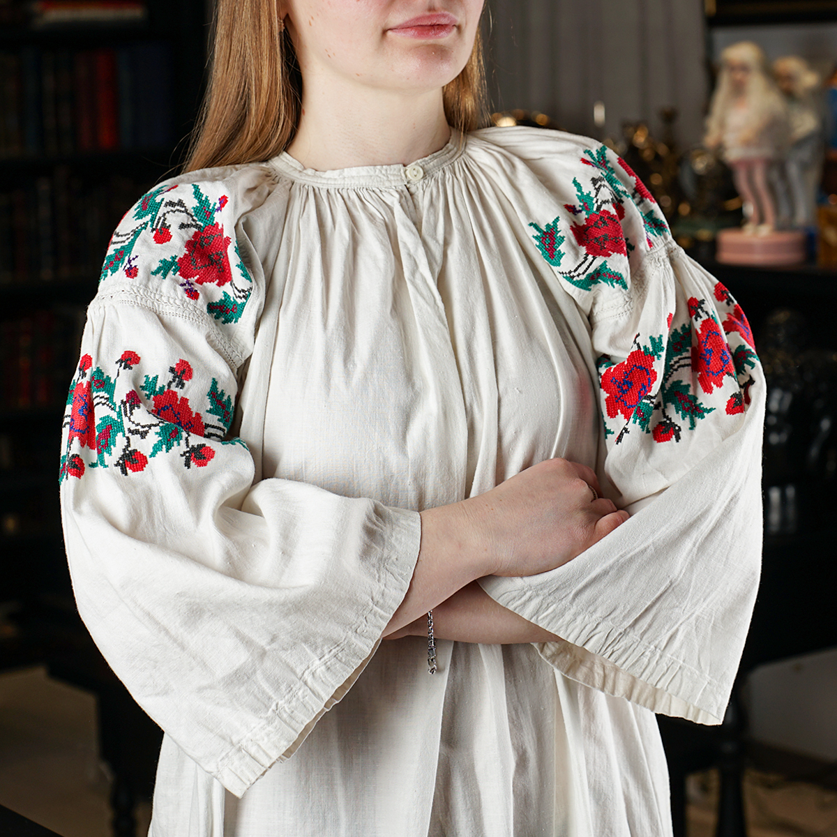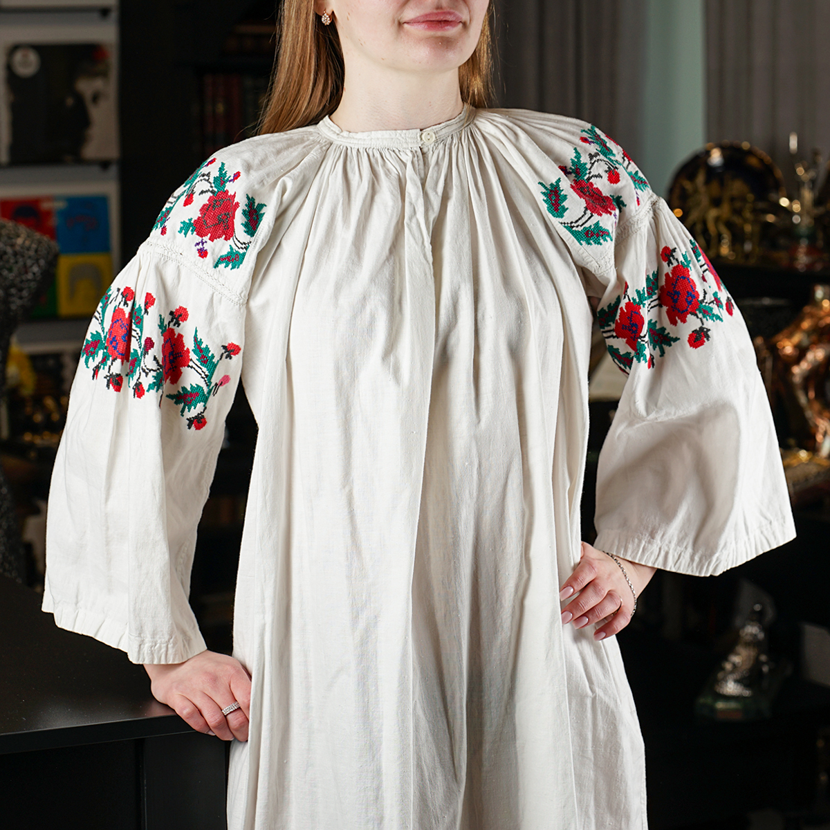 Коленкоровая женская сорочка на фабричном белоснежном полотне, Сумщина, середина 20 века