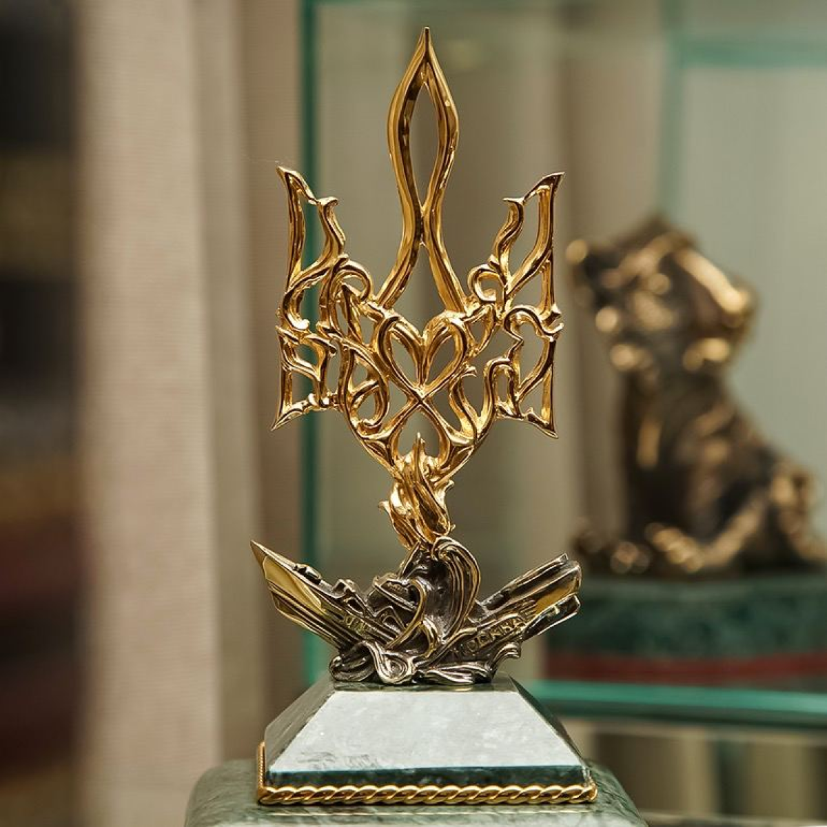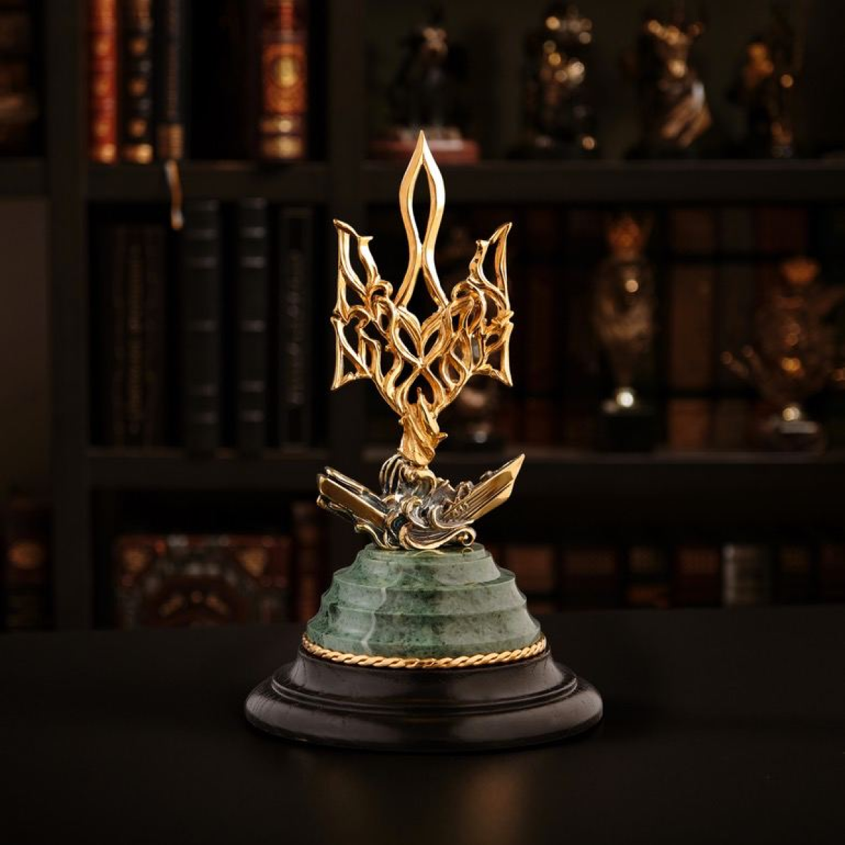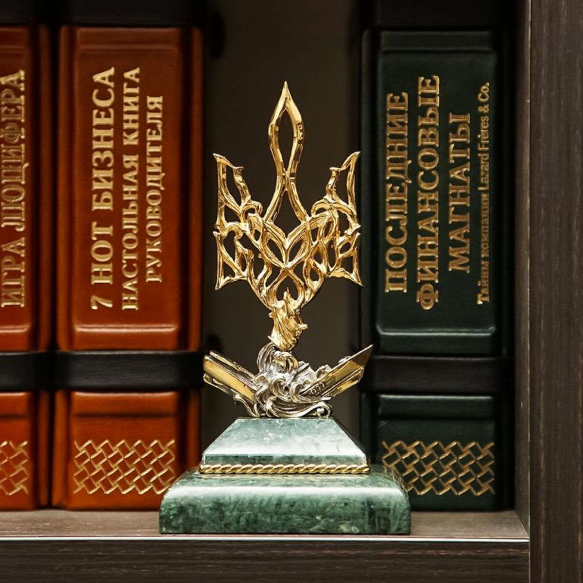 Комплект из авторской статуэтки Герб Украины Тризуб с позолотой и серебром и книги Роберта Грина «48 законов власти»