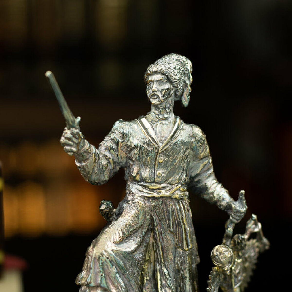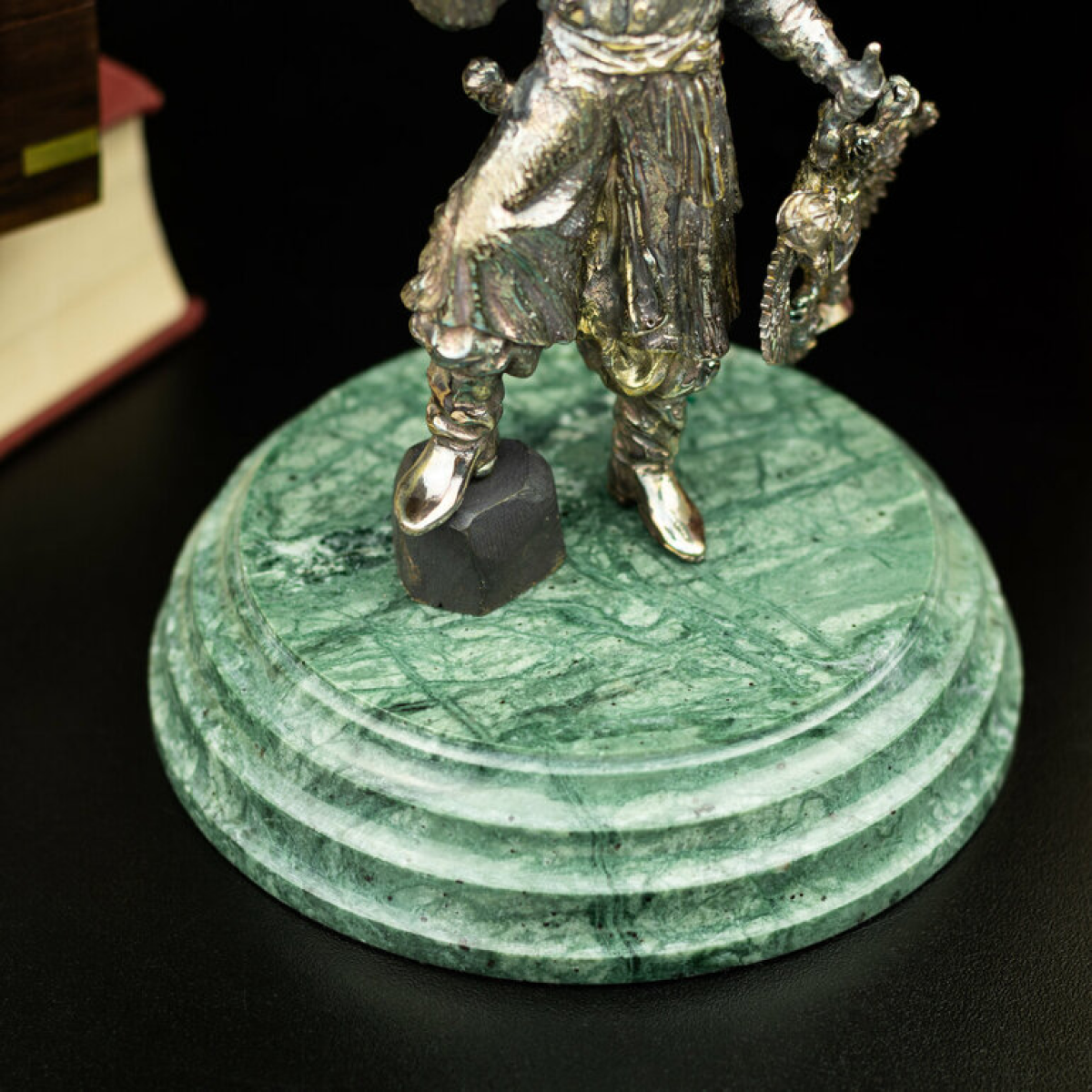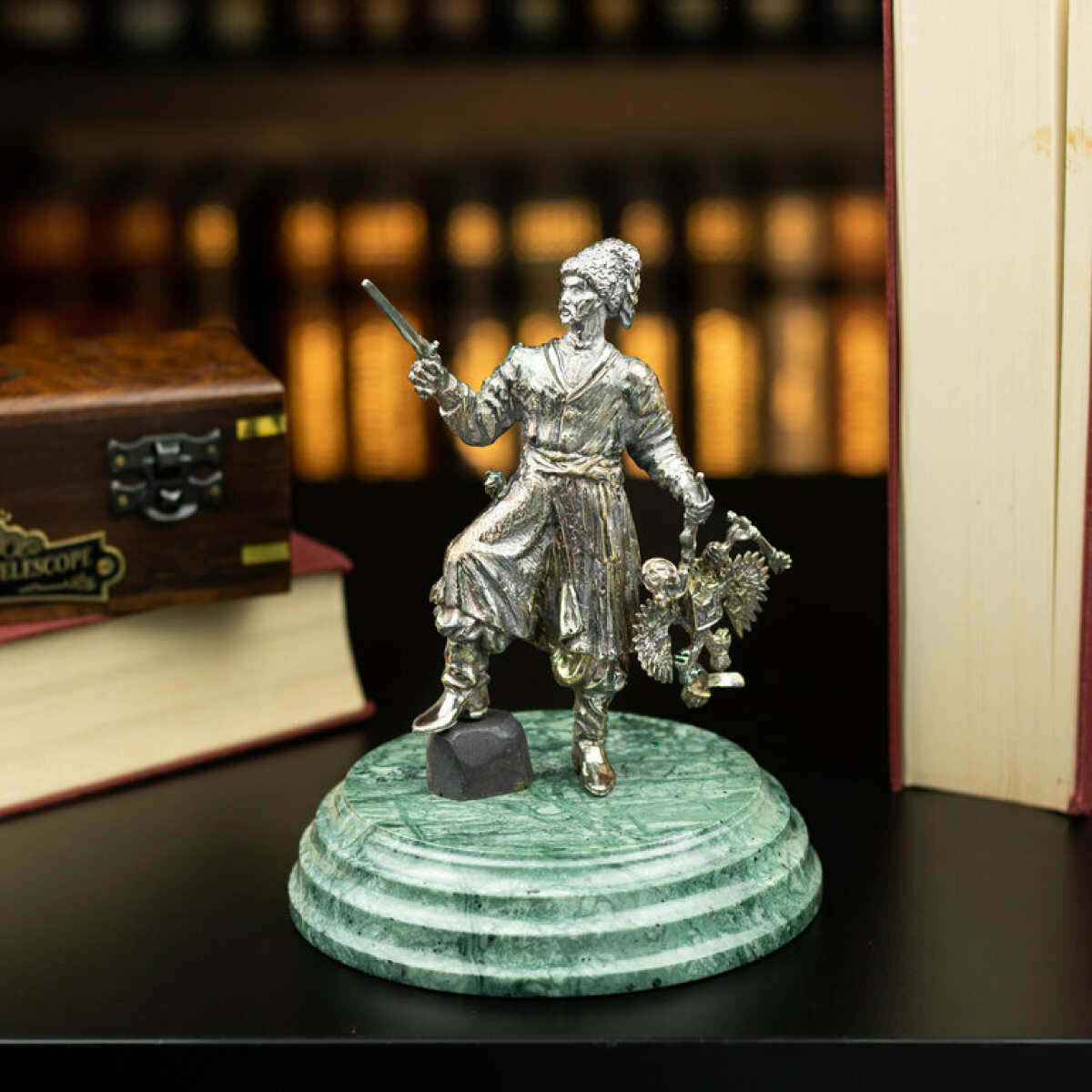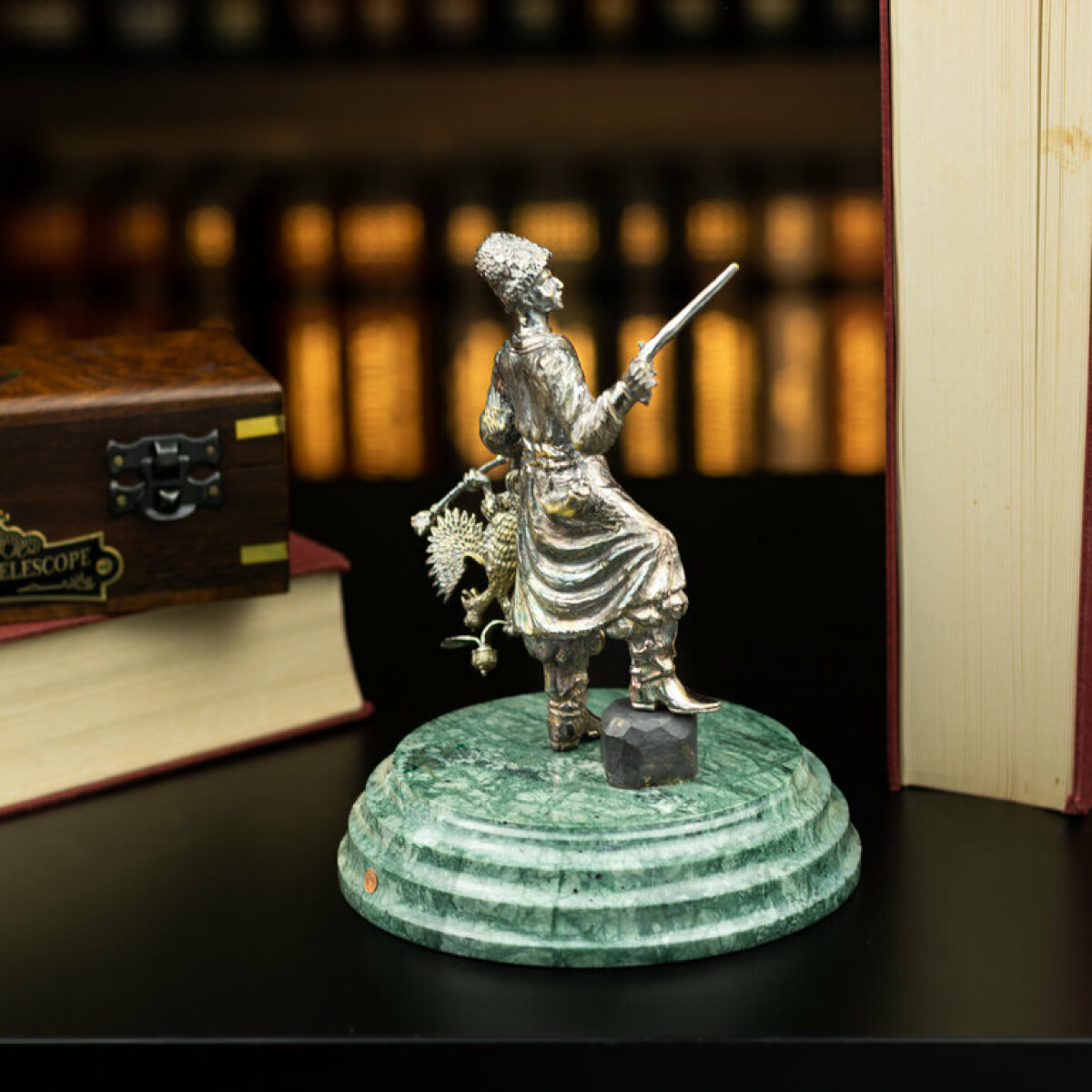 Комплект из статуэтки на мраморной подставке "Козак Освободитель" и авторской статуэтки Герб Украины Трезубец с позолотой и серебром