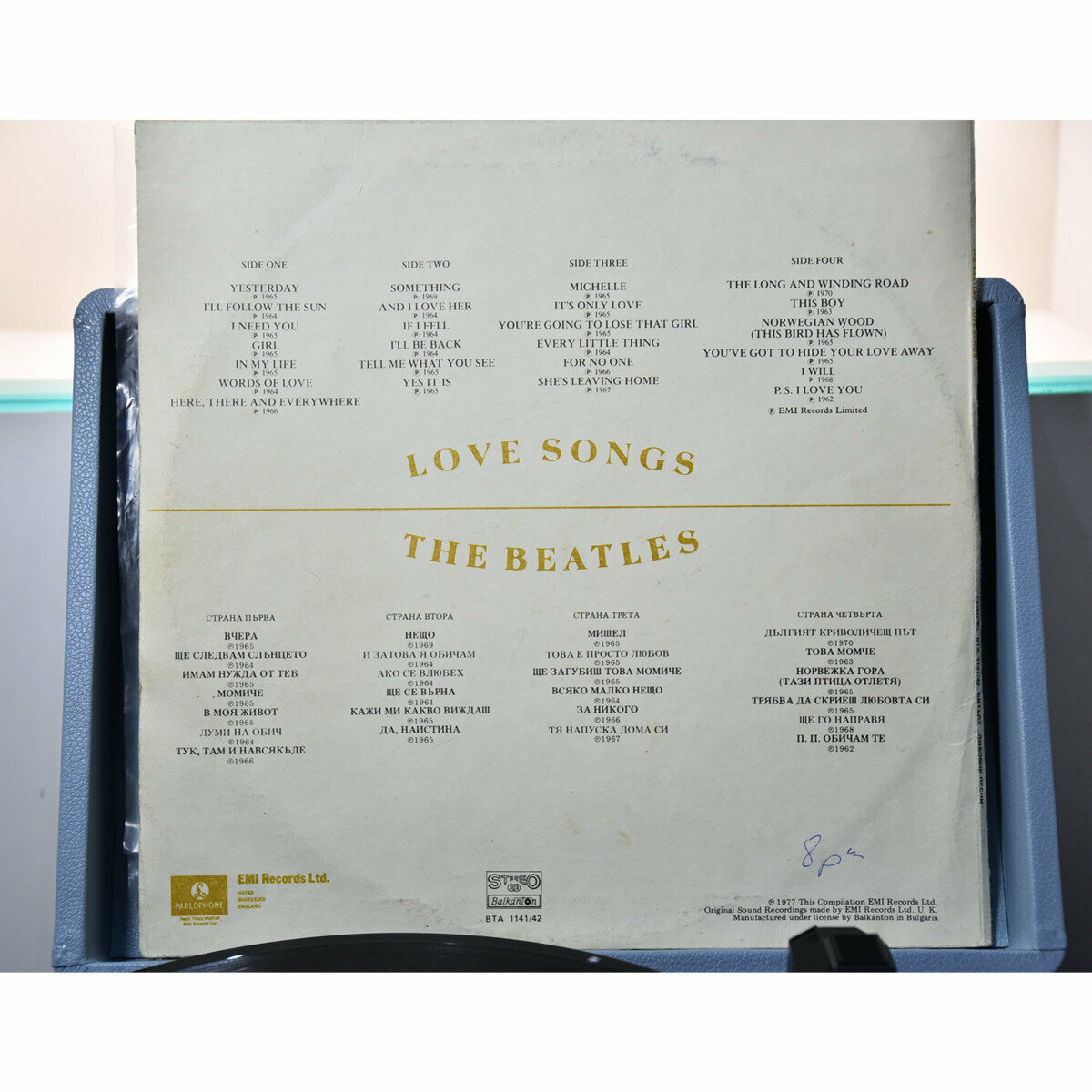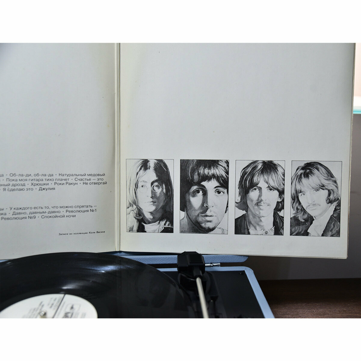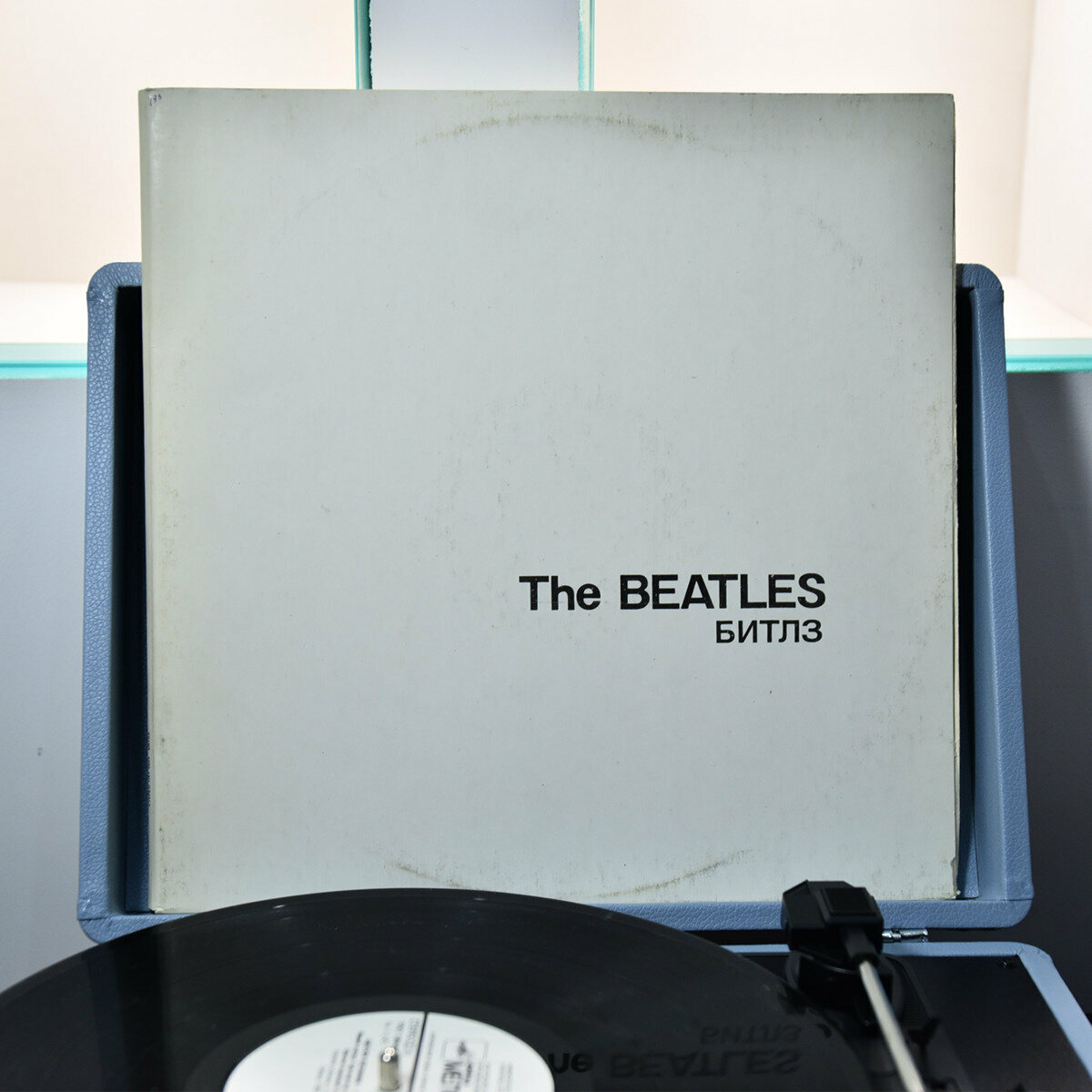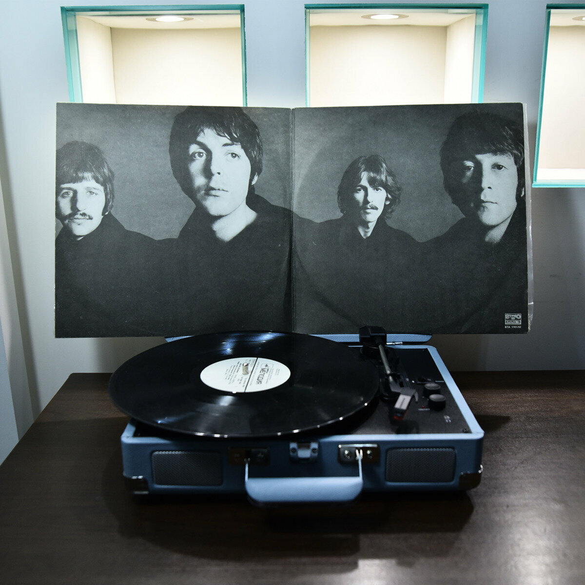 Комплект из портативного винилового проигрывателя “Beatles” от Crosley и виниловых пластинок The Beatles «Love Songs» (2 LP) и «Белый альбом» (2 LP) 1977 г.