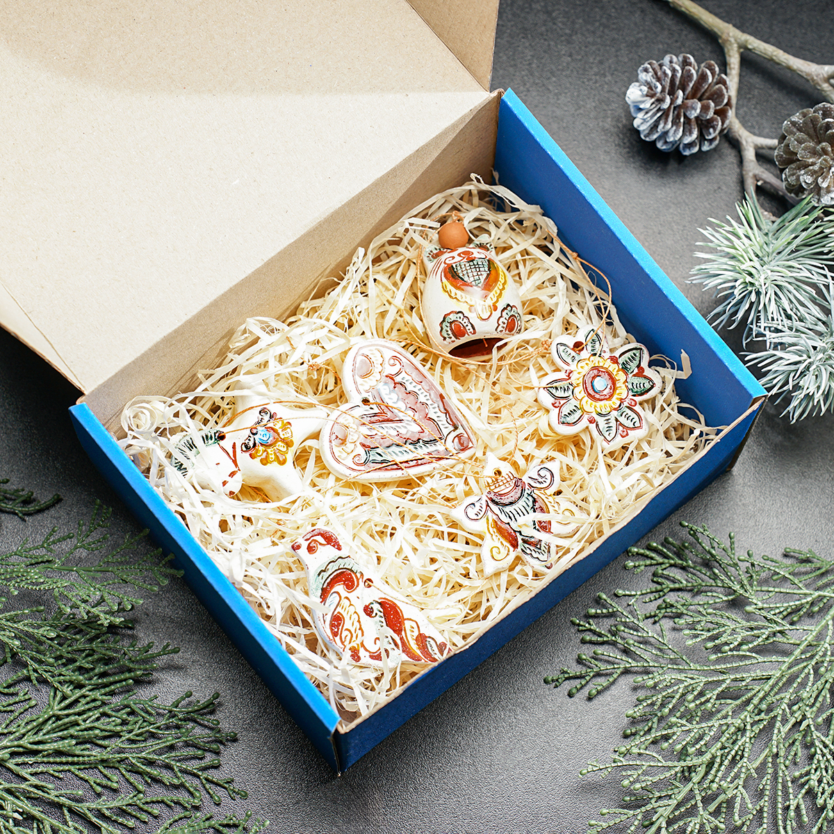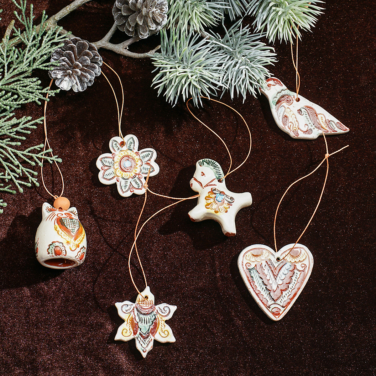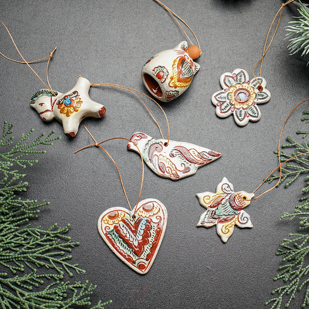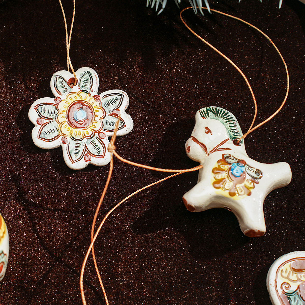 Комплект елочных игрушек "Детство" (6 шт.), Гуцульская керамика