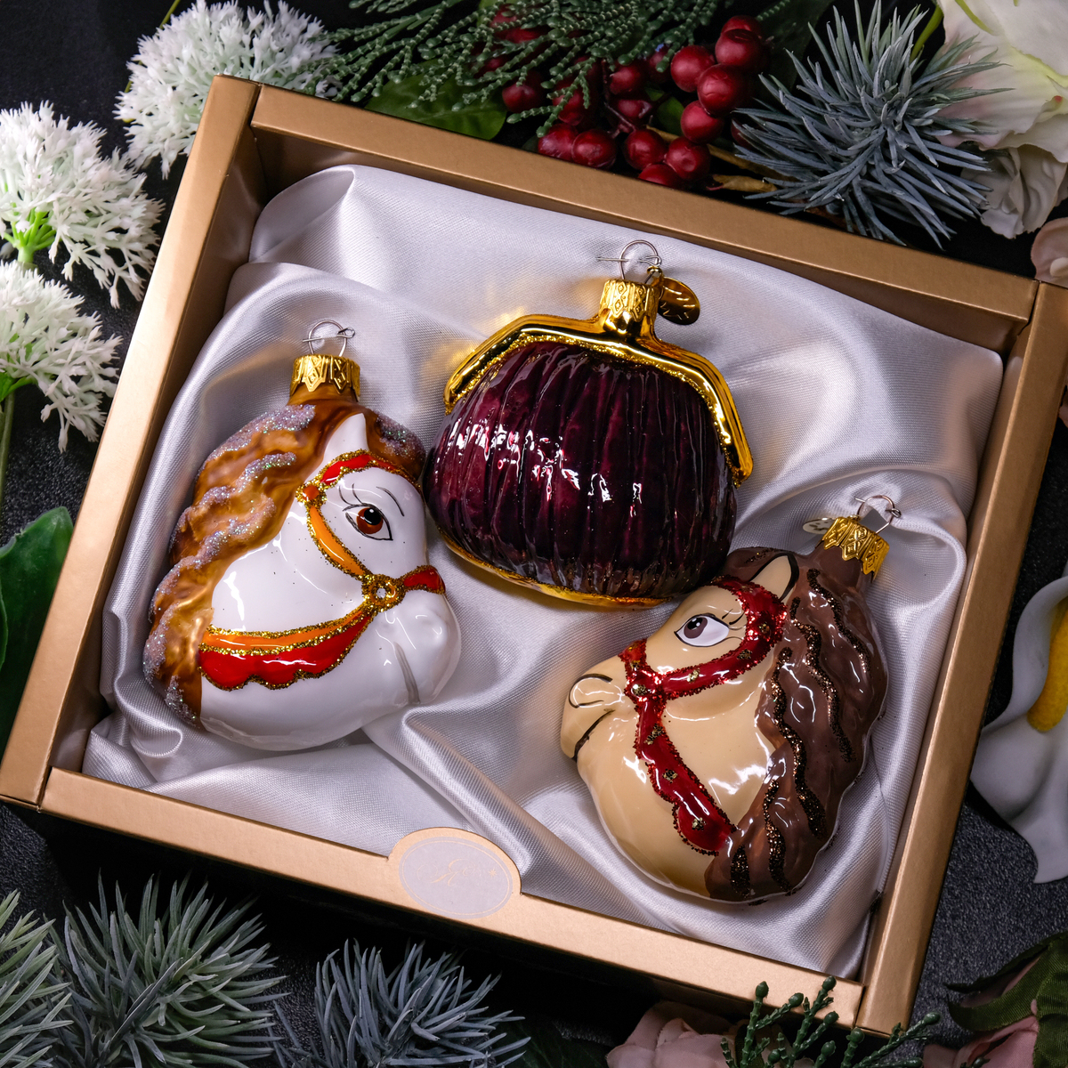 Комплект елочных игрушек "На удачу" (бордовый кошелек)