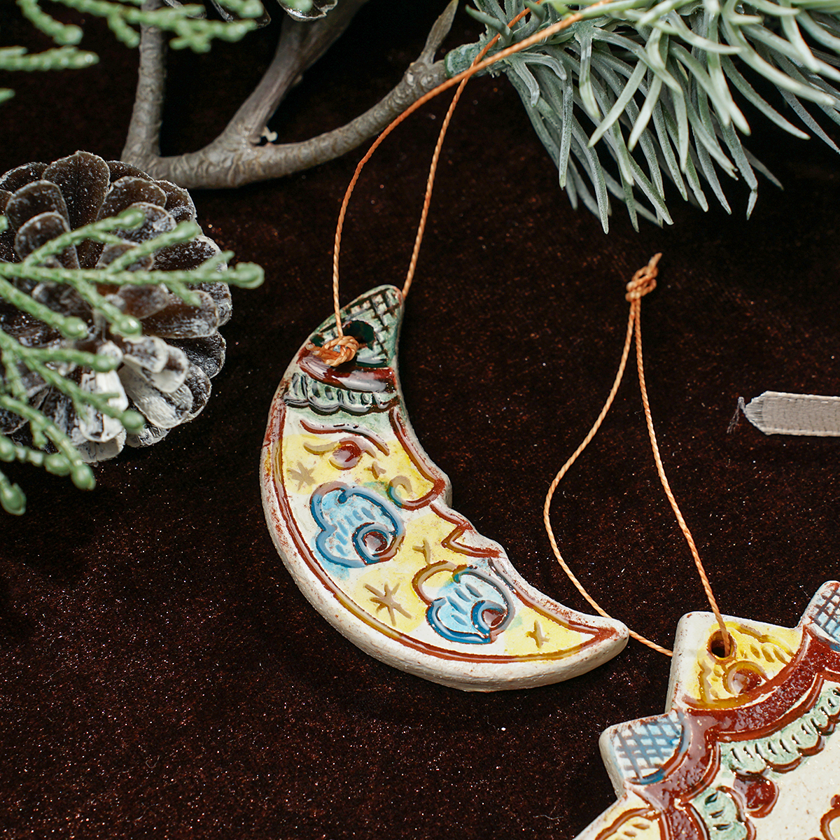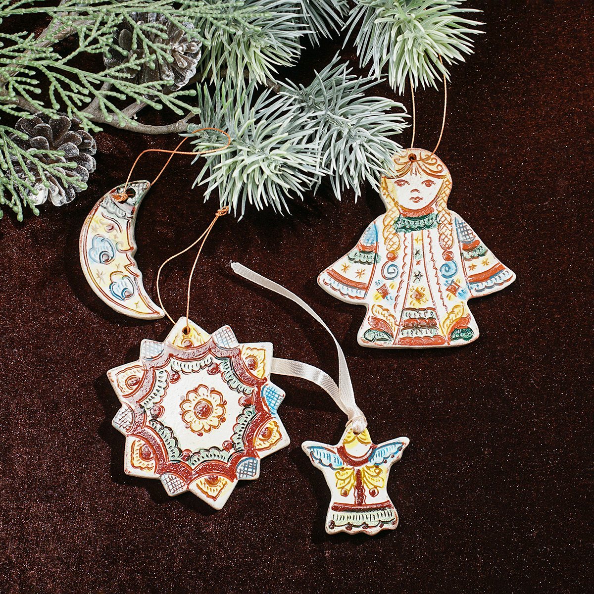 Комплект елочных игрушек "Первая звезда" (4 шт.), Гуцульская керамика, автор Иванна Козак