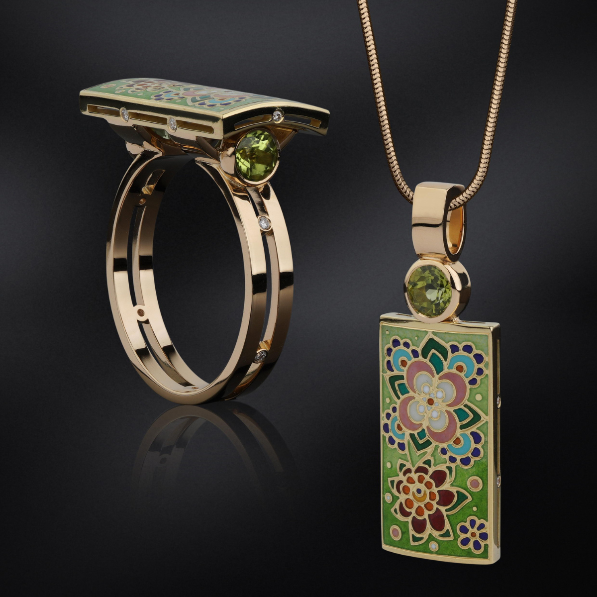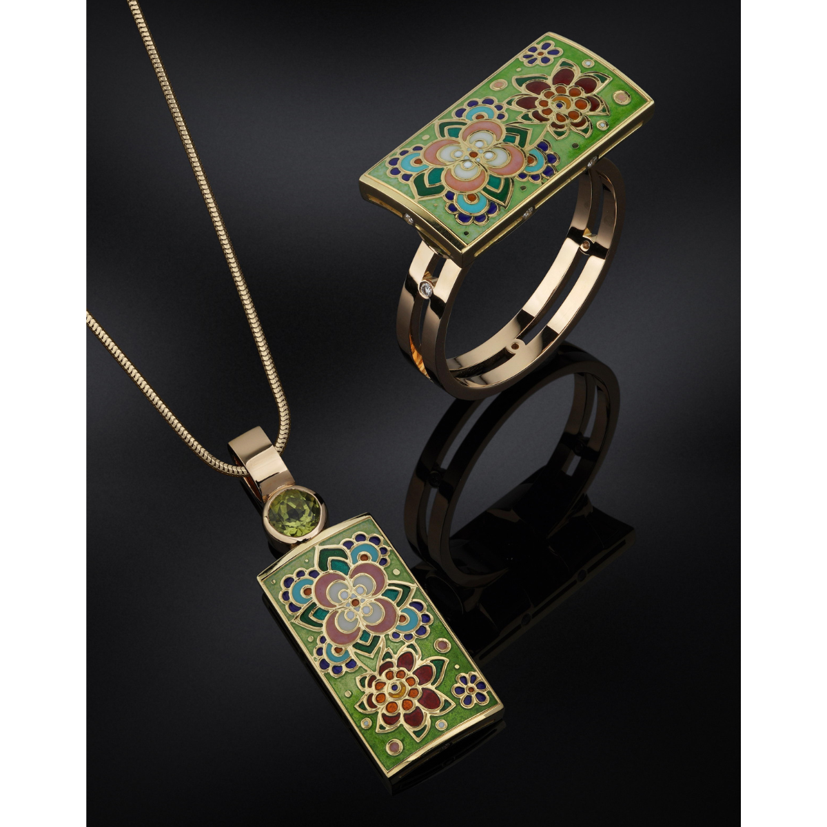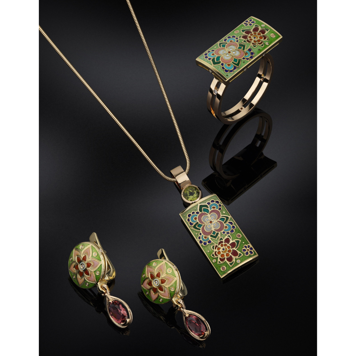 Комплект золотых украшений с бриллиантами "Райский сад" (серьги, кольцо, подвеска) от Lobortas